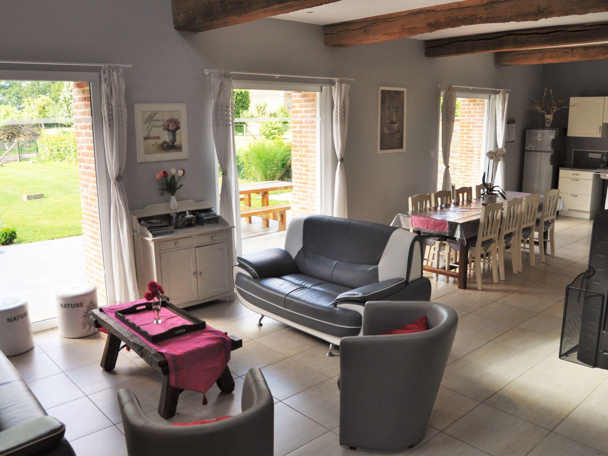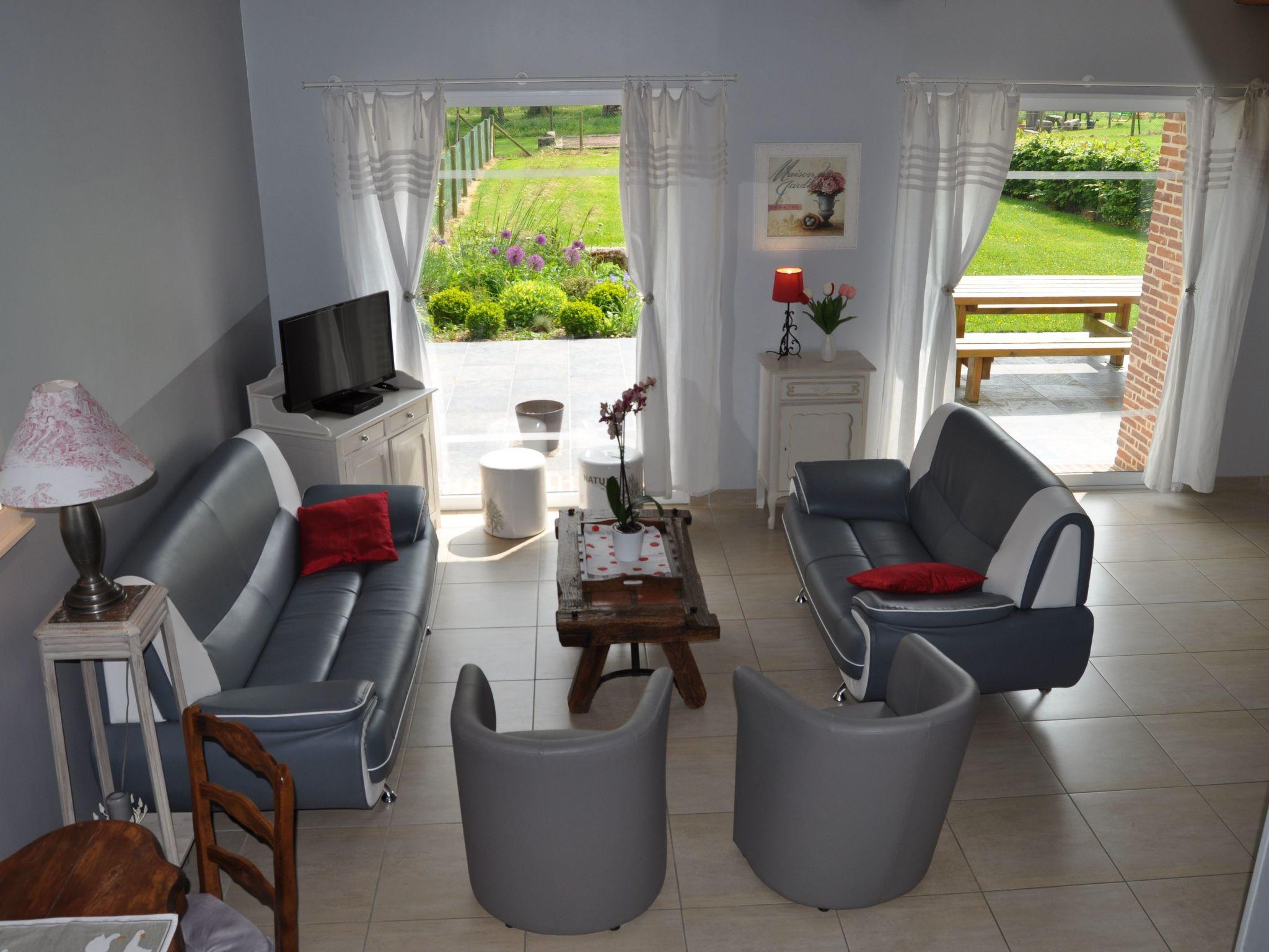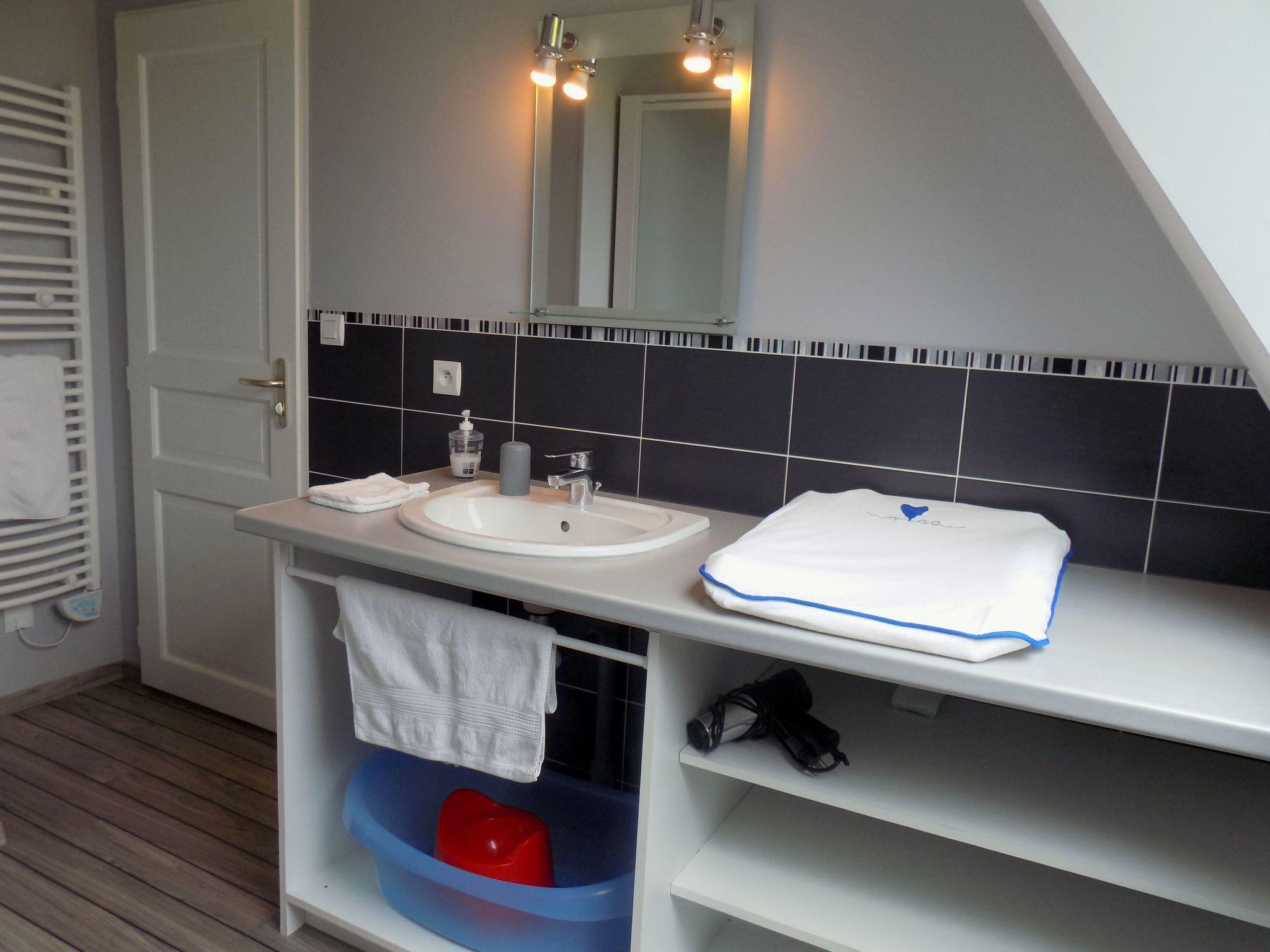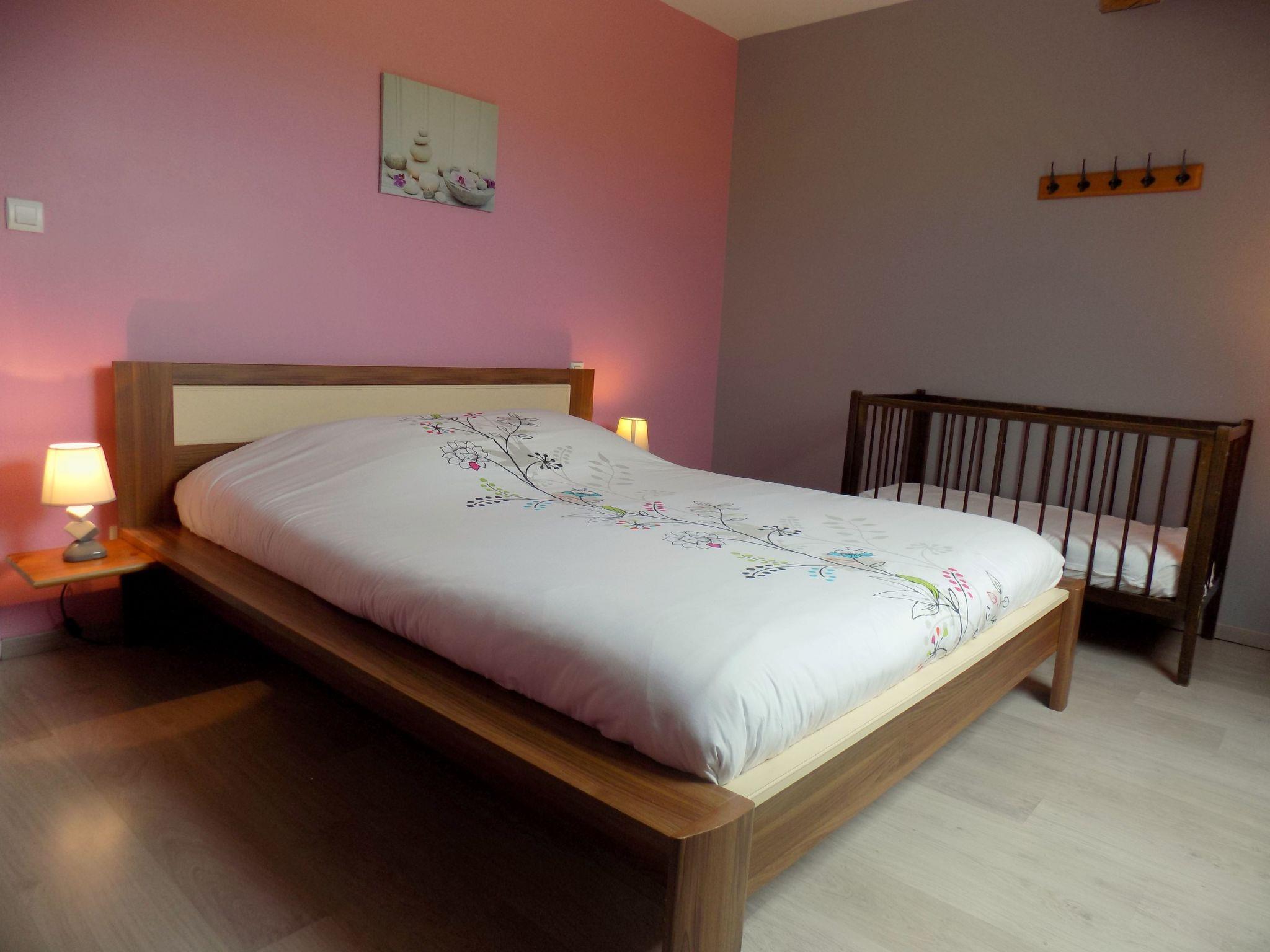 The rooms in this 123 m² holiday home are bright and tastefully furnished. The ground floor features a large living room with a wood-burning stove, a comfortable lounge set with'un canapé et de fauteuils, ainsi qu'a television and a DVD player. The adjoining kitchen and dining area'ouvre sur la salle de séjour. Moderne, celle-ci est entièrement équipée et inclut un lave-vaisselle et un micro-onde. La grande table à manger avec sièges en bois est placée directement devant le coin cuisine. De plus, une des quatre chambres à coucher est aménagée au rez-de-chaussée. Elle est meublée d'has a 160 x 200 cm double bed and is wheelchair accessible. There is also a wheelchair-accessible bathroom with shower and WC, and three further pleasantly furnished bedrooms on the upper floor'un cabinet de toilette séparé. A l'. One of the bedrooms is also on'un lit deux places de 160 x 200 cm et les deux autres chambres de deux lits une place de 90 x 200 cm. A l'. There is a bathroom with shower and washbasin, and'un cabinet de toilette.