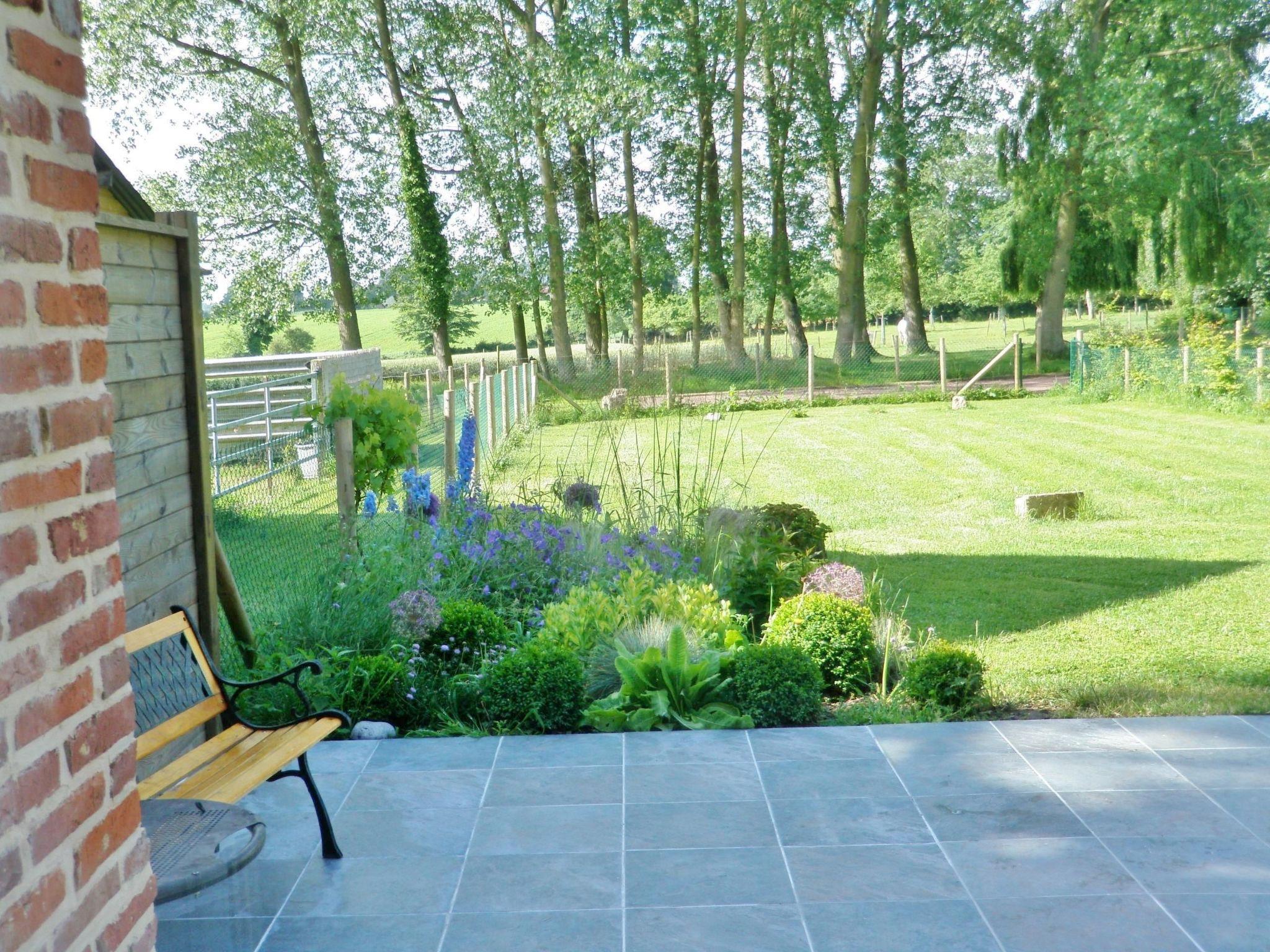 Le gîte a sa terrasse et son jardin privé. Le terrain de pétanque, la table de ping pong et les jeux pour enfants sont partagés avec le gîte du Bois Saleu.