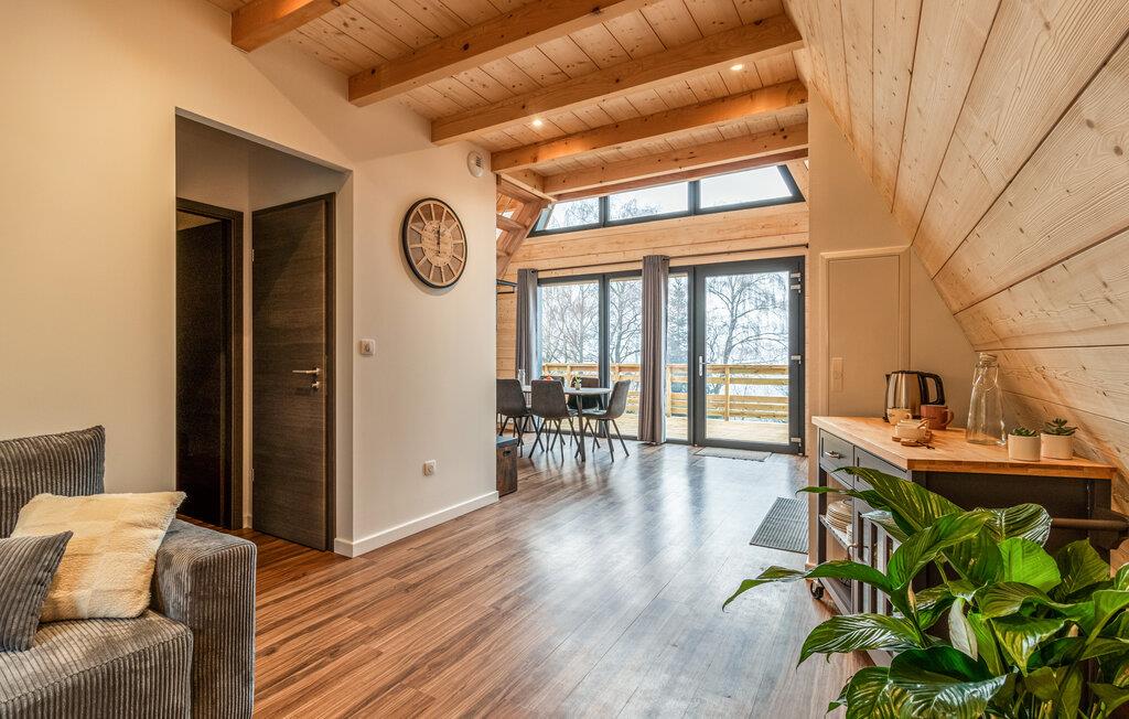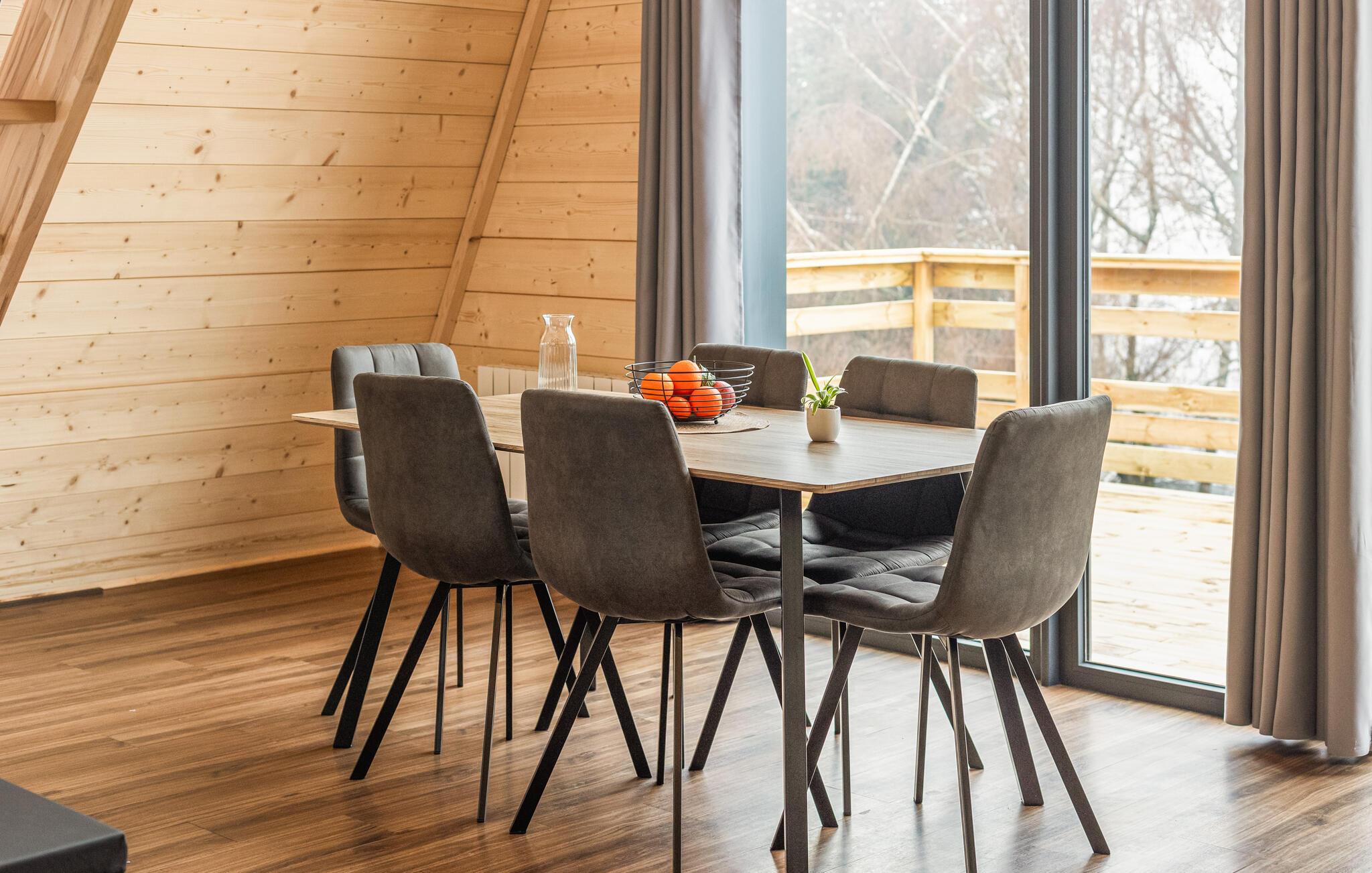 Dette hus byder jer velkommen med en varm, naturlig atmosfære af lyst træ, masser af naturligt lys og en åben, luftig fornemmelse. Nyd den vidtstrakte udsigt, læs i fredfyldte omgivelser eller tilbring hyggelige timer med at spille kort. Det moderne køkken er perfekt til at lave mad sammen og afslutte dagen i en hyggelig hytteatmosfære.