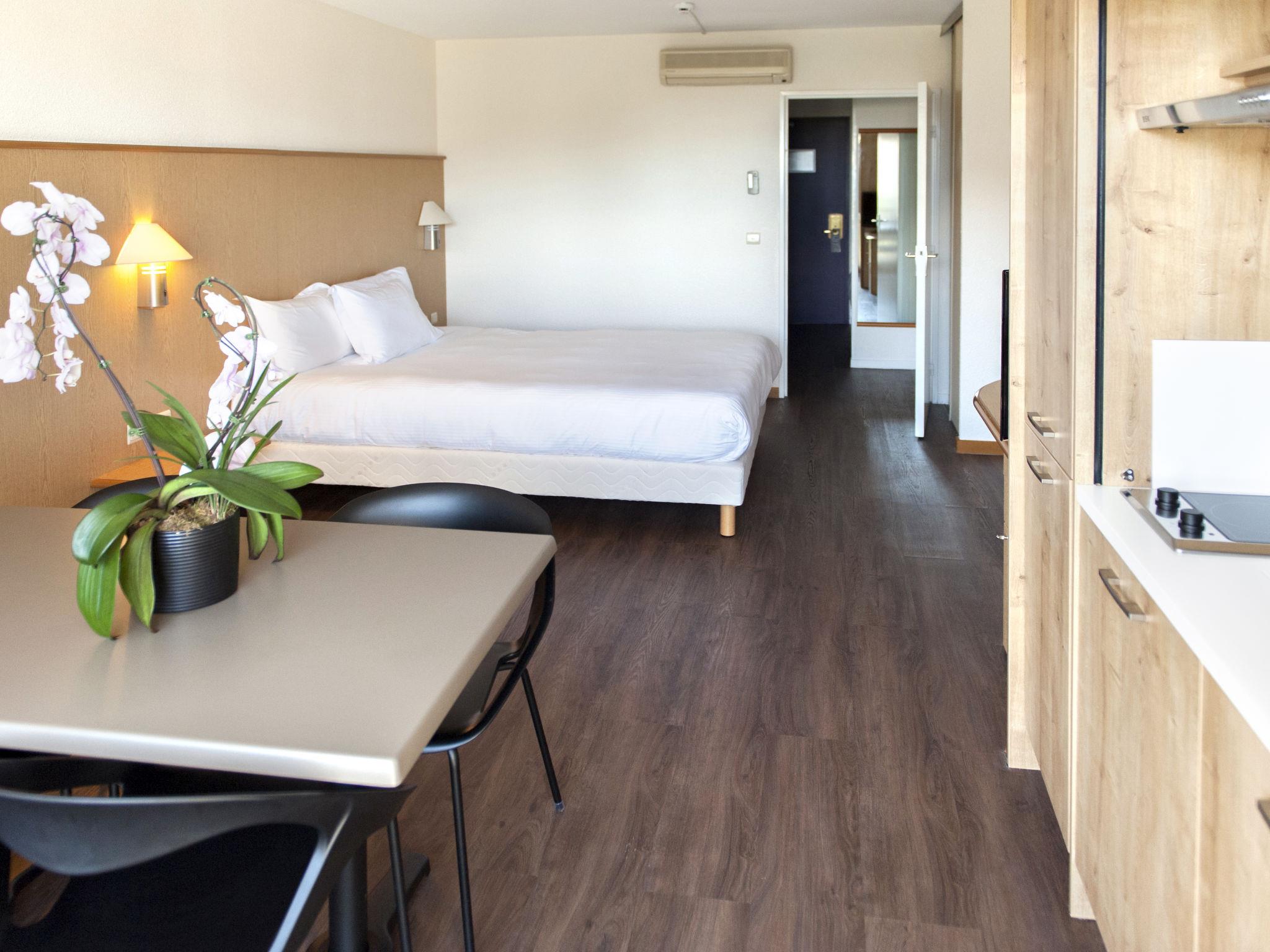 "Résidence Thalazur Antibes", 1-room apartment 28 to 33 m2. Comfortable furnishings: living/sleeping room with 1 french bed (160 cm), dining table and satellite TV. Exit to the balcony. Entrance hall with 1 bed (80 cm). Open kitchen (dishwasher, 2 ceramic glass hob hotplates, microwave, electric coffee machine). Bathroom, sep. WC. Heating, air-conditioning. Balcony. Balcony furniture. Facilities: safe, hair dryer. Internet (WiFi, free). Please note: non-smokers only. Maximum 1 small pet/ dog allowed. Offer by a commercial proprietor according to Art. 155, IV, CGI