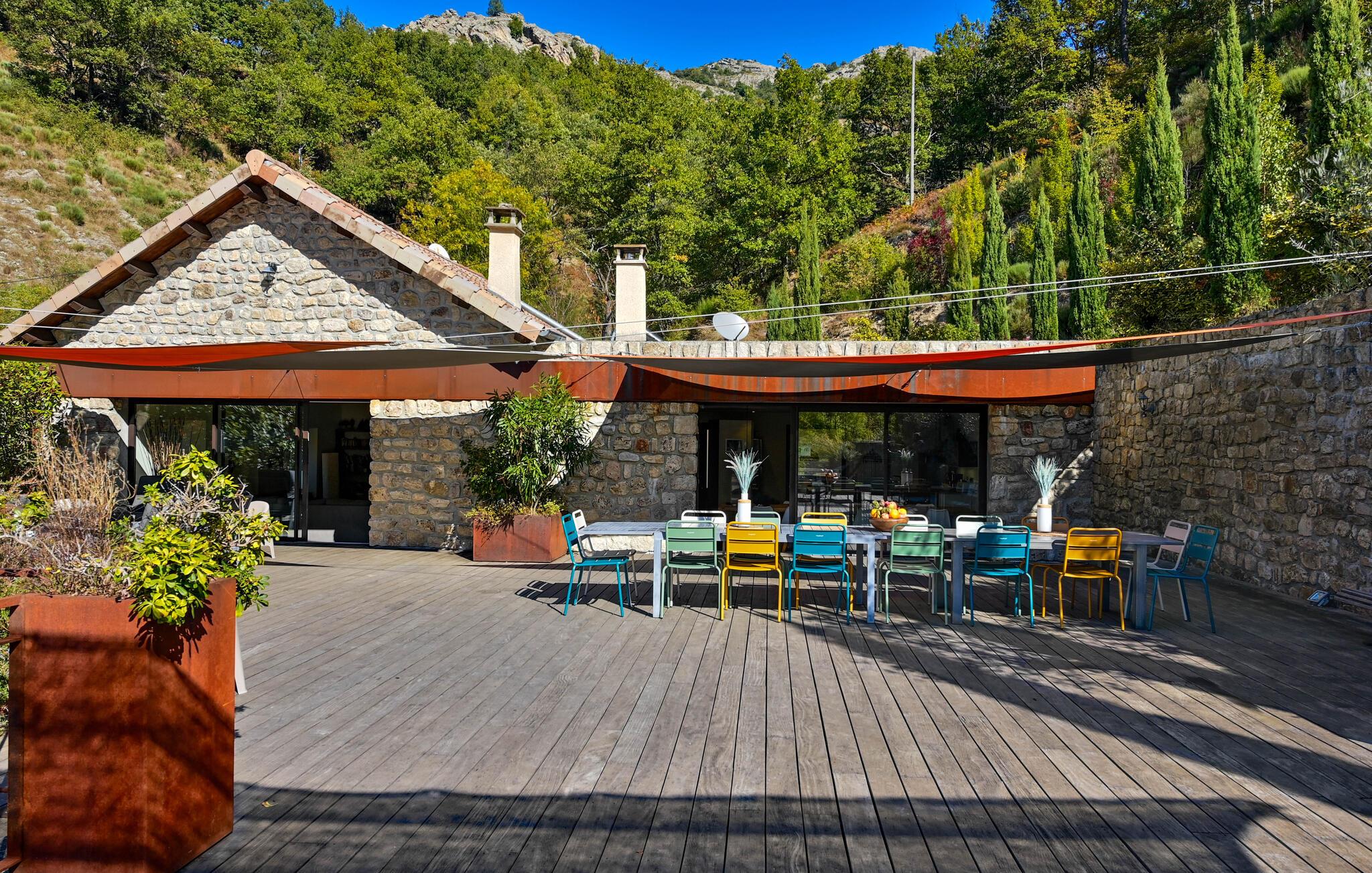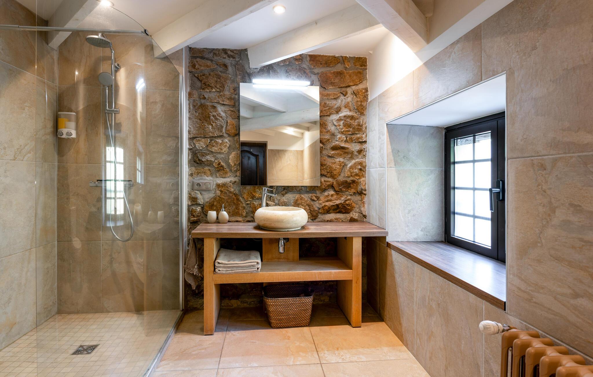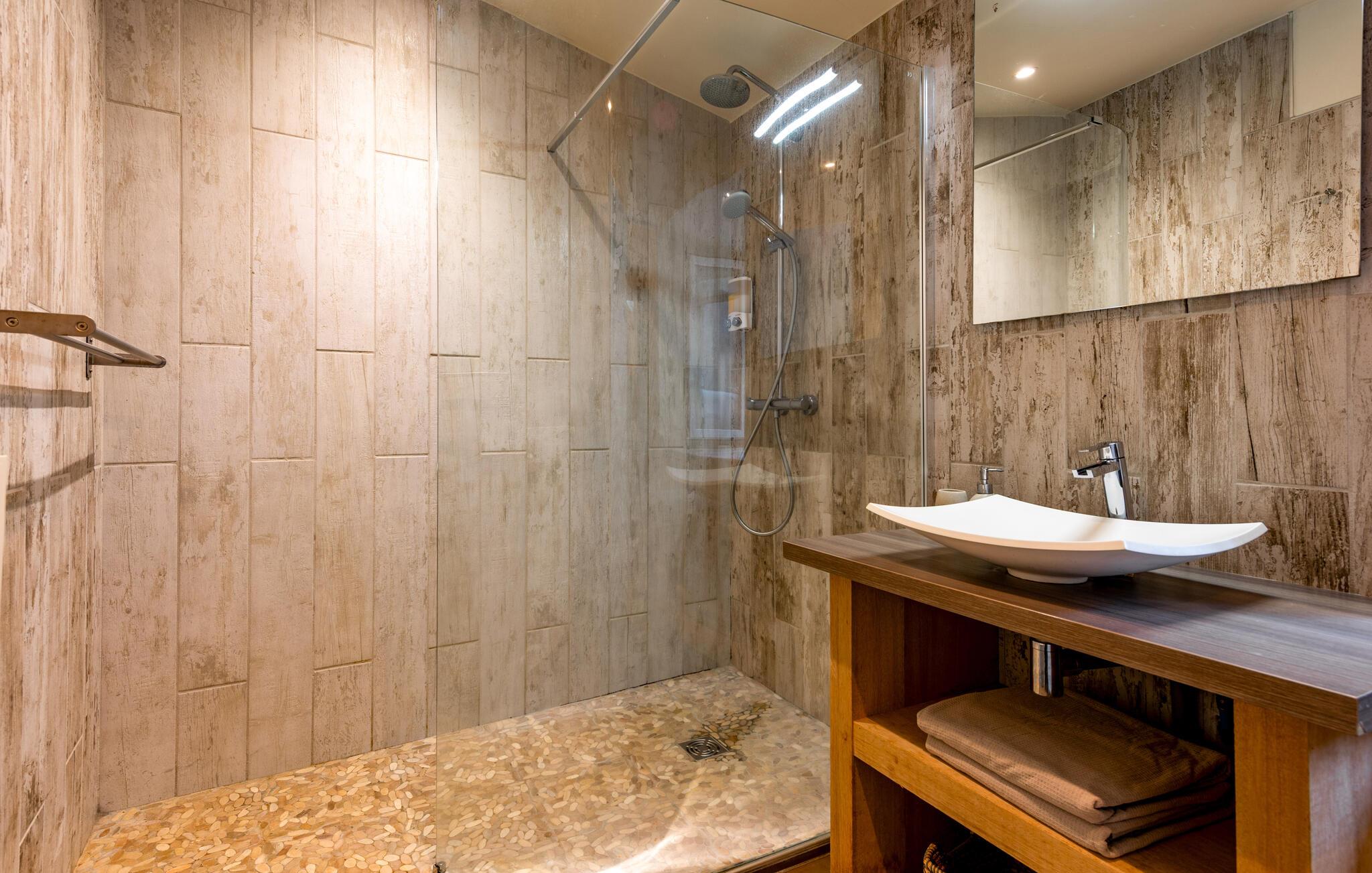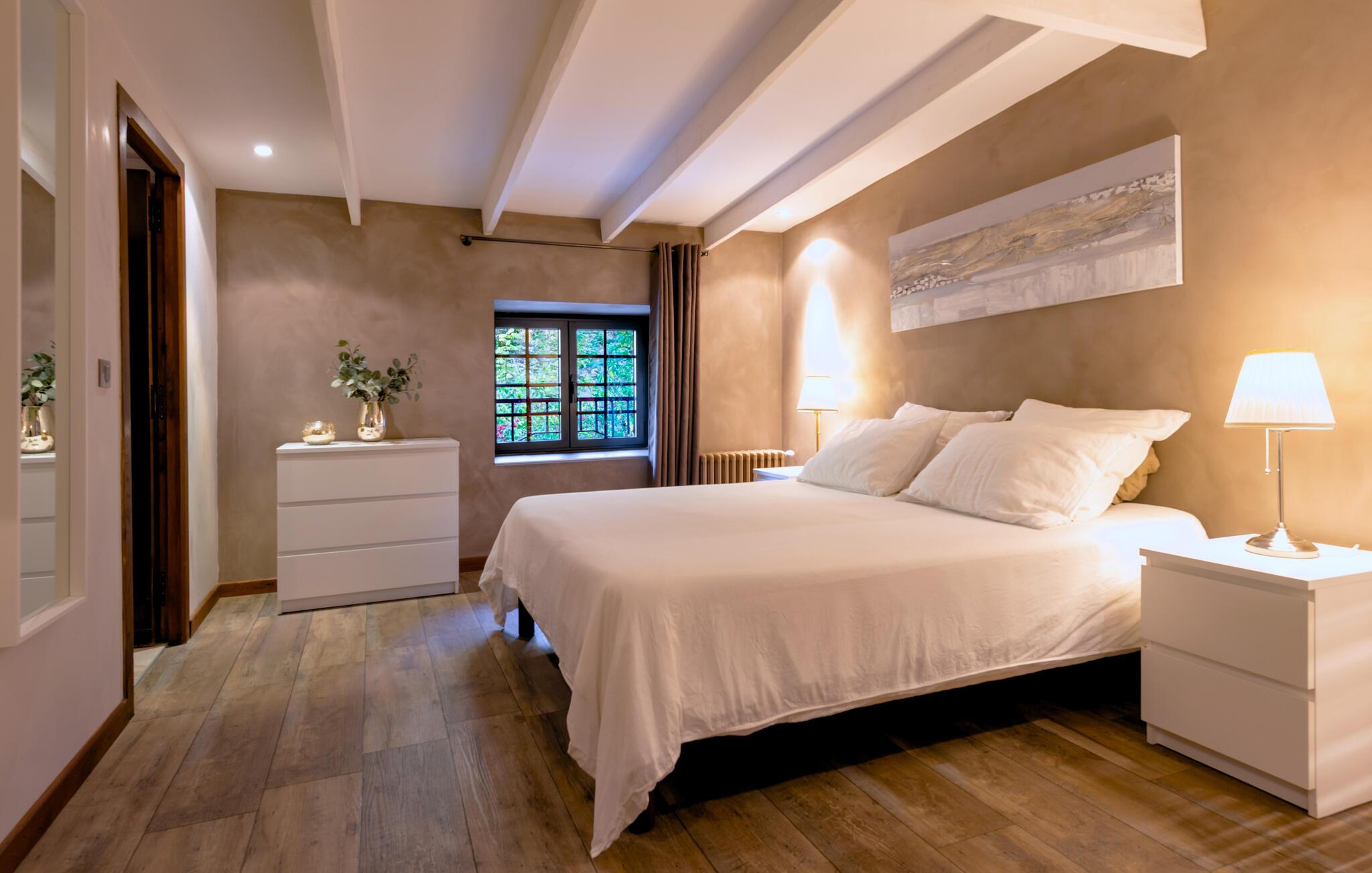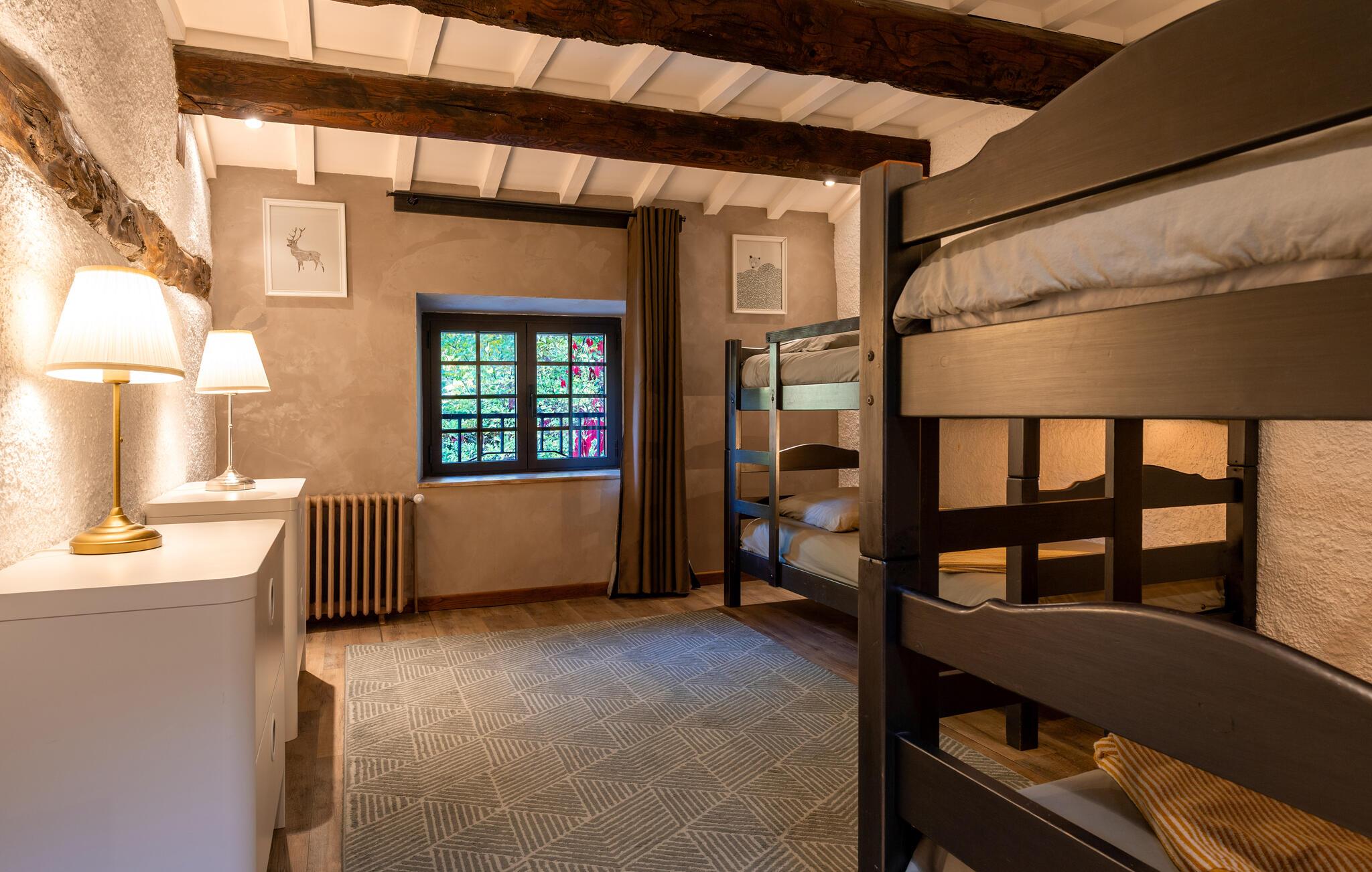 Forkæl jer selv med en afslappende ferie i dette smukke, børnevenlige feriehus med pool og spabad, beliggende midt i naturen. Tilbring idylliske dage i dette autentiske feriehus med moderne præg, som med sine mange ekstrafunktioner tilbyder det ideelle sted til familiesammenkomster eller en ferie med vennerne. Nyd den smagfulde atmosfære af møbler af høj kvalitet under hyggelige måltider, hold sjove spilleaftener ved det behageligt oplyste spisebord, eller saml jer til hyggelige filmaftener. Jeres sydvendte terrasse inviterer jer til at nyde morgenmad, grillfester og samtaler med venner og familie. Lad den fredelige atmosfære omslutte jer med afslappende bad i spabadet, forfrisk jer i poolen og slap af med en drink i strandbaren eller i hængekøjen, mens børnene leger på legepladsen. Gå en tur gennem de charmerende gader i bjerglandsbyen Antraigues med dens mange hoveder udskåret af lavasten, beundr udsigten over Volane- og Mas-dalene, og vandr gennem kastanjeskovene og vulkanbjergene omkring Genstelle. Besøg Château de Craux og slap af i den berømte termiske spa i Vals-les-Bains.