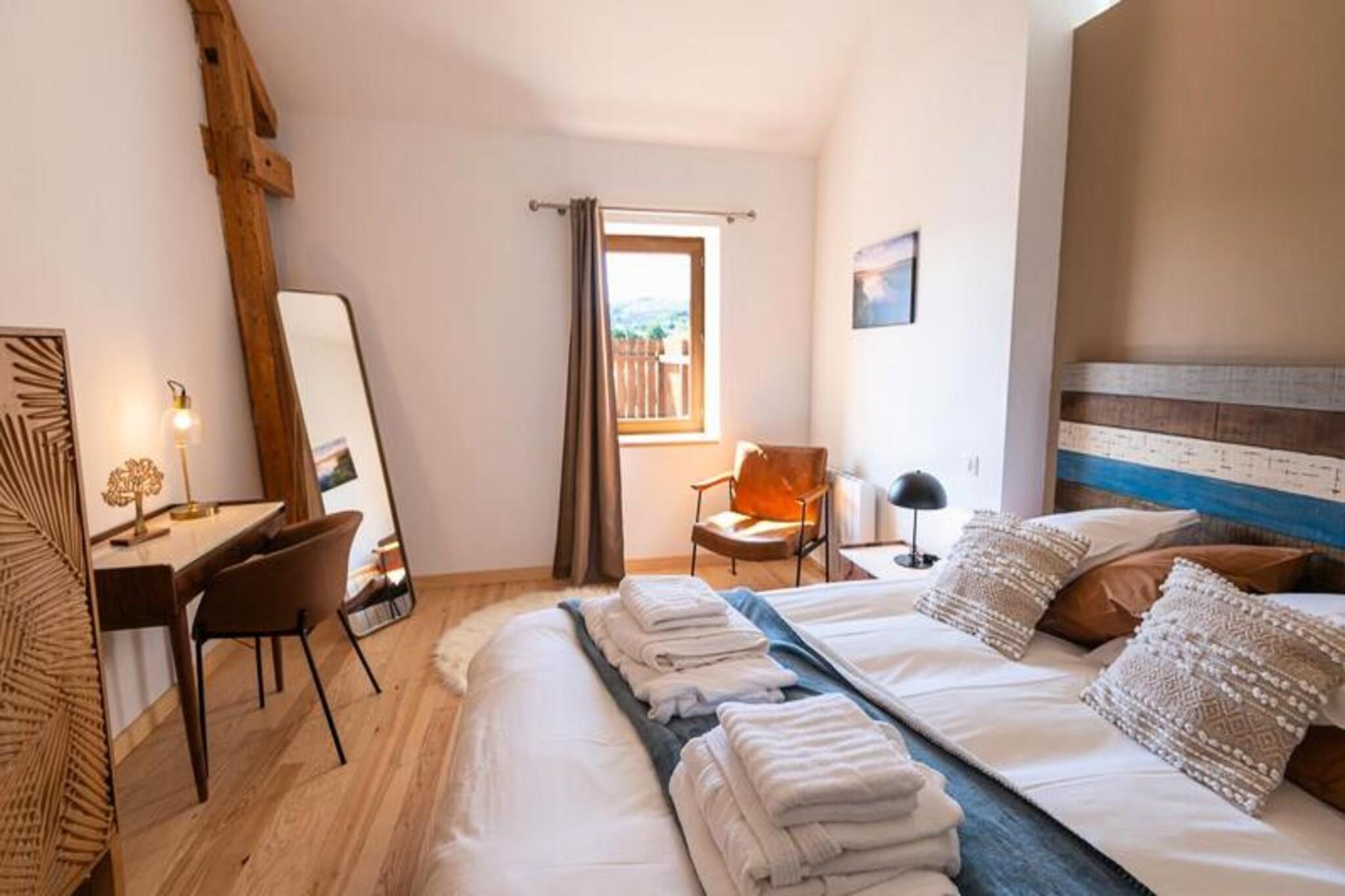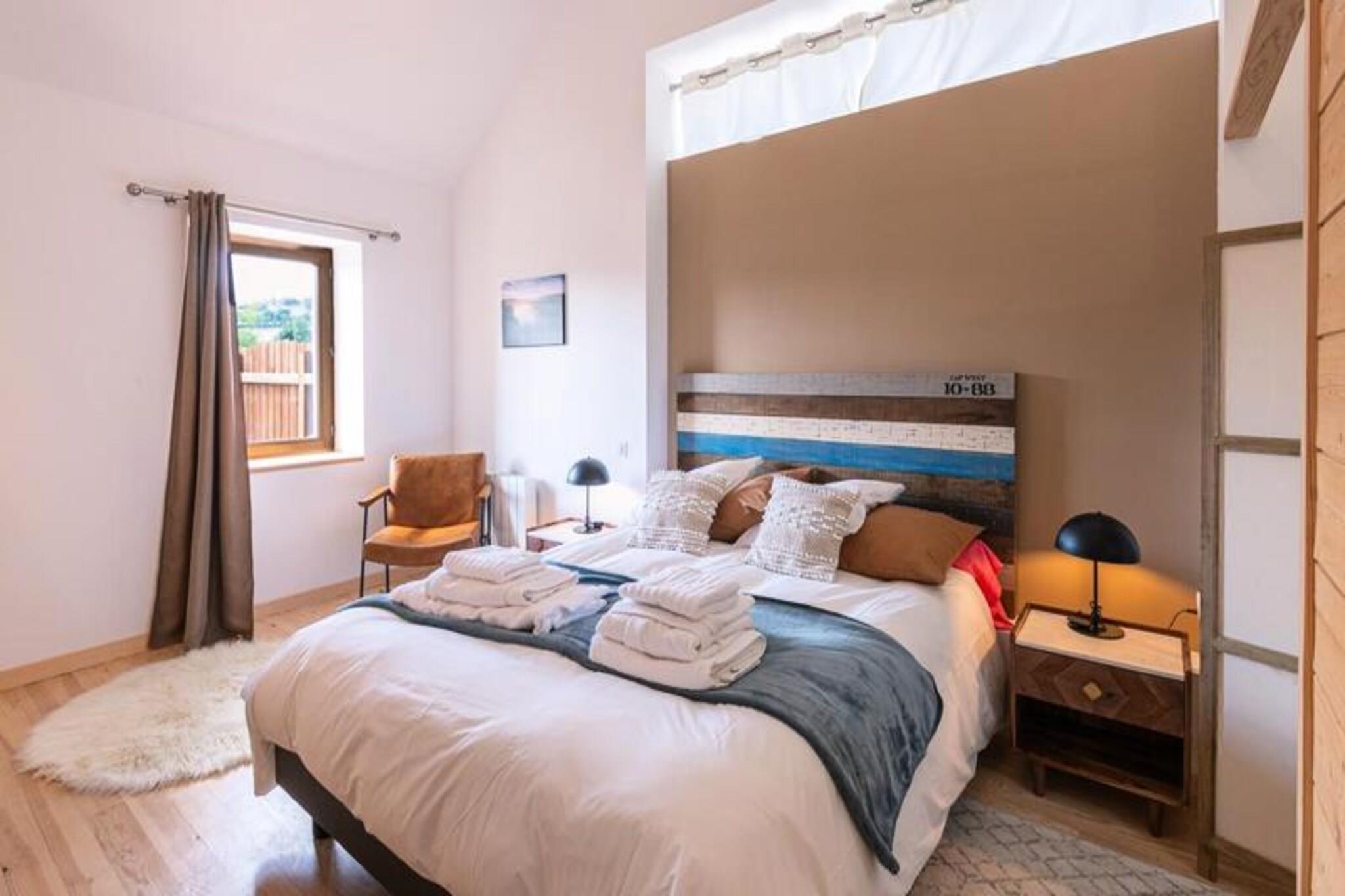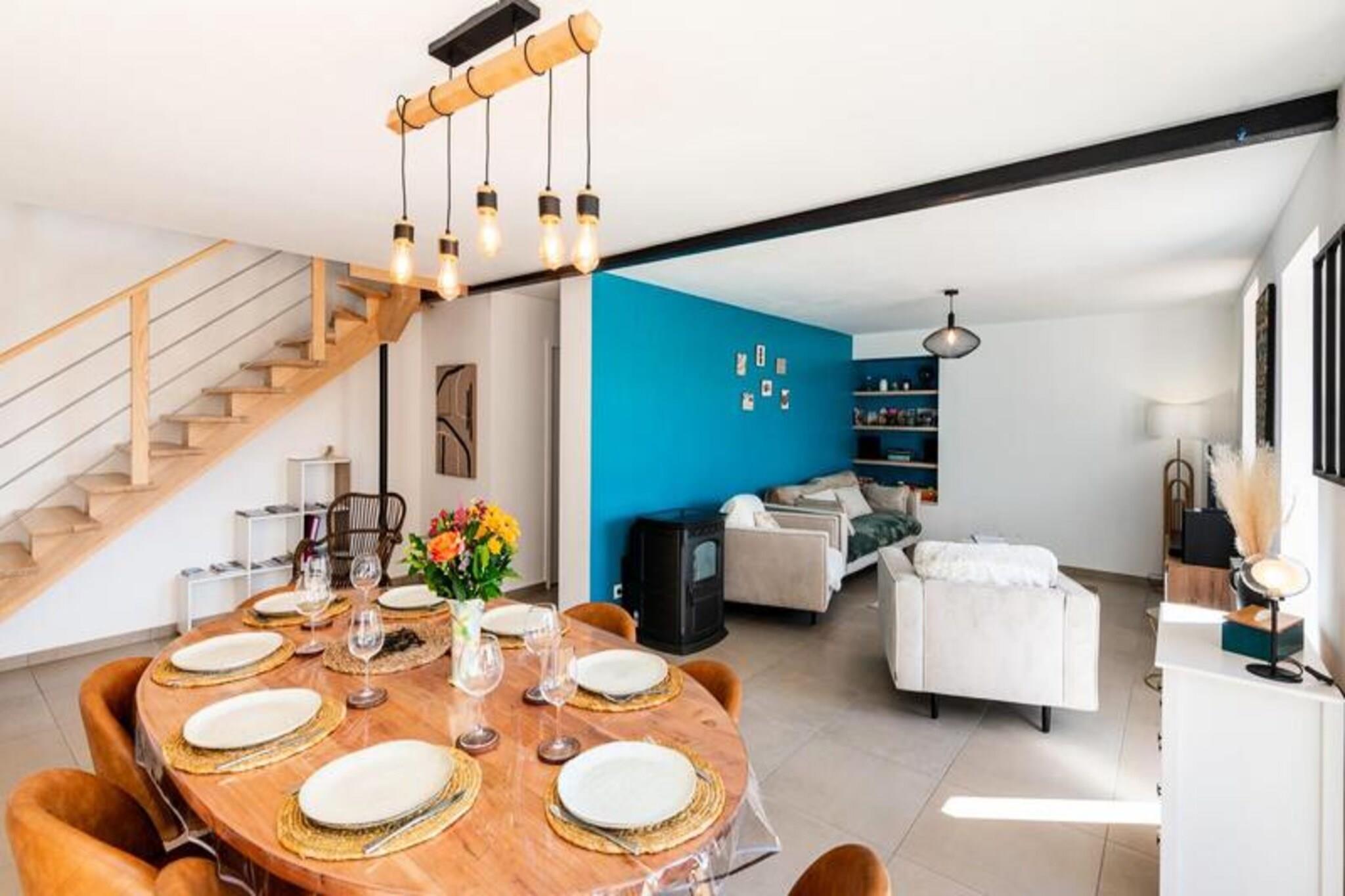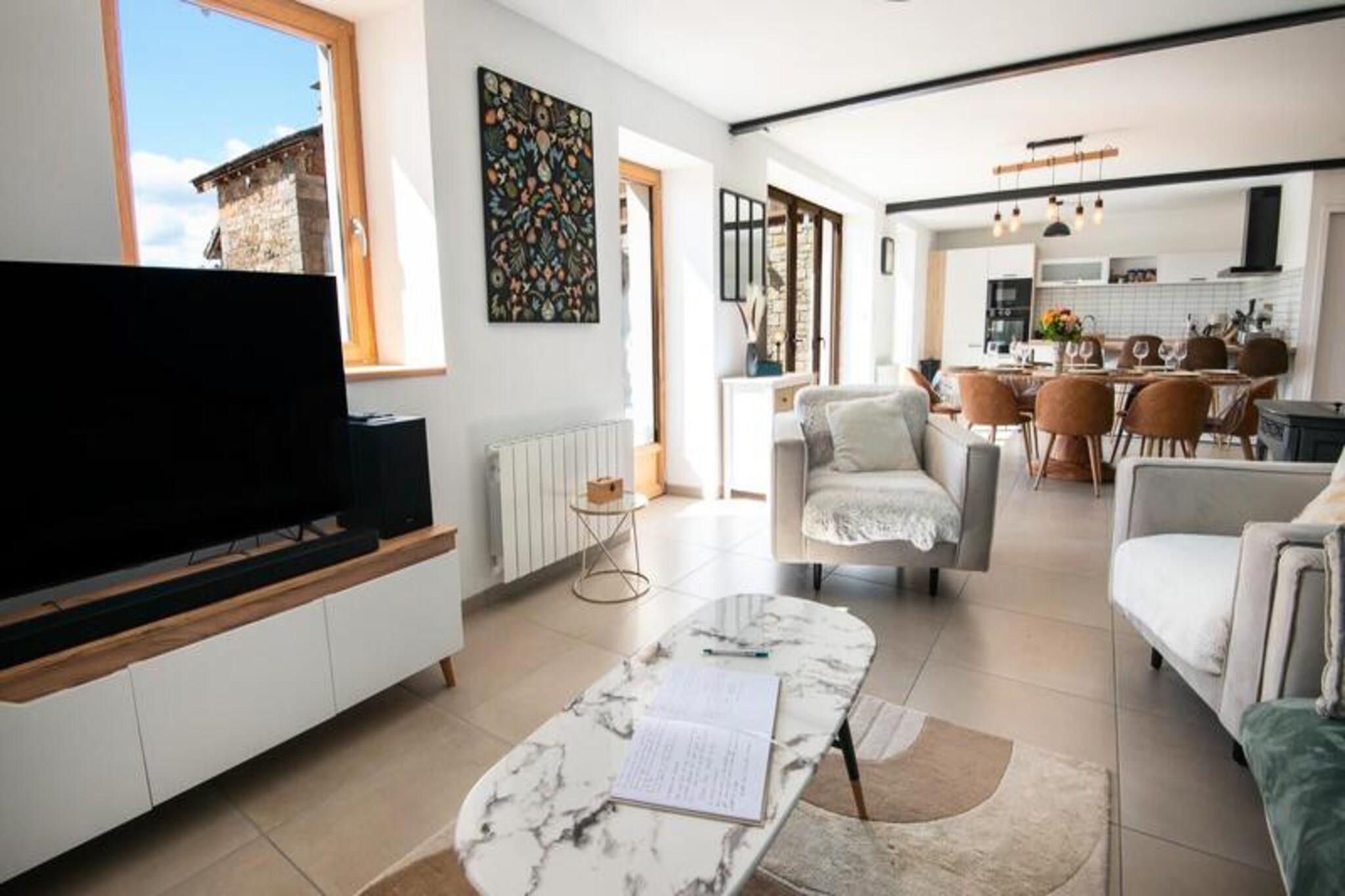 Dette luksuri?se feriehus tilbyder et fredeligt tilflugtssted med tre rummelige sovev?relser, hver udstyret med en komfortabel 160 cm seng og en-suite badev?relse. Ejendommen er k?ledyrsvenlig med et till?gsgebyr for k?ledyr, hvilket g?r det perfekt til dem, der rejser med deres lodne ledsagere. Hjemmet har en hyggelig opholdsstue med et pillefyr til varme, og gratis tr?dl?s internetadgang er tilg?ngelig overalt p? ejendommen for din bekvemmelighed. Placeringen er ideel for udend?rsentusiaster, med smukke skove, floder og s?er, der venter p? at blive udforsket. G?sterne kan bes?ge n?rliggende attraktioner s?som Gevaudan Wolf Park, Bison of Margeride og Moulinet-s?en. Uanset om det er til fods eller ved at bruge tilg?ngelige VTC'er, er der masser af muligheder for at nyde det betagende landskab. De fredelige omgivelser tilbyder de perfekte rammer for stjernekiggeri eller blot afslapning. Feriehuset har et fuldt udstyret amerikansk k?kken, ideelt til at tilberede l?kre m?ltider. Den store opholdsstue er perfekt til at slappe af efter en dag med eventyr, og ejendommen har en privat terrasse med havem?bler og en grill. Yderligere faciliteter inkluderer en jacuzzi for ultimativ afslapning og forskellige udend?rs rum som en petanquebane og et badmintonomr?de, hvilket sikrer et behageligt og behageligt ophold.