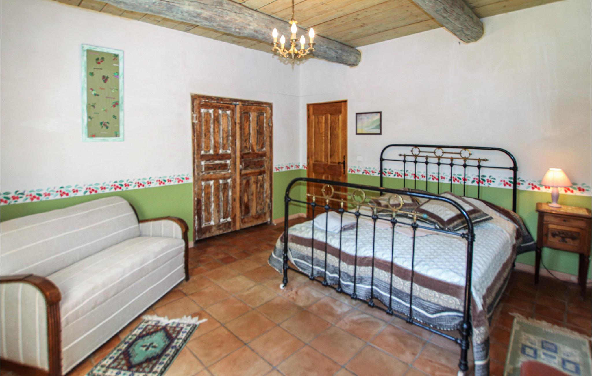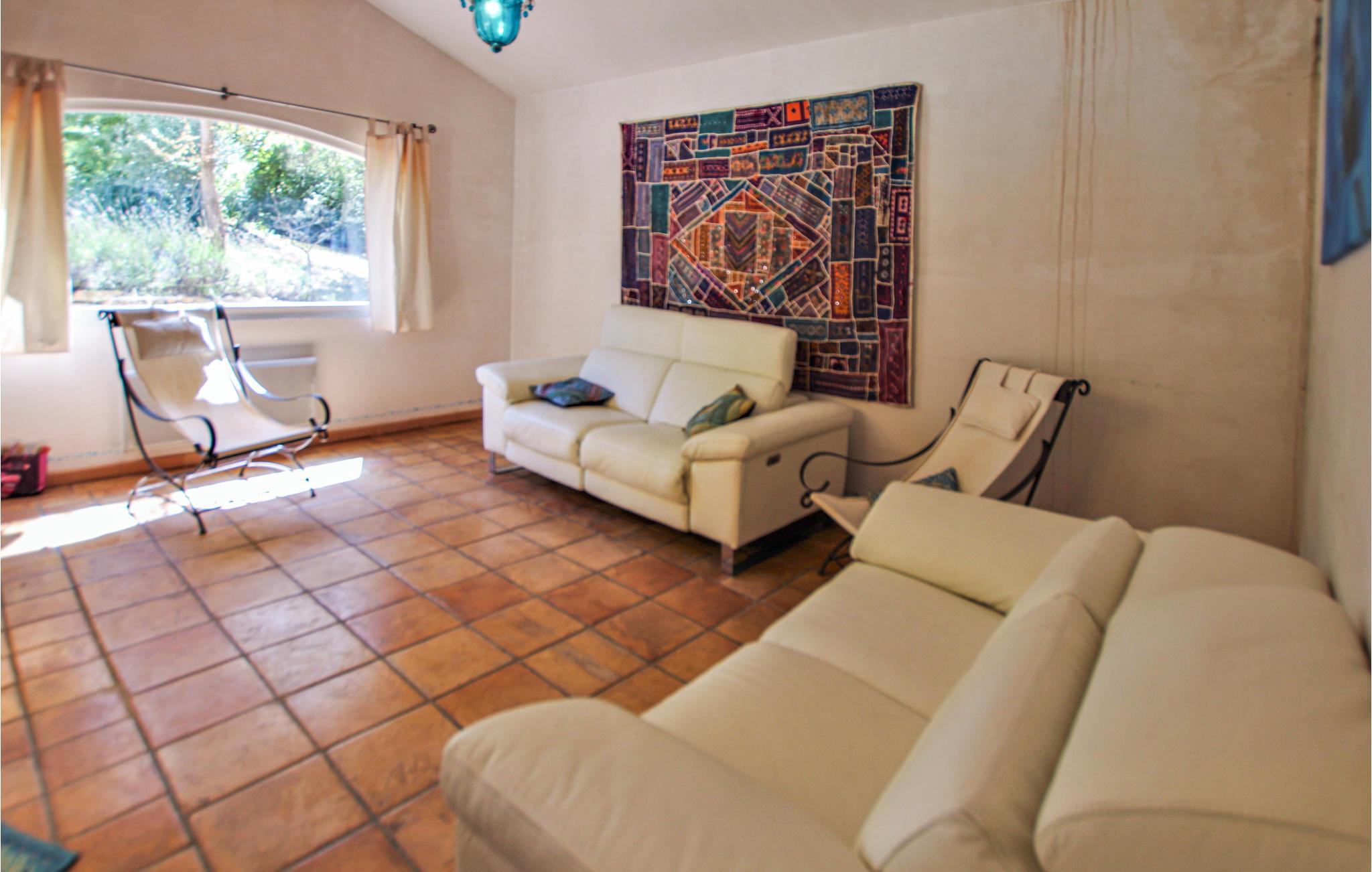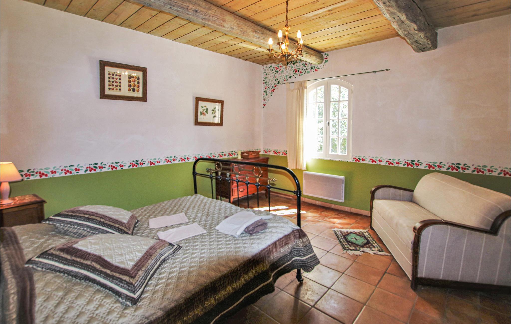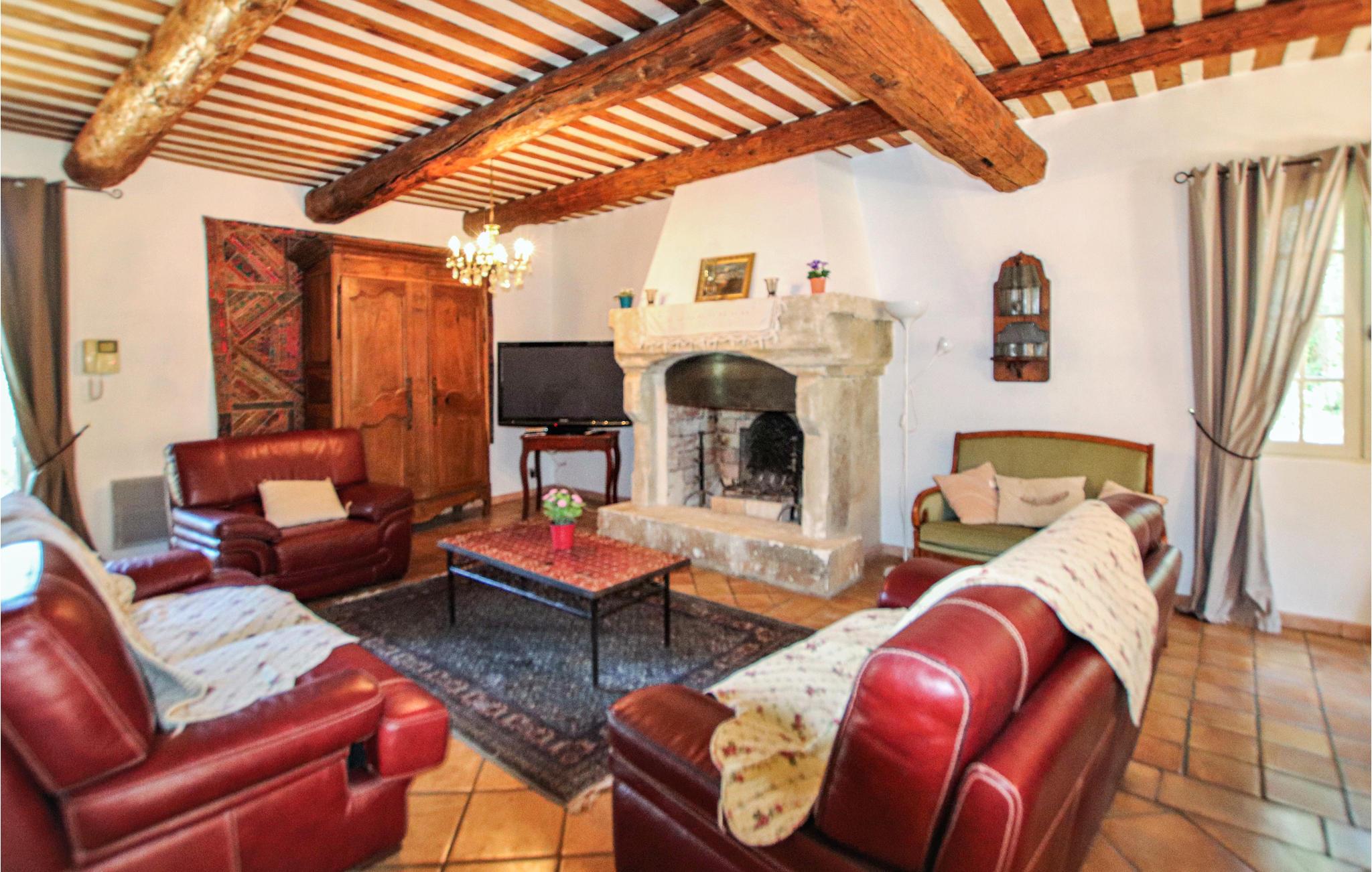 Huset strækker sig over to etager og tilbyder plads til en familie med sine fire indbydende og rummelige soveværelser. Det autentiske interiør i en rustik, provencalsk stil lavet af fine materialer er velholdt, og den enorme stue med integreret køkken åbner ud til haven.