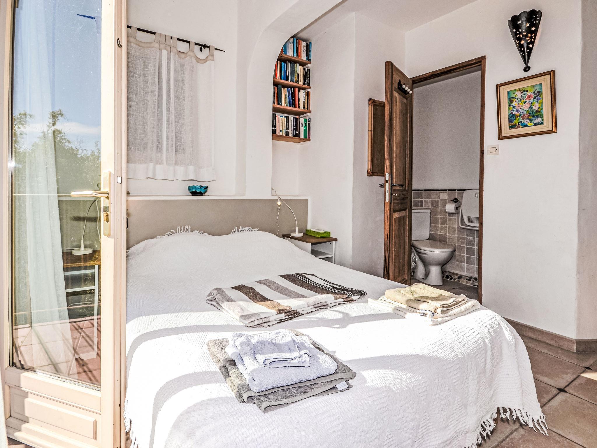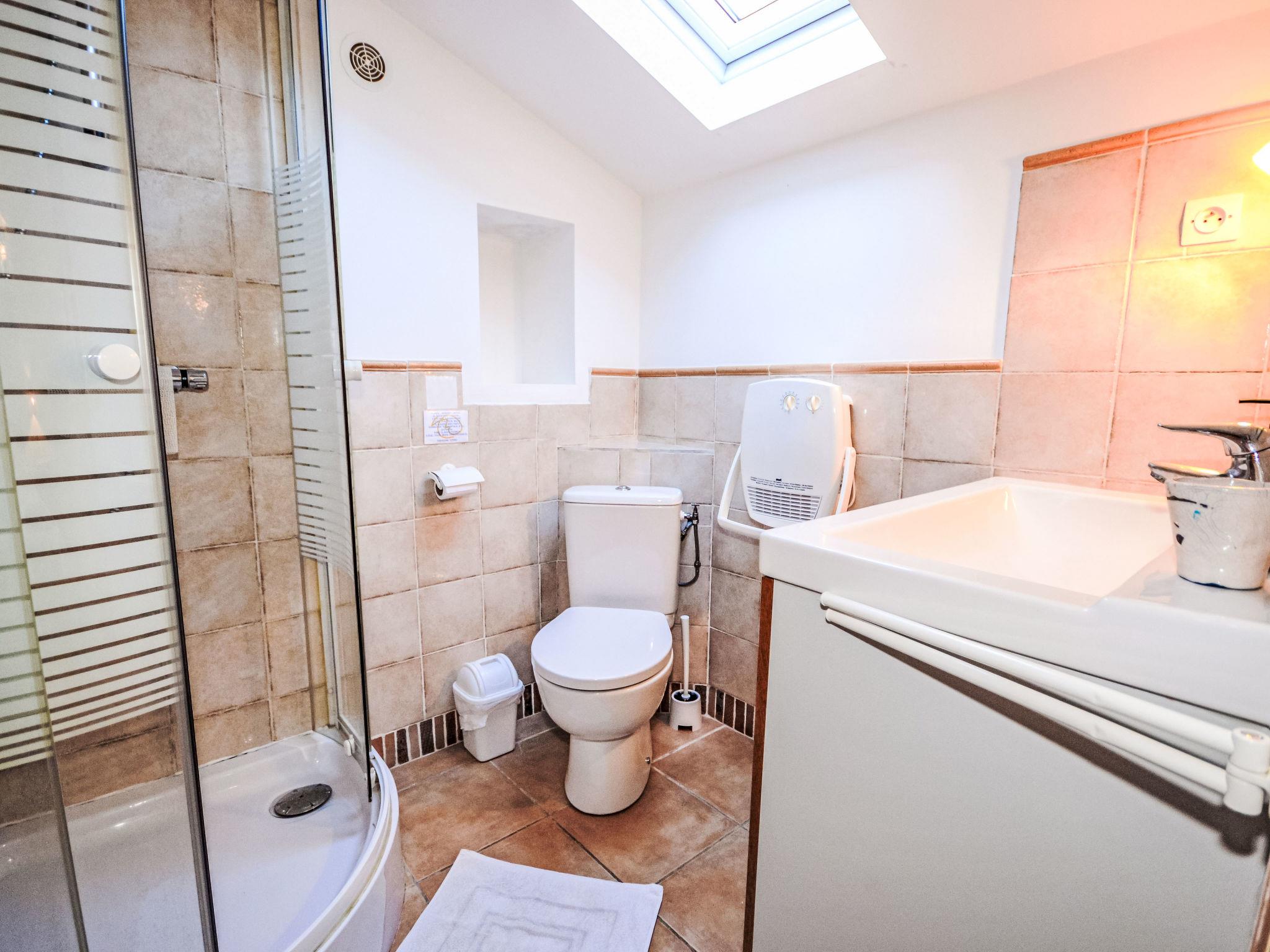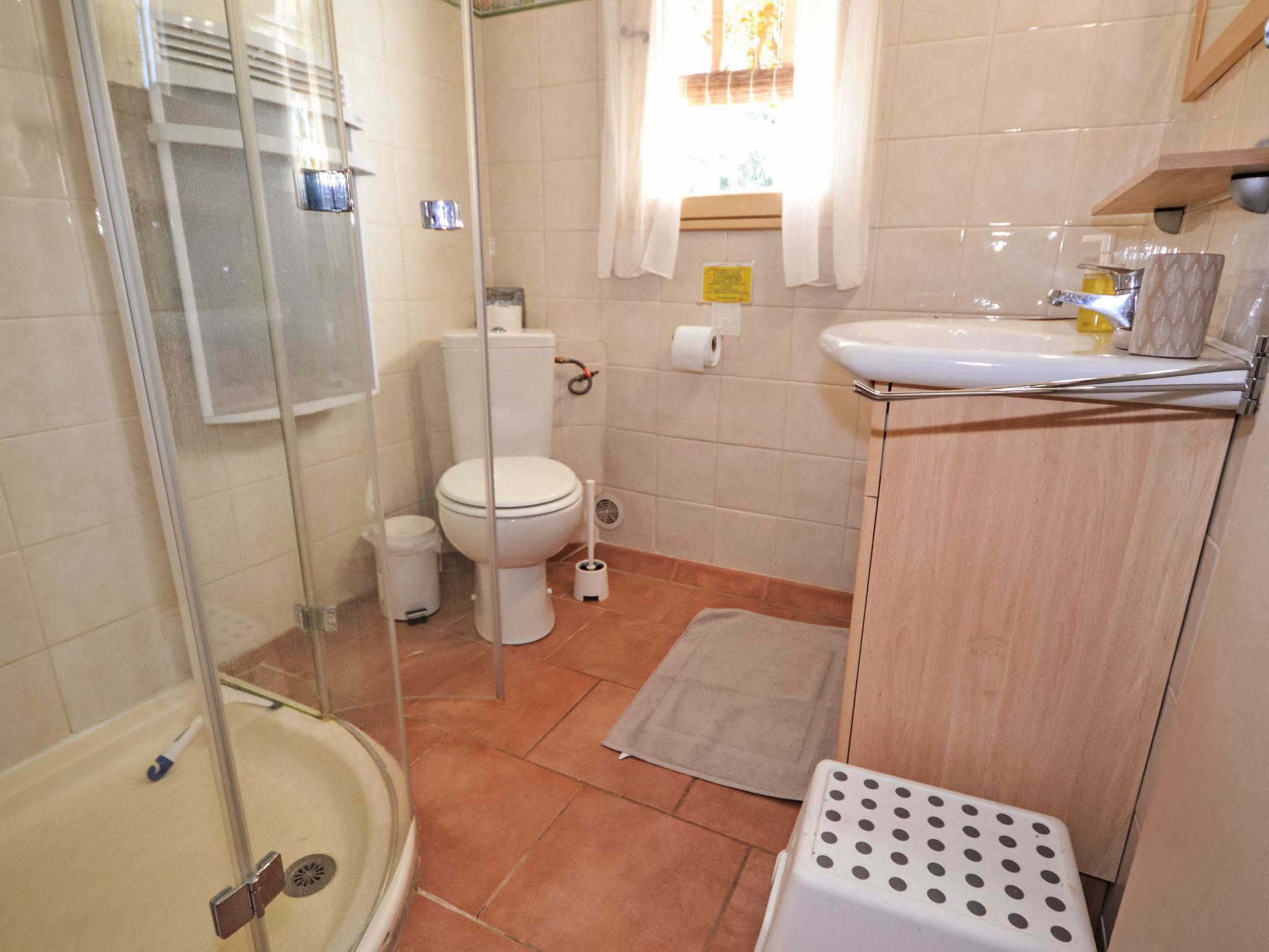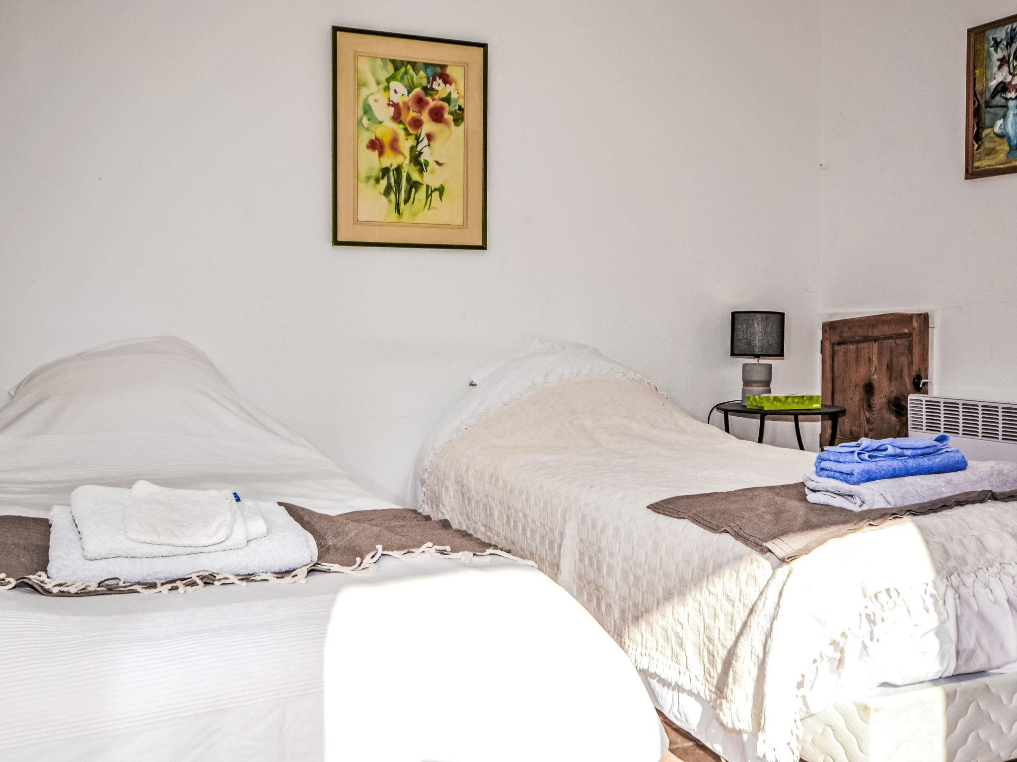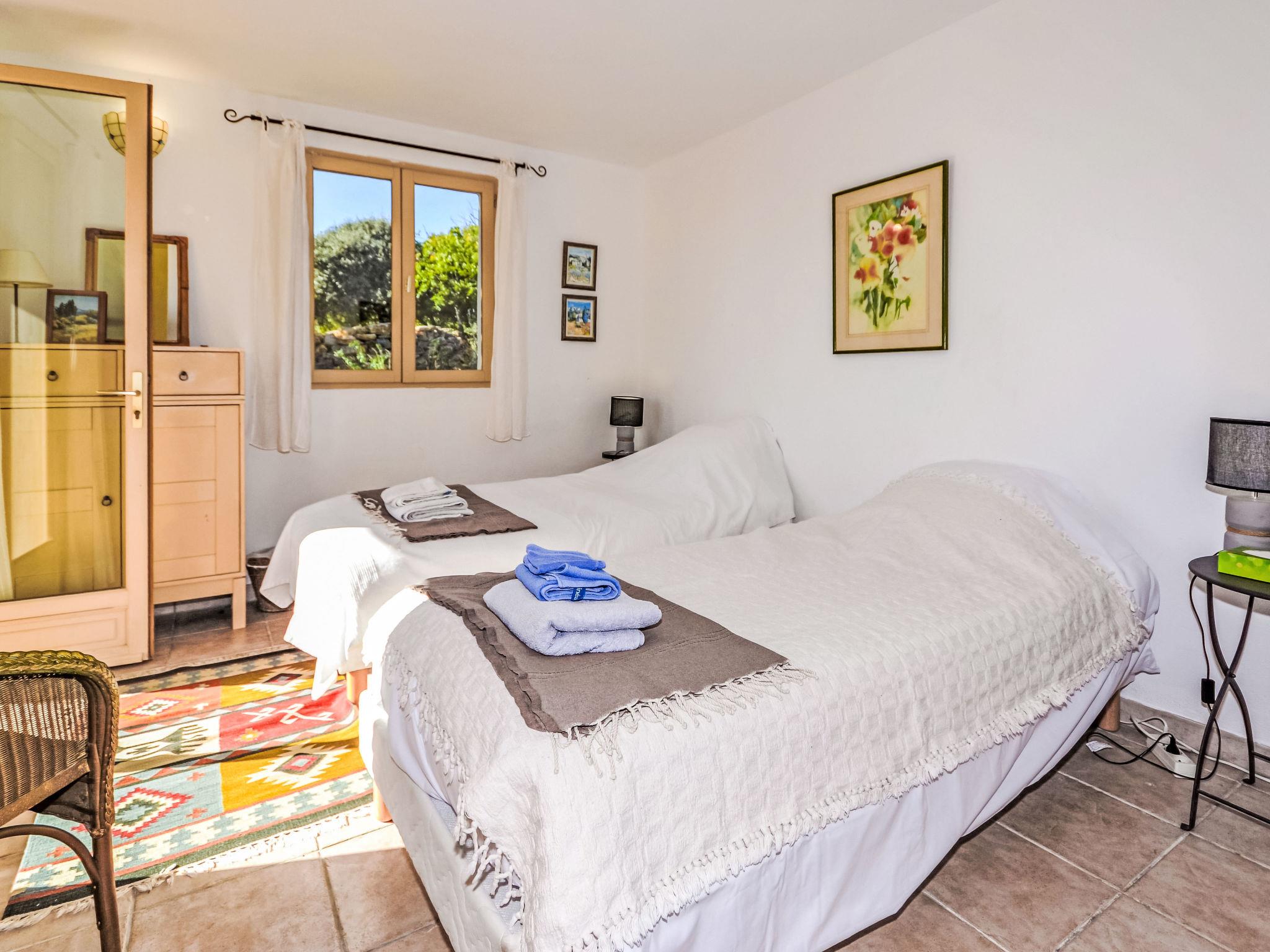 6-room house 160 m2 on 2 levels, south-east facing position. Beautiful furnishings: entrance hall. Living/dining room 28 m2 with open-hearth fireplace, TV, video and hi-fi system. Exit to the terrace. Living room with 1 double sofabed. 1 room with 2 beds (90 cm, length 190 cm). Exit to the garden. 1 room with 1 double bed (140 cm, length 190 cm), shower/WC. Exit to the garden. Kitchen (4 hot plates, oven, dishwasher, microwave, grill). Shower/WC. Upper floor: 1 room with 1 double bed (1 x 140 cm, length 190 cm), shower/WC. 1 room with 1 french bed (1 x 160 cm, length 200 cm), bath/WC. Exit to the balcony. Small balcony 3 m2, east facing position, terrace 35 m2. Terrace furniture, electric barbecue, deck chairs. Panoramic view of. Facilities: washing machine. Internet (WiFi, free). Please note: suitable for families. Smoke alarm. The pool mentioned in the description is for private use.