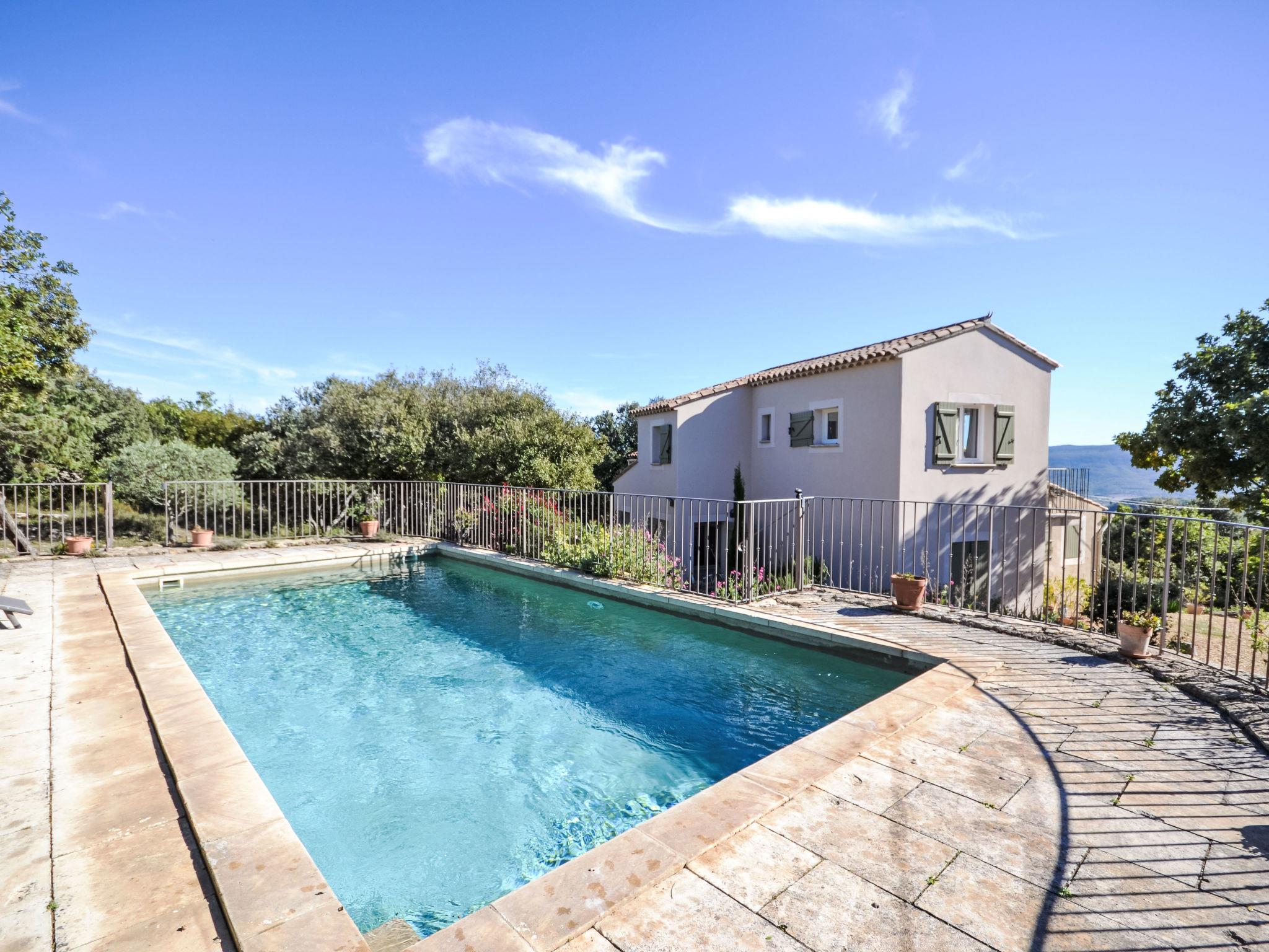 Viens 18 km from Apt: Single-family house "Les Cairnes". Outside the resort, in a secluded position. Private: property 2'500 m2 (fenced), swimming pool fenced (8 x 4 m, depth 150 cm, seasonal availability: 01.May. - 30.Sep.). Steep motor access (via unmade road). Parking on the premises. Shop 12 km, grocery 300 m, supermarket 11 km, restaurant 400 m, bus stop "Centre" 600 m. Please note: car recommended. The owner does not accept any youth groups.