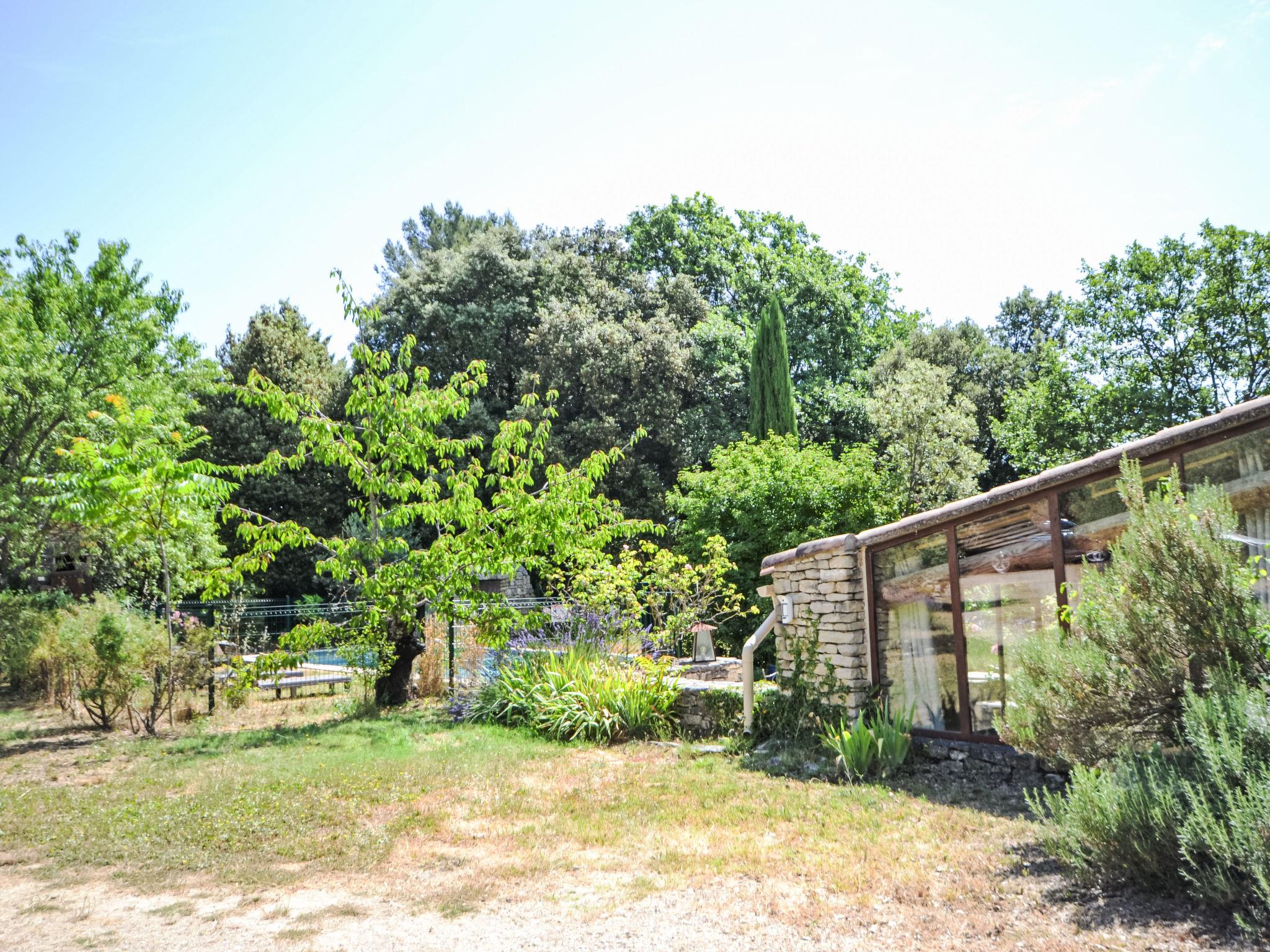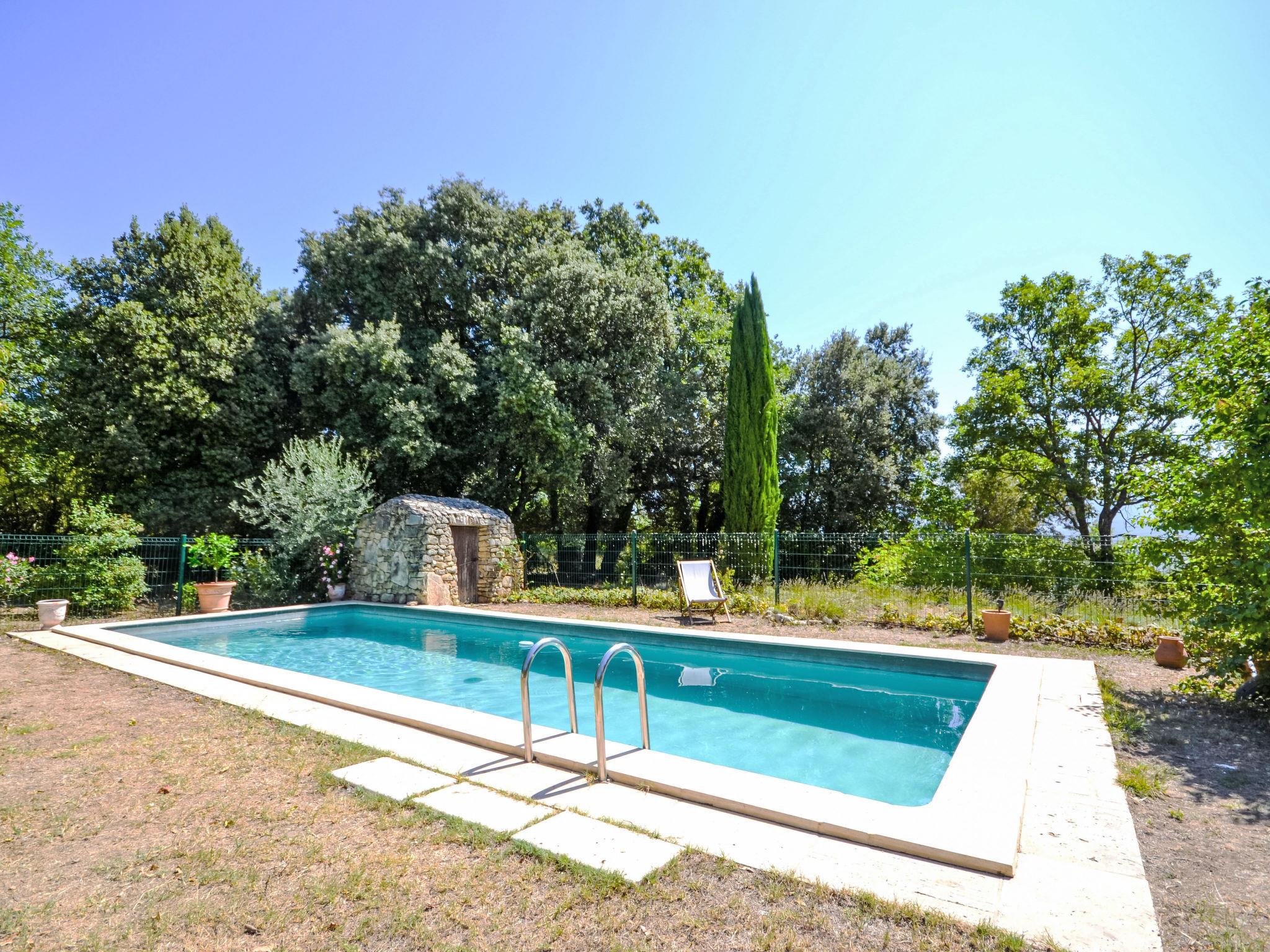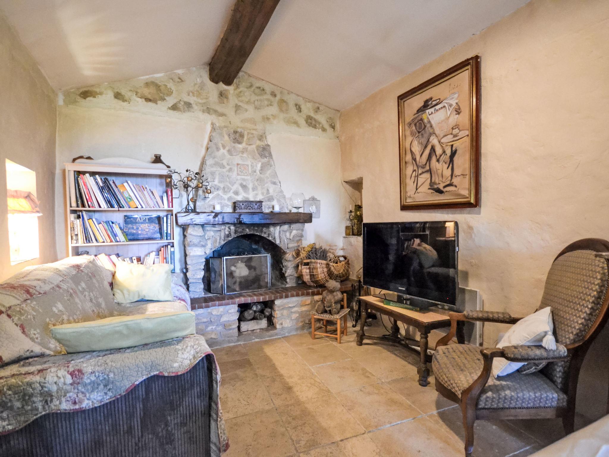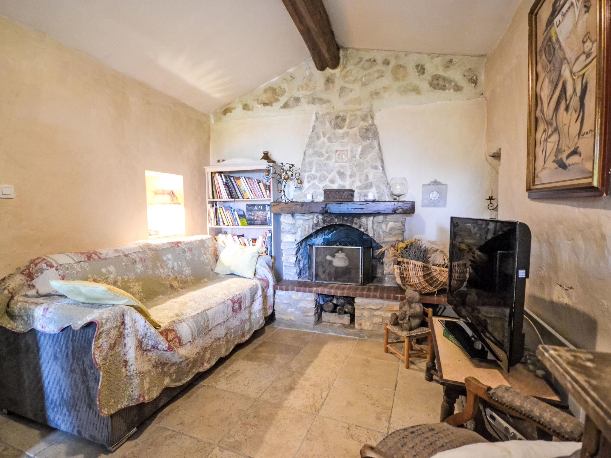 The covered terrace has a sink, a small fridge and an electrical grill. Mas "Le Bois d'Amour", built in 1900, renovated, surrounded by trees. Outside the resort, 2.5 km from the centre of d'Apt, in a quiet position, 100 m from the edge of the forest, north-east facing position. Private: property 2'500 m2 (fenced) with flowers and trees, swimming pool fenced (10 x 4 m, depth 150 cm, seasonal availability: 01.May. - 15.Oct.) with alarm system. Outdoor shower, terrace, garden furniture. Motor access to the house (50 m via unmade road). Parking on the premises. E-charging station. Shop 4 km, grocery 4 km, restaurant 4 km, bakery 4.8 km, bicycle rental 4.3 km, bus stop "Gare Routière" 5 km, lake Plan d'eau d'Apt 6.4 km. Golf course (9 hole) 5.2 km, children's playground 5 km. Nearby attractions: Colorado de Rustrel 10 km, Les Ocres de Roussillon 11 km, Village classé de Gordes 10 km, Simiane La Rotonde 24 km, Avignon 54 km. Hiking paths: Parc Régional des Alpilles 30 km, Forêt des Cèdres 22 km, Parc Régional du Luberon 10 km. Please note: car recommended.