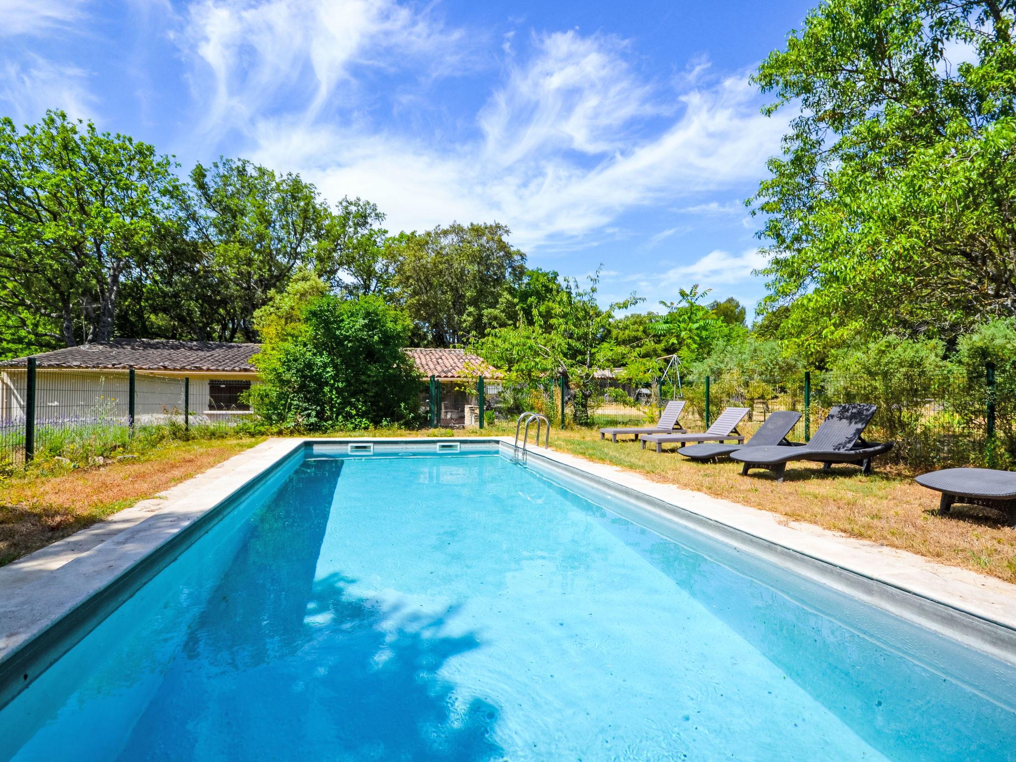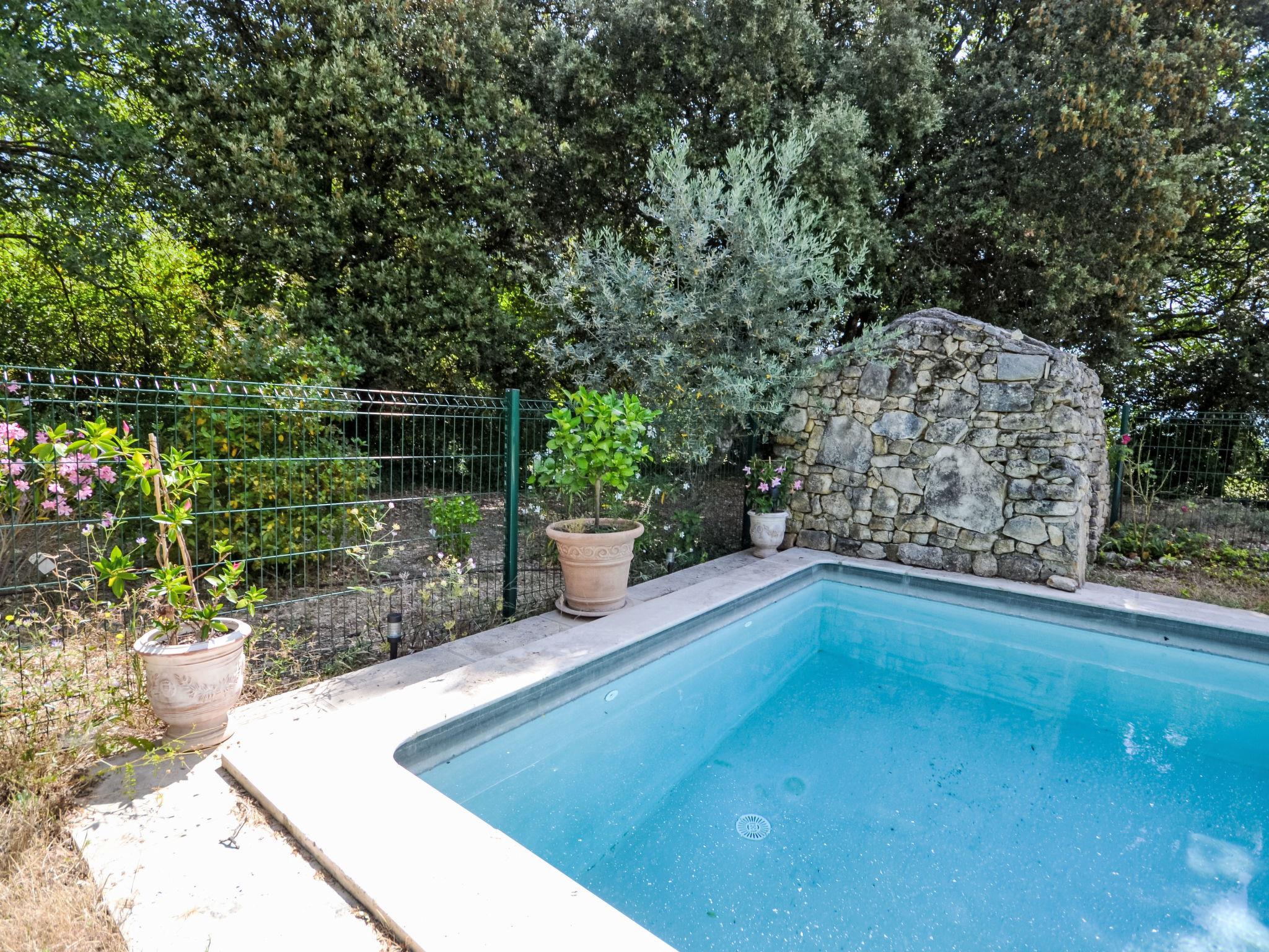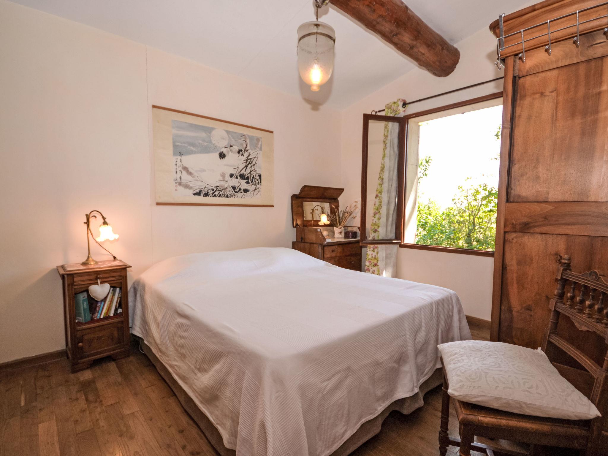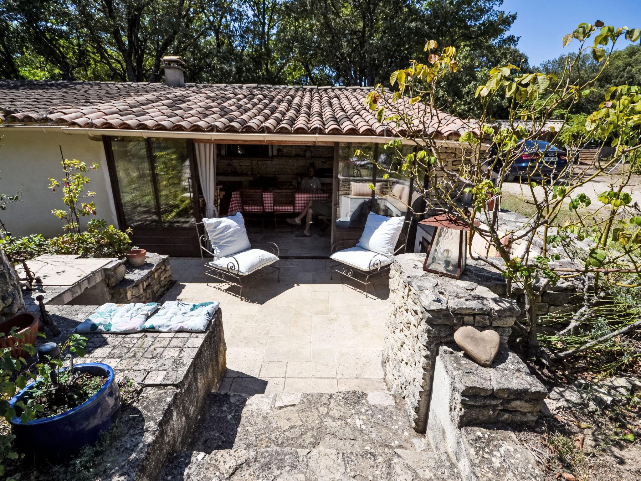 The covered terrace has a sink, a small fridge and an electrical grill. Mas "Le Bois d'Amour", built in 1900, renovated, surrounded by trees. Outside the resort, 2.5 km from the centre of d'Apt, in a quiet position, 100 m from the edge of the forest, north-east facing position. Private: property 2'500 m2 (fenced) with flowers and trees, swimming pool fenced (10 x 4 m, depth 150 cm, seasonal availability: 01.May. - 15.Oct.) with alarm system. Outdoor shower, terrace, garden furniture. Motor access to the house (50 m via unmade road). Parking on the premises. E-charging station. Shop 4 km, grocery 4 km, restaurant 4 km, bakery 4.8 km, bicycle rental 4.3 km, bus stop "Gare Routière" 5 km, lake Plan d'eau d'Apt 6.4 km. Golf course (9 hole) 5.2 km, children's playground 5 km. Nearby attractions: Colorado de Rustrel 10 km, Les Ocres de Roussillon 11 km, Village classé de Gordes 10 km, Simiane La Rotonde 24 km, Avignon 54 km. Hiking paths: Parc Régional des Alpilles 30 km, Forêt des Cèdres 22 km, Parc Régional du Luberon 10 km. Please note: car recommended.