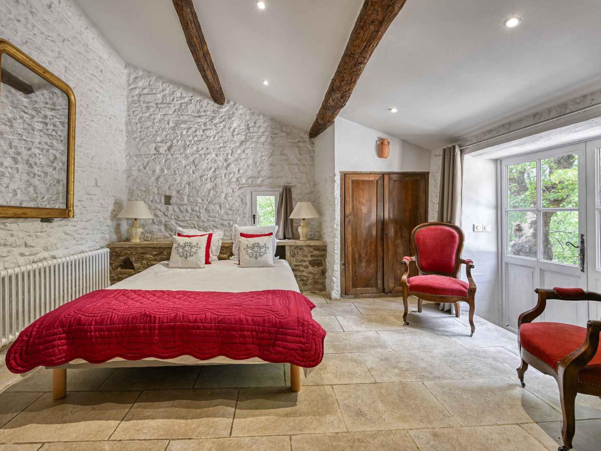 Inside, the typical Provençal-style bastide blends perfectly into the natural surroundings with its pure elegance. The living areas include a large, light-flooded living room and dining room with generous bay windows that spectacularly showcase the greenery outside. A cosy fireplace and elegant furniture add warmth to the room. You will also find a high-quality kitchen, fully equipped for culinary experiences, as well as a select library that invites you to linger over a good whisky. The bedrooms, including the red, gold and pink bedrooms and a charming flat, have each been lovingly and comfortably designed to offer maximum comfort.