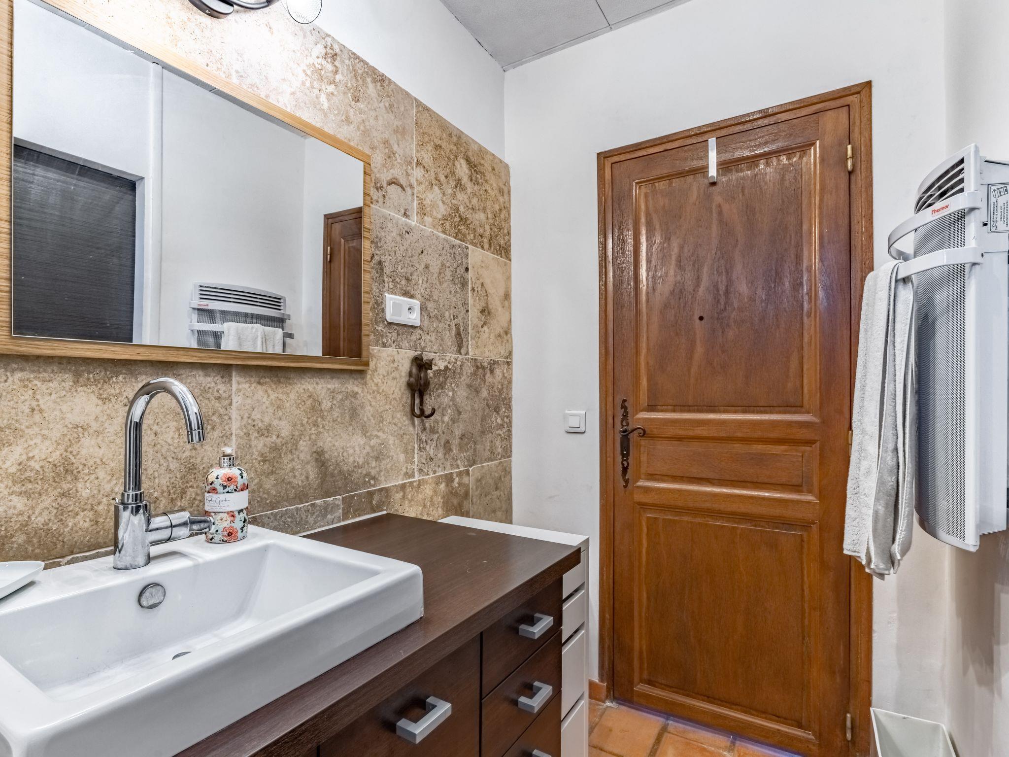 "La Campagne des Ocres", 2-room terraced house 55 m2. Practical and comfortable furnishings: living/dining room with 2 sleeping facilities (1 x 160 cm, length 200 cm), open-hearth fireplace (only for decoration), TV, radio and electric heating. Exit to the terrace. 1 room with 1 french bed (1 x 160 cm, length 200 cm). Kitchen (oven, dishwasher, 3 induction hot plates, toaster, kettle, microwave, freezer, electric coffee machine). Shower, sep. WC. Electric heating. 2 terraces. Terrace furniture, electric barbecue (portable), deck chairs. Facilities: washing machine, iron, baby cot. Internet (WiFi, free). Please note: non-smoking house. Smoke alarm.