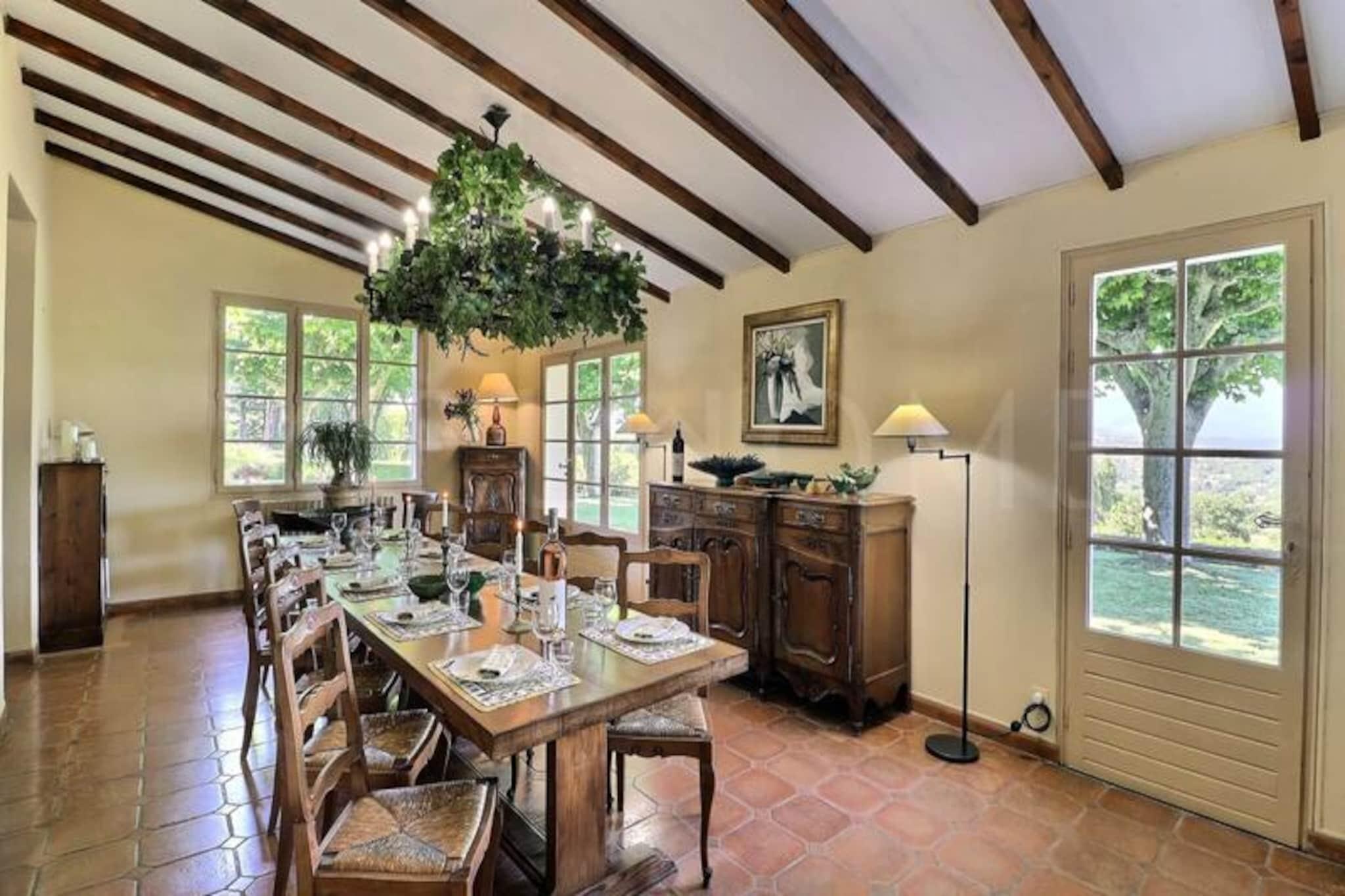 Ved foden af ??den dramatiske Rocher de Saignon rejser Bastide de L'Esclat sig yndefuldt midt i et landskab med gamle olivenlunde og duftende lavendelmarker. Denne fortryllende provencalske ejendom inviterer dig til at træde ind i en verden af ??tidløs skønhed og ro, hvor hver sten og springvand hvisker charmen fra Luberon-regionen. Ejendommens majestætiske indkørsel med træer og springvand fra det 18. århundrede sætter tonen for et uforglemmeligt ophold i hjertet af Provence. Denne udsøgte bastide med plads til op til 17 gæster er perfekt til familiesammenkomster eller sammenkomster med venner. Den private pool, der ligger på ejendommens højder, tilbyder panoramaudsigt over Monts du Vaucluse, Luberon-bjergene og den ikoniske Rocher de Saignon. Slap af på den skyggefulde terrasse under et gammelt egetræ, og nyd duften af ??lavendel og cikadernes beroligende sang. Indenfor udstråler bastiden rustik elegance med sin stentrappe fra det 17. århundrede, smedejernslysekroner og terrakottafliser. Den franskinspirerede stue med en stor stenpejs tilbyder et hyggeligt tilflugtssted, mens det fuldt udstyrede køkken og spisestuen lover mindeværdige måltider, der deles med dine kære. Bastidens otte soveværelser, inklusive tre suiter, er designet til at kombinere moderne komfort med provencalsk charme. Hvert værelse tilbyder en betagende udsigt over de omkringliggende bjerge, parken eller poolen, hvilket sikrer afslappende nætter i rolige omgivelser. Udendørsområderne er lige så indbydende med flere terrasser til udendørs spisning og et poolhus udstyret med køleskab, vandhane og plancha-grill til sommerens festmåltider. Bastide de L'Esclat, der er ideelt beliggende i hjertet af Luberon, er en port til regionens skatte. Udforsk maleriske landsbyer, lavendelmarker og vinmarker, eller slap blot af på denne magiske ejendom, der er et udtryk for den blide provencalske livsstil. Book dit ophold i dag og skab uforglemmelige minder i dette idylliske tilflugtssted.