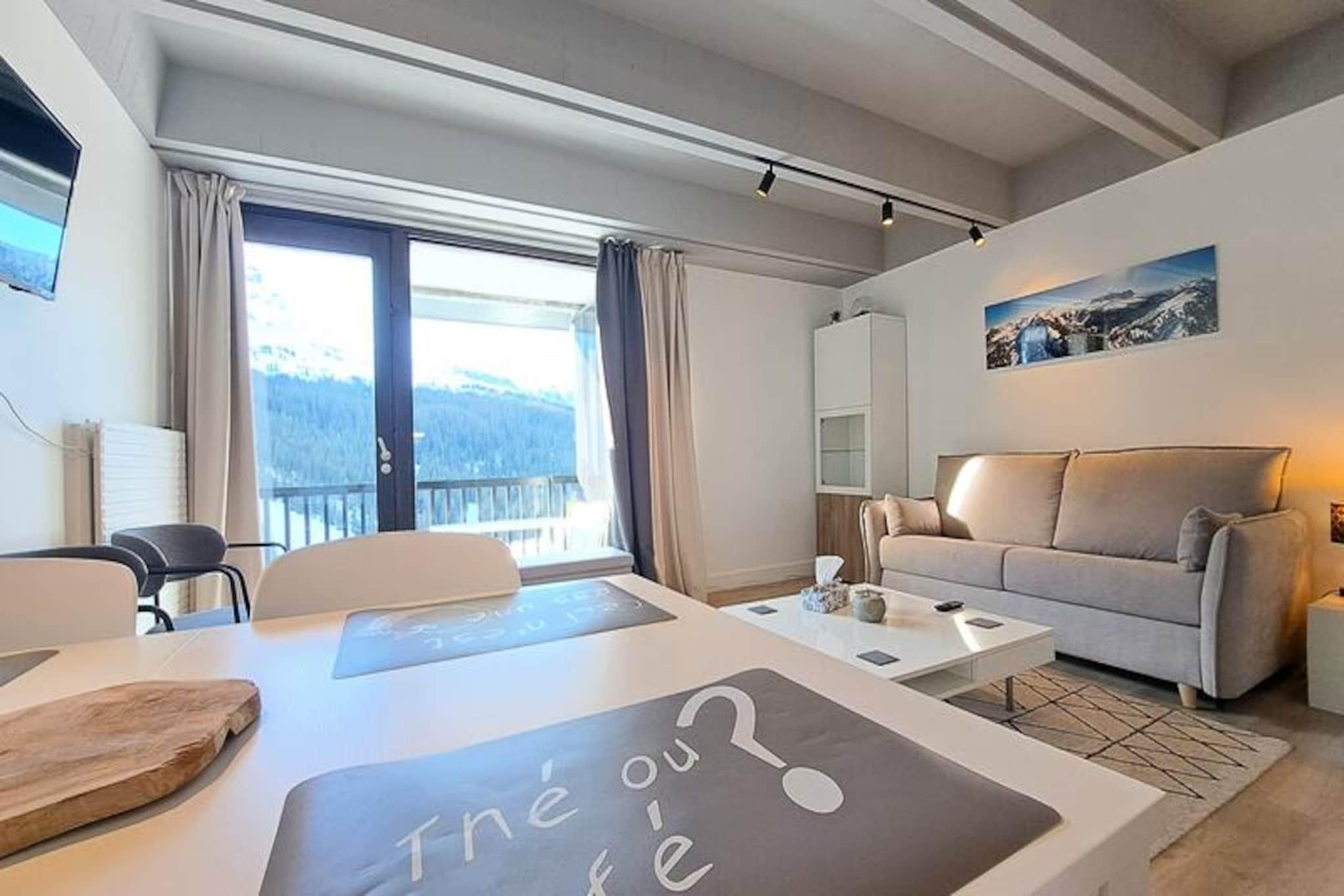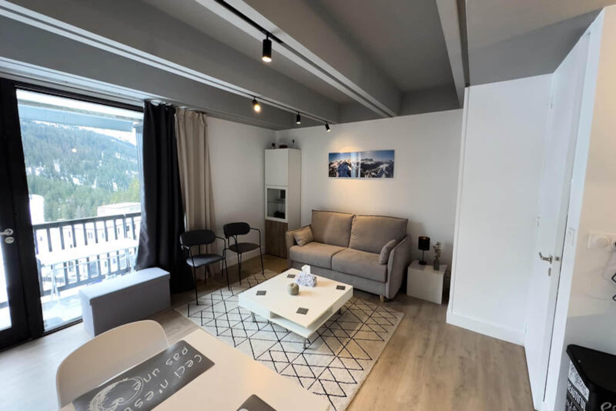 Højt over Flaines fredfyldte alpine landskaber tilbyder Aldébaran Residence i Forum-distriktet en uovertruffen beliggenhed til din bjergferie. Dette pulserende knudepunkt er hjertet af feriestedet, hvor charmen ved snedækkede tinder møder den livlige energi fra butikker, restauranter og afterski-aktiviteter. Forestil dig at træde ud af dit hyggelige tilflugtssted og befinder dig kun 50 meter fra Flaine Forum indkøbscenter med alt hvad du behøver lige ved hånden. Residensen er designet til komfort og bekvemmelighed og byder på en 43 m² stor lejlighed på 8. sal. Med en planløsning, der inkluderer en lys stue med sovesofa, et halvåbent køkken, et soveværelse med dobbeltseng og en sovealkove med køjesenge, er den perfekt til familier eller grupper på op til seks personer. To balkoner giver en fantastisk udsigt over de omkringliggende bjerge, mens moderne bekvemmeligheder som Wi-Fi, vaskemaskine og et veludstyret køkken sikrer et problemfrit ophold. Efter en dag på pisterne kan du slappe af i den rummelige spisestue eller nyde et stille øjeblik på balkonen, mens du nyder den friske bjergluft. Skientusiaster vil elske nærheden til pisterne, med Flaine Forum ESF-mødestedet og Télébennes-svævebanen kun få skridt væk. Uanset om du er nybegynder eller erfaren skiløber, lover det store Flaine-skiområde uendelige eventyr. Om aftenen kan du udforske feriestedets pulserende natteliv eller forkæle dig selv med lokale Savoyard-specialiteter på nærliggende restauranter. Vælg Aldébaran Residence for en uforglemmelig alpin ferie, hvor hver eneste detalje er skræddersyet til at gøre dit ophold så behageligt og mindeværdigt som muligt.