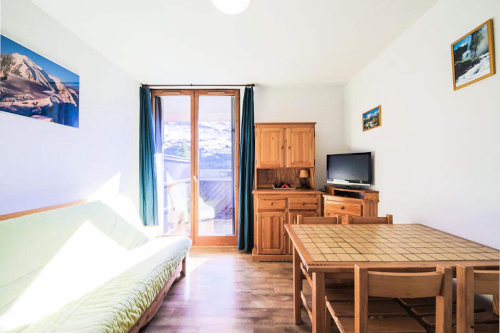Højt over den maleriske Flaine-dal inviterer Résidence Doris dig til at opleve den perfekte alpine ferie. Beliggende i det fredfyldte Flaine Forêt-distrikt tilbyder denne charmerende residens et fredeligt tilflugtssted kun få øjeblikke fra feriestedets pulserende hjerte. Forestil dig at vågne op til frisk bjergluft og betagende udsigt, klar til at udforske de endeløse udendørs eventyr, der venter dig. Uanset om du er her for at stå på ski, vandre eller blot slappe af, er dette din port til Grand Massifs naturlige skønhed. Studiolejligheden, der er designet til komfortabelt at rumme op til fire gæster, har en hyggelig stue, en sovealkove, et fuldt udstyret køkken og et moderne badeværelse med separat toilet. Den er omhyggeligt møbleret med essentielle bekvemmeligheder, herunder sengelinned og håndklæder, og sikrer et problemfrit ophold. Yderligere faciliteter såsom et rengøringssæt og valgfri slutrengøring gør din ferie endnu mere bekvem. Residensens Maeva Home Comfort Label garanterer fremragende værdi for pengene og kombinerer kvalitet og overkommelighed i én dejlig pakke. Kun 250 meter fra Flaine Forêt-indkøbscentret finder du alle de nødvendige fornødenheder, lige fra et lokalt supermarked til charmerende butikker. Den nærliggende elevator forbinder dig ubesværet til Flaine Forum, det livlige centrum af feriestedet, der fyldt med barer, restauranter og aktiviteter. For skientusiaster giver Gerats-stoleliften og den gratis Skibus-shuttle hurtig adgang til verdensklasse-pisterne i skiområdet Grand Massif. Om sommeren forvandles bjergene til et paradis for vandrere og naturelskere. Vælg Résidence Doris til din næste alpine ferie og skab uforglemmelige minder i hjertet af de franske alper. Uanset om du søger eventyr eller ro, tilbyder denne bolig den perfekte balance mellem komfort, bekvemmelighed og charme.