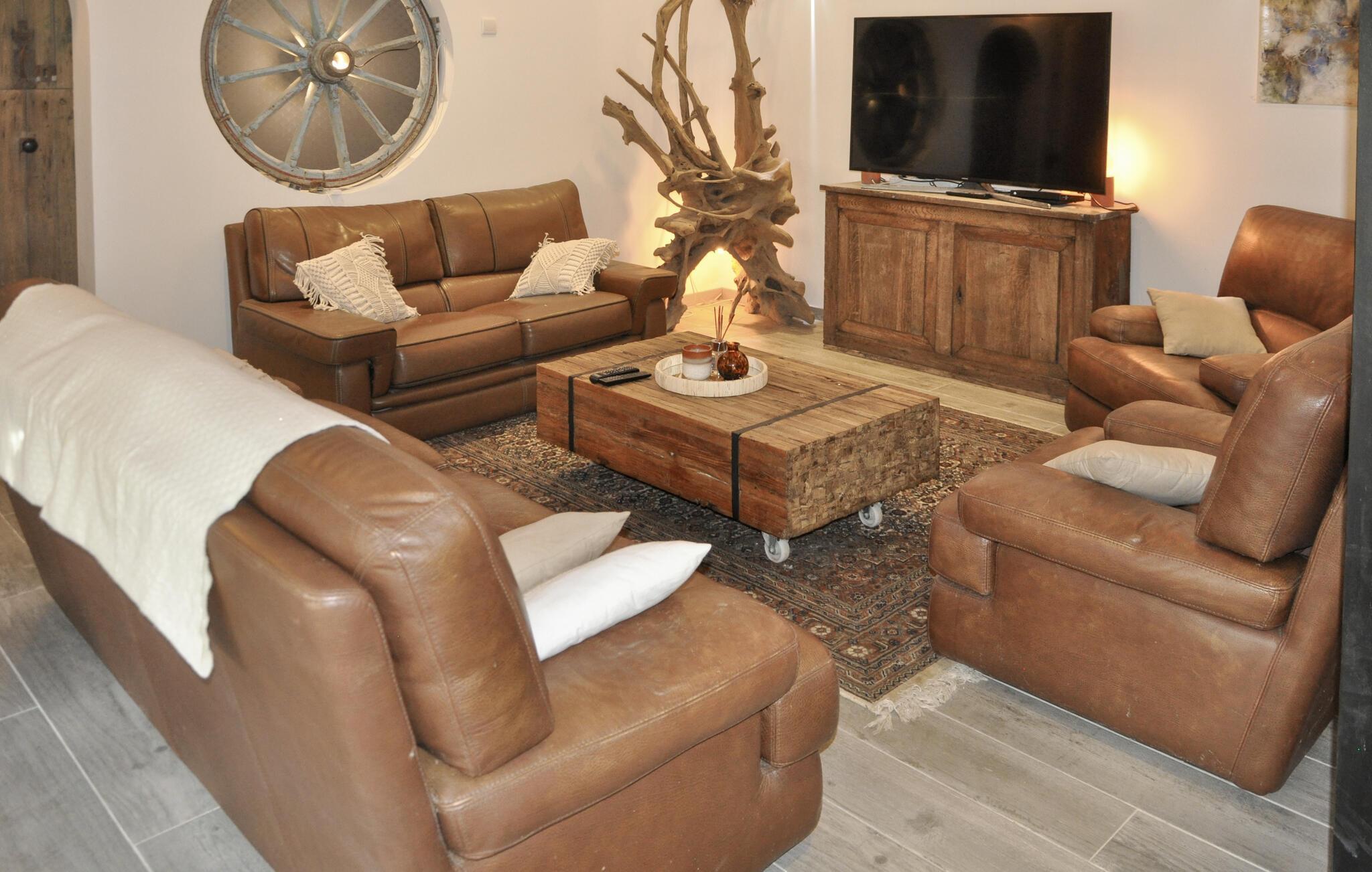 Forkæl jer selv med en pause fra hverdagen og tag på en magisk ferie med flere vennepar eller familien i dette rummelige og stilfulde hus. Den står på afslapning og komfort over hele linjen her, det være sig i soveværelserne, badeværelserne og i den kreativt indrettede stue, hvor der venter mange hyggelige stunder i hinandens gode selskab. Faciliteterne er af højeste kvalitet med et tydeligt strejf af den flotte region, I bor i. Fra soveværelserne og stuen kan I trække ud på den overdækkede terrasse og mødes til en lækker morgenmad efter en god nats søvn.