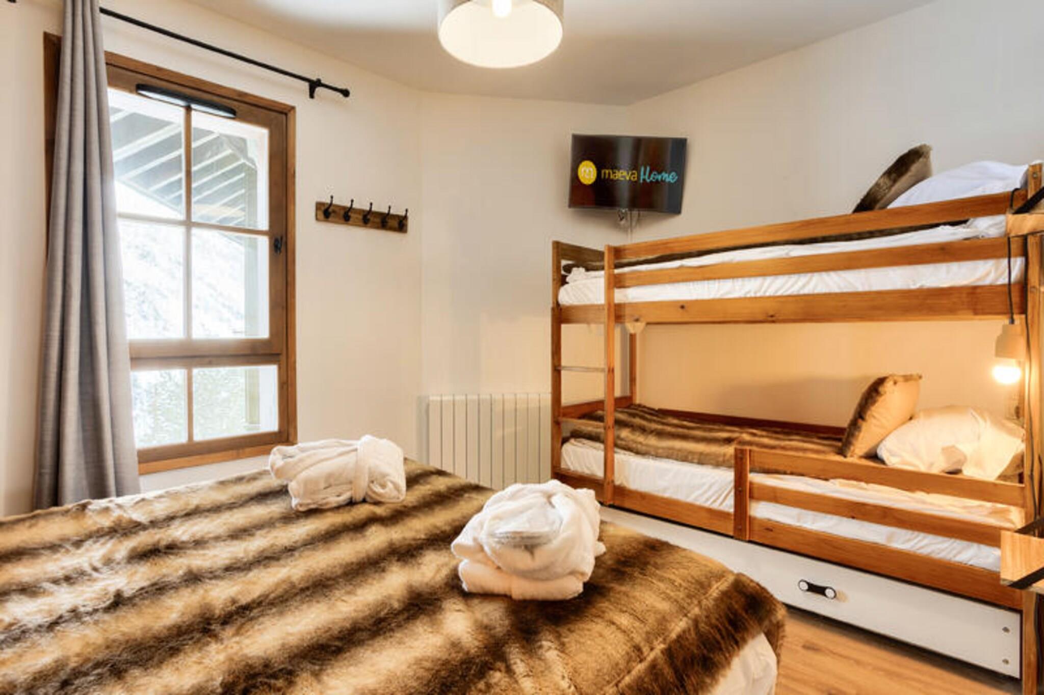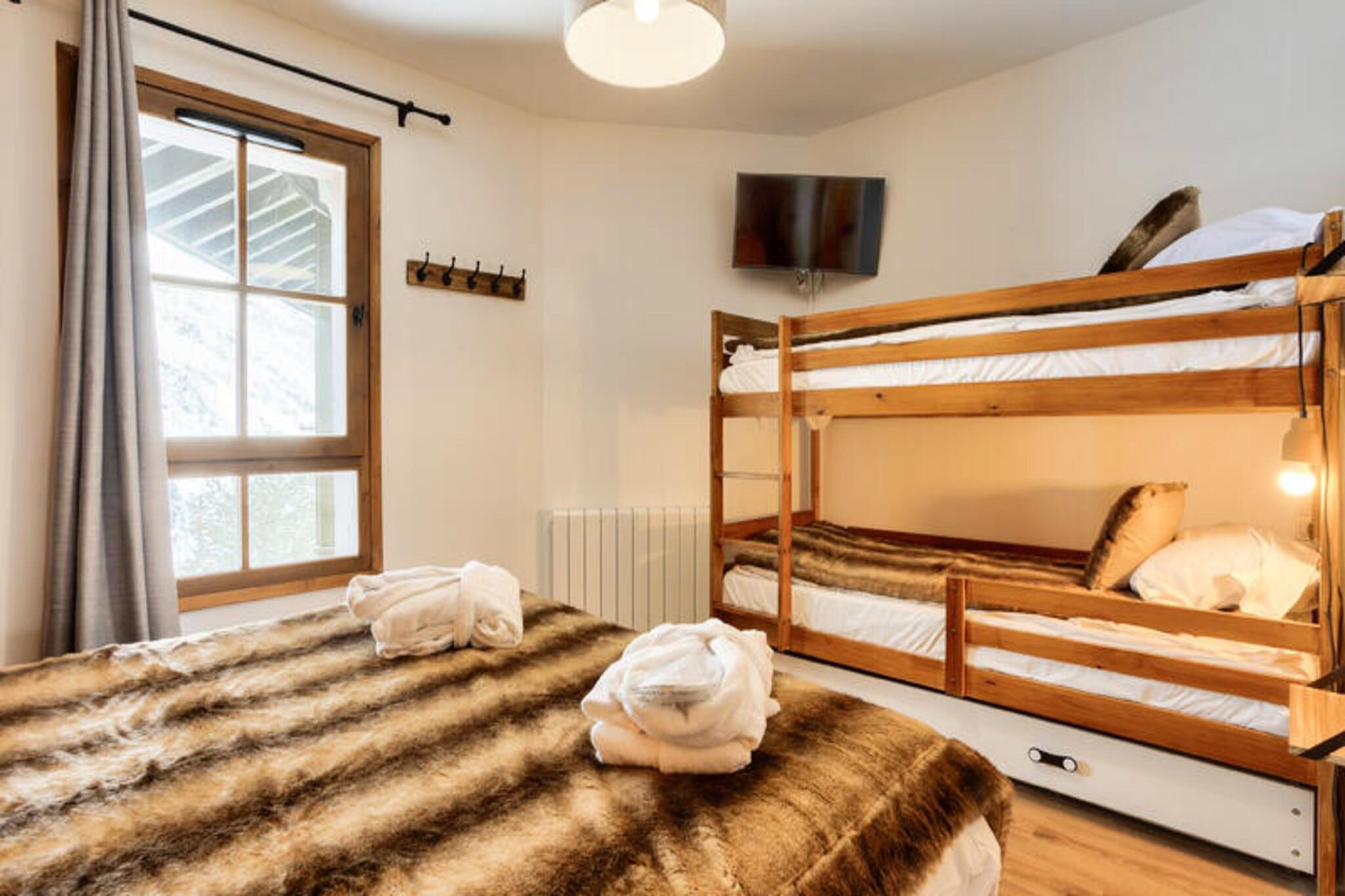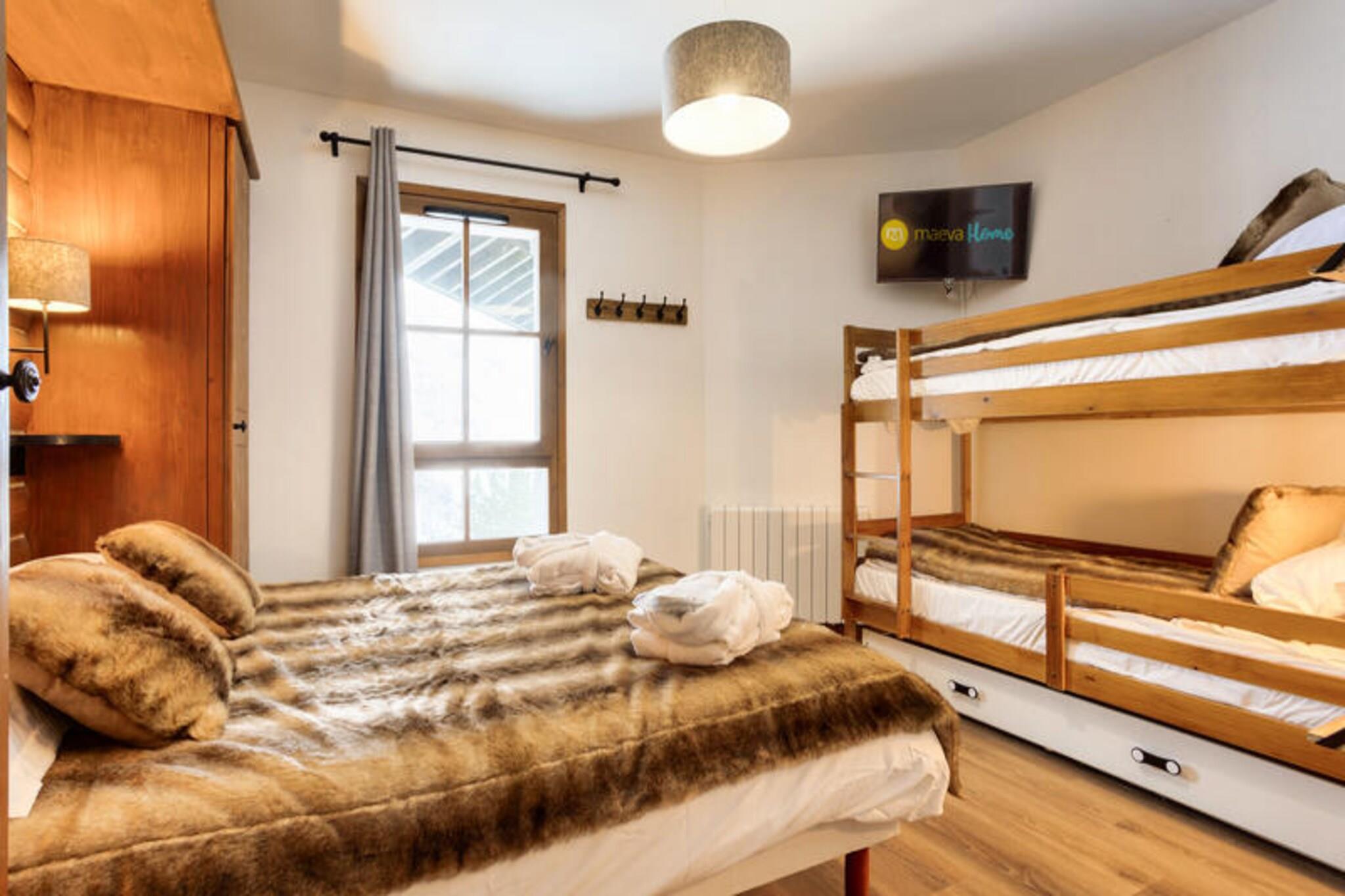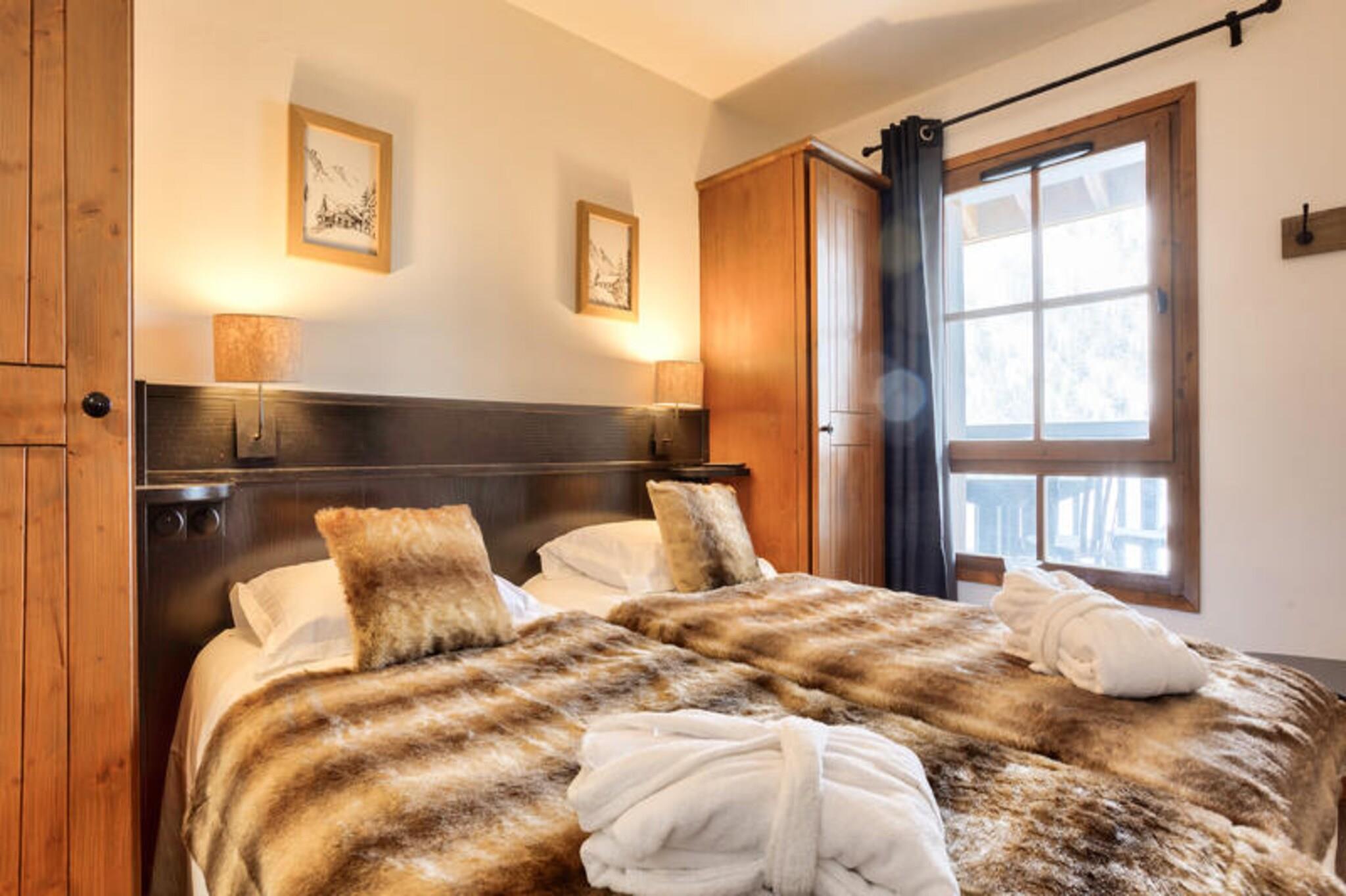 Denne moderne lejlighed byder p? to hyggelige sovev?relser, et med dobbeltseng og det andet med to enkeltsenge, perfekt til en familie eller en lille gruppe. Det har ogs? to velholdte badev?relser og et separat toilet. K?ledyr er tilladt efter anmodning, og babys?t er tilg?ngelige. Med praktiske faciliteter s?som en stue med sovesofa, fladsk?rms-tv og et fuldt udstyret amerikansk k?kken sikrer denne lejlighed et behageligt ophold. G?sterne kan nyde den betagende udsigt over bjergene fra balkonen, som vender mod vest. Ejendommen er ideelt beliggende i hjertet af landsbyen, kun 100 meter fra butikker, caf?er og markeder. Uanset om du bes?ger for at st? p? ski, vandre eller cykle, er alt, hvad du beh?ver, lige uden for d?ren. Landsbyen tilbyder adgang til Paradiski, et af de st?rste skiomr?der i verden, og den n?rliggende cykelpark om sommeren. Med en r?kke spisemuligheder, barer og 40 butikker kan g?sterne opleve den pulserende lokale atmosf?re, mens de nyder de maleriske omgivelser. Yderligere faciliteter inkluderer et fuldt udstyret k?kken med et spisebord og otte stole, hvilket g?r det nemt at tilberede m?ltider. Badev?relserne har badekar eller bruser, elektriske h?ndkl?deholdere og h?rt?rrer. G?sterne har ogs? adgang til en f?lles udend?rs opvarmet pool, sauna og andre wellness-faciliteter. Parkering er tilg?ngelig mod et ekstra gebyr, og lejligheden er velholdt med slutreng?ring inkluderet.