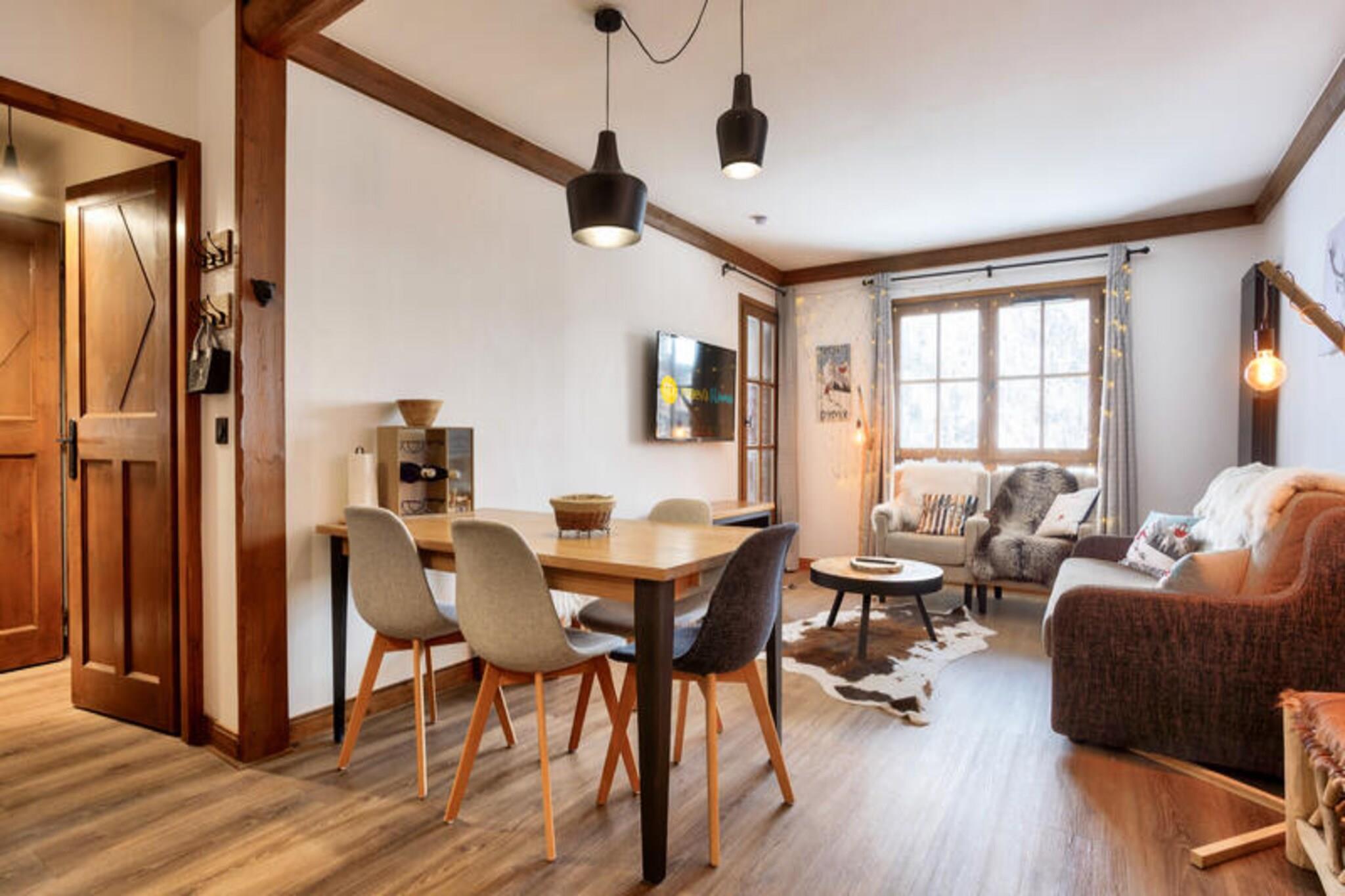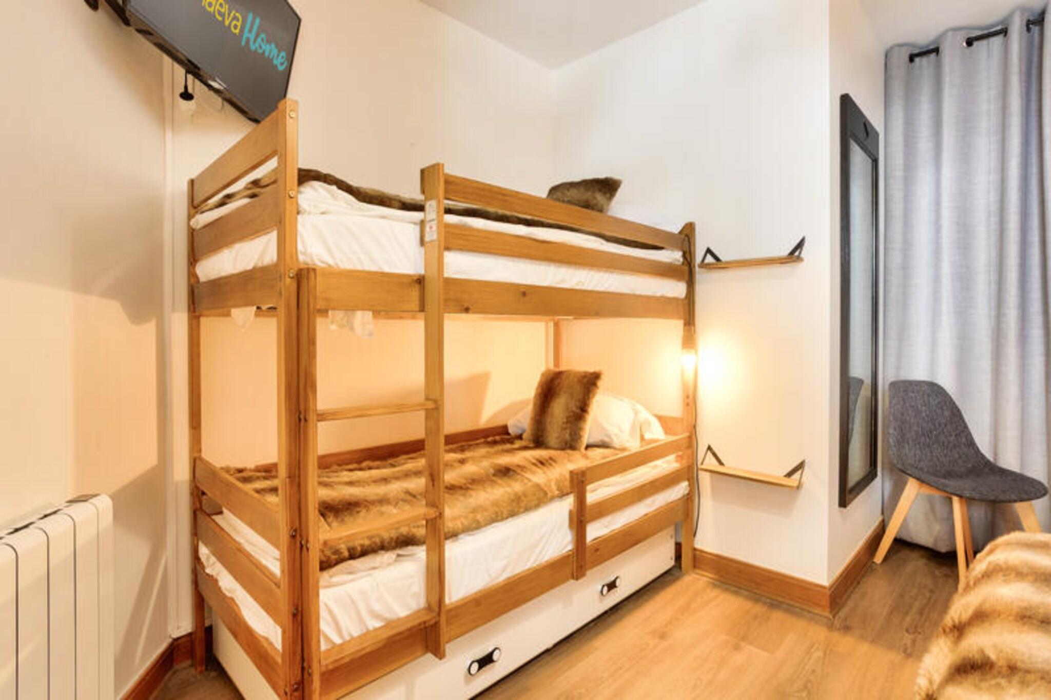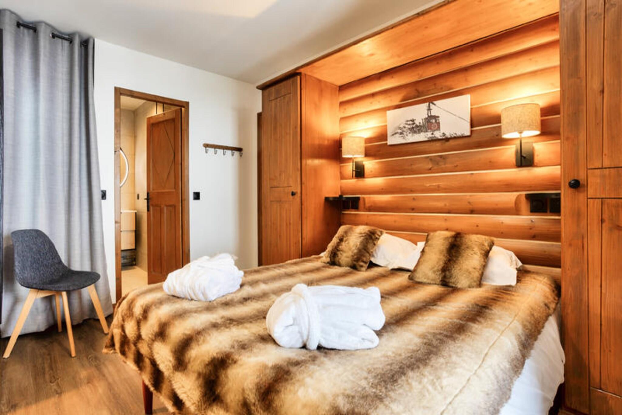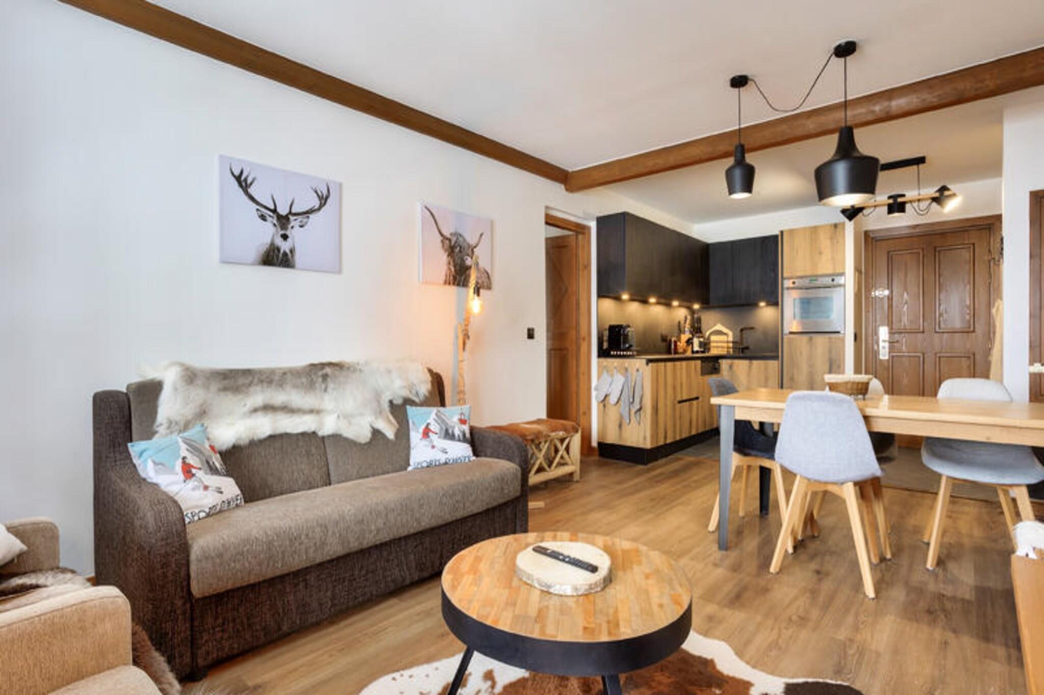 Denne moderne lejlighed byder p? to hyggelige sovev?relser, et med dobbeltseng og det andet med to enkeltsenge, perfekt til en familie eller en lille gruppe. Det har ogs? to velholdte badev?relser og et separat toilet. K?ledyr er tilladt efter anmodning, og babys?t er tilg?ngelige. Med praktiske faciliteter s?som en stue med sovesofa, fladsk?rms-tv og et fuldt udstyret amerikansk k?kken sikrer denne lejlighed et behageligt ophold. G?sterne kan nyde den betagende udsigt over bjergene fra balkonen, som vender mod vest. Ejendommen er ideelt beliggende i hjertet af landsbyen, kun 100 meter fra butikker, caf?er og markeder. Uanset om du bes?ger for at st? p? ski, vandre eller cykle, er alt, hvad du beh?ver, lige uden for d?ren. Landsbyen tilbyder adgang til Paradiski, et af de st?rste skiomr?der i verden, og den n?rliggende cykelpark om sommeren. Med en r?kke spisemuligheder, barer og 40 butikker kan g?sterne opleve den pulserende lokale atmosf?re, mens de nyder de maleriske omgivelser. Yderligere faciliteter inkluderer et fuldt udstyret k?kken med et spisebord og otte stole, hvilket g?r det nemt at tilberede m?ltider. Badev?relserne har badekar eller bruser, elektriske h?ndkl?deholdere og h?rt?rrer. G?sterne har ogs? adgang til en f?lles udend?rs opvarmet pool, sauna og andre wellness-faciliteter. Parkering er tilg?ngelig mod et ekstra gebyr, og lejligheden er velholdt med slutreng?ring inkluderet.