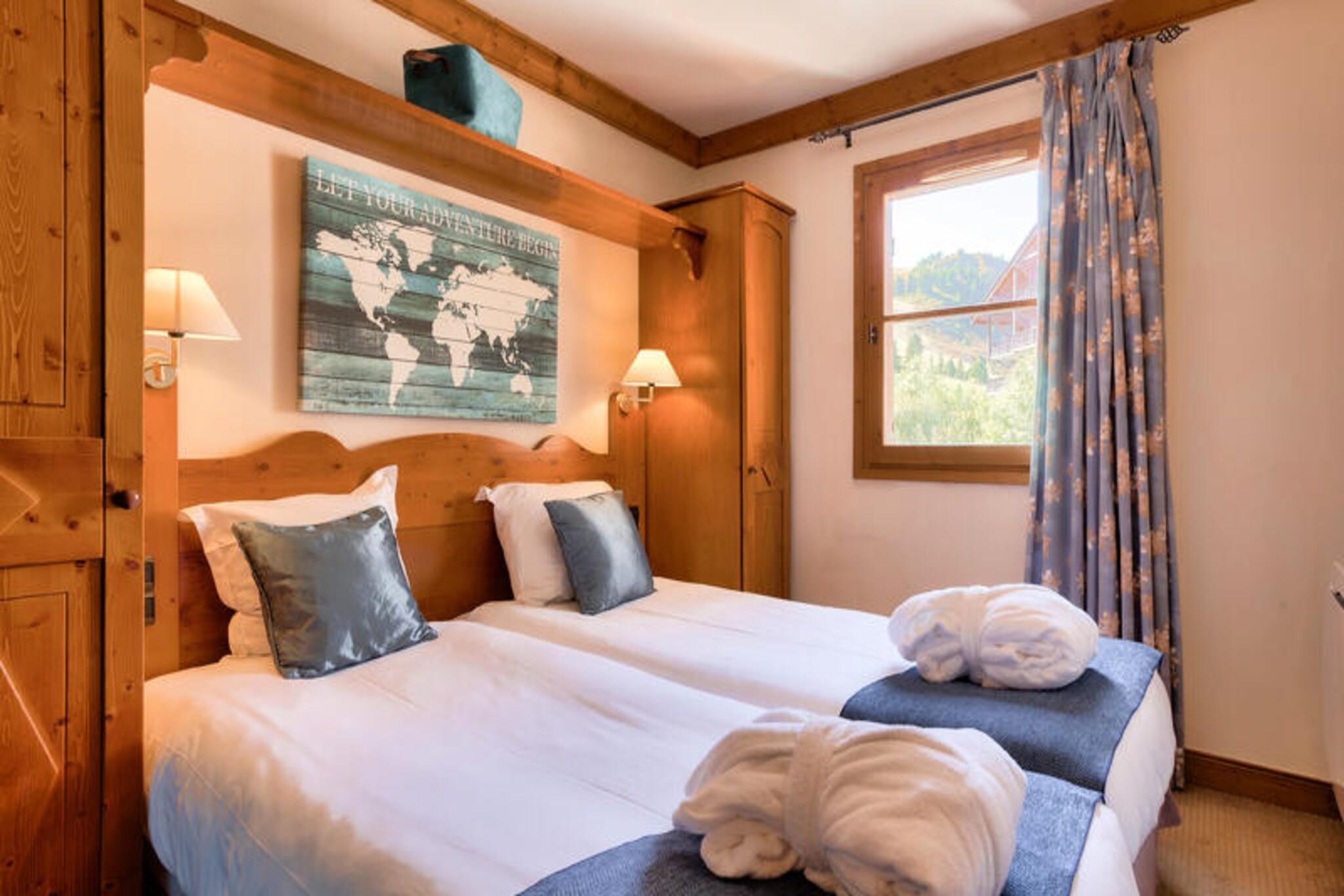 Denne luksuri?se lejlighed er perfekt til familier eller grupper, og byder p? to sovev?relser: det ene med en dobbeltseng og det andet med to enkeltsenge. Den rummelige stue har en sovesofa og en spiseplads med seks stole. Nyd en fantastisk udsigt over bjergene fra den sydvestvendte balkon, og drag fordel af faciliteter s?som et skiskab, Nespresso-maskine, pengeskab og Wi-Fi. K?ledyr er velkomne, men der opkr?ves et till?gsgebyr. En f?lles opvarmet udend?rs pool og andre wellness-faciliteter s?som saunaer og fitnesslokaler forbedrer oplevelsen. Denne ejendom ligger i en landsby, der kun er for fodg?ngere, og tilbyder direkte adgang til Paradiskis omfattende skiomr?de og vandrestier. Om sommeren er den 180 km lange cykelpark en sp?ndende mulighed. Udforsk de n?rliggende caf?er, restauranter, butikker og lokale markeder samt Deep Nature Spa for afslapning. Du vil ogs? finde et supermarked for nem shopping. Omgivelserne byder p? en betagende udsigt, med Mont Blanc i kort afstand. Landsbyen har en r?kke spise- og underholdningsmuligheder for alle. Lejligheden har et fuldt udstyret k?kken ?bent til opholdsstuen, perfekt til at tilberede m?ltider efter en dag med aktiviteter. Der er to moderne badev?relser, et med badekar og et med bruser, samt et separat toilet. Yderligere bekvemmeligheder omfatter bord og strygejern, h?rt?rrer og reng?ring. Ejendommen tilbyder ogs? et vaskeri og betalingsparkering, hvilket g?r det til et bekvemt og behageligt valg for dit ophold.