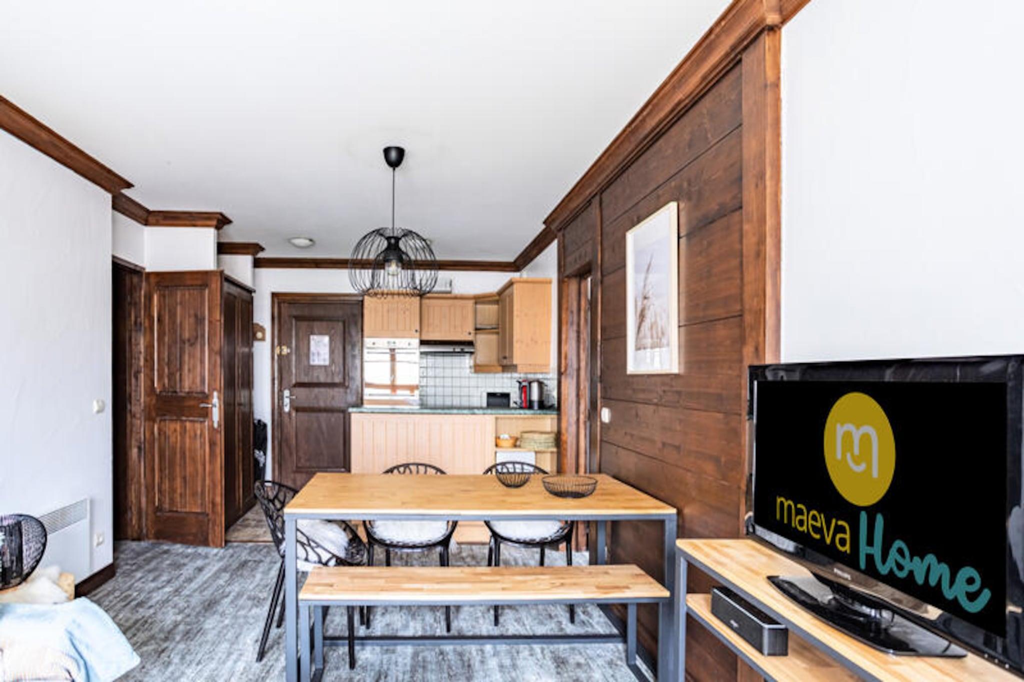 Denne rummelige lejlighed kan rumme op til 6 g?ster med to sovev?relser, det ene med en dobbeltseng og det andet med to enkeltsenge. Opholdsomr?det omfatter to sovesofaer, perfekt til afslapning efter en dag p? ski. Der tilbydes k?ledyrsvenlige overnatningssteder, og en betalingsparkering kan reserveres p? forh?nd. G?sterne har adgang til forskellige wellness-faciliteter, herunder opvarmede udend?rs pools, fitnesscenter, sauna og jacuzzi. Lejligheden har ogs? en smuk balkon med udsigt over bjergene. Ejendommen ligger i hjertet af en fodg?ngervenlig landsby, kun en kort g?tur fra butikker, caf?er og restauranter. Det ligger i bunden af ??Paradiski-skiomr?det og tilbyder adgang til over 700 km skil?jper. Det omkringliggende omr?de kan prale af en utrolig udsigt over Mont Blanc og en cykelpark i sommerm?nederne. Friluftsentusiaster vil ogs? s?tte pris p? n?rheden til vandrestier og nationalparken Vanoise. Indvendigt indeholder lejligheden et fuldt udstyret k?kken i amerikansk stil, to badev?relser og et separat toilet. Hovedbadev?relset har badekar med bruses?jle, mens det andet har bruser. Der er h?rt?rrer, elektrisk h?ndkl?destativ og tilstr?kkelig opbevaringsplads. Lejligheden byder p? en hyggelig og funktionel indretning, hvilket g?r den til et perfekt tilflugtssted for b?de afslapning og eventyr.