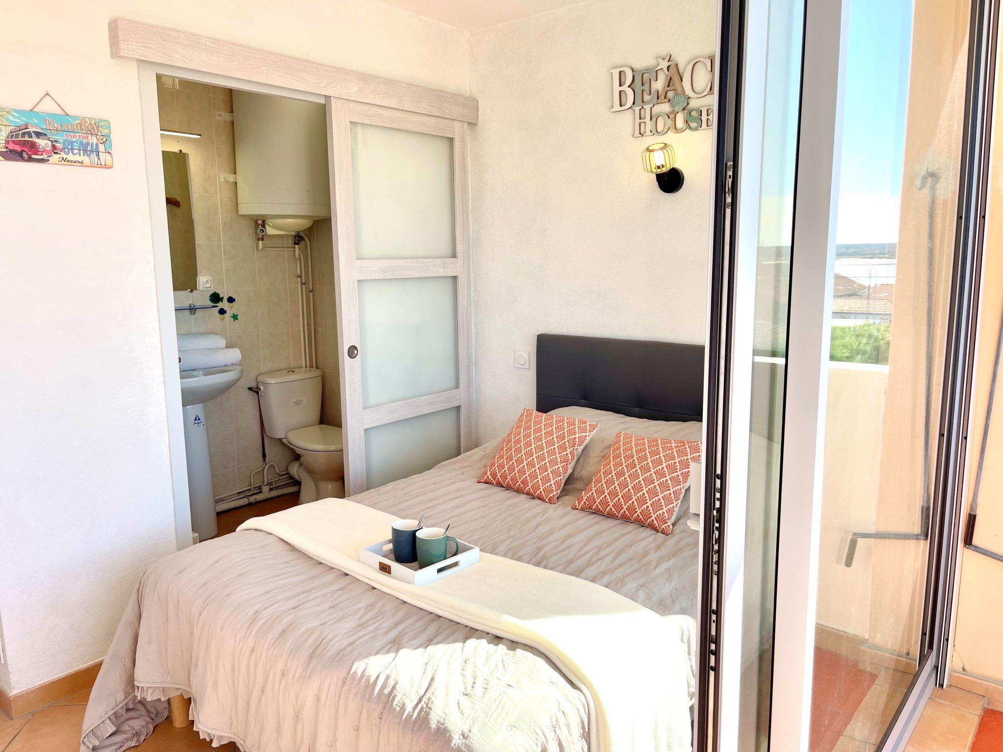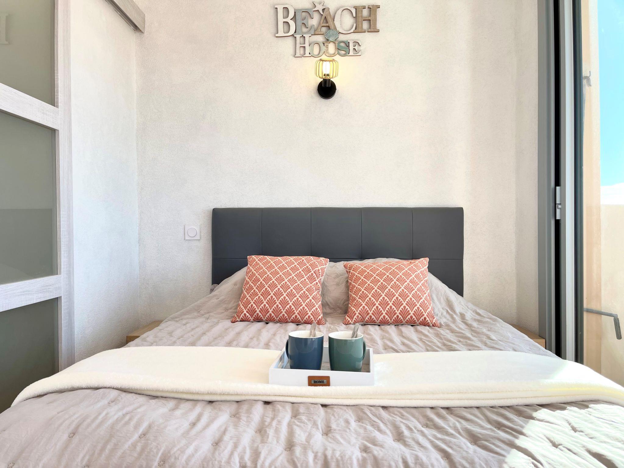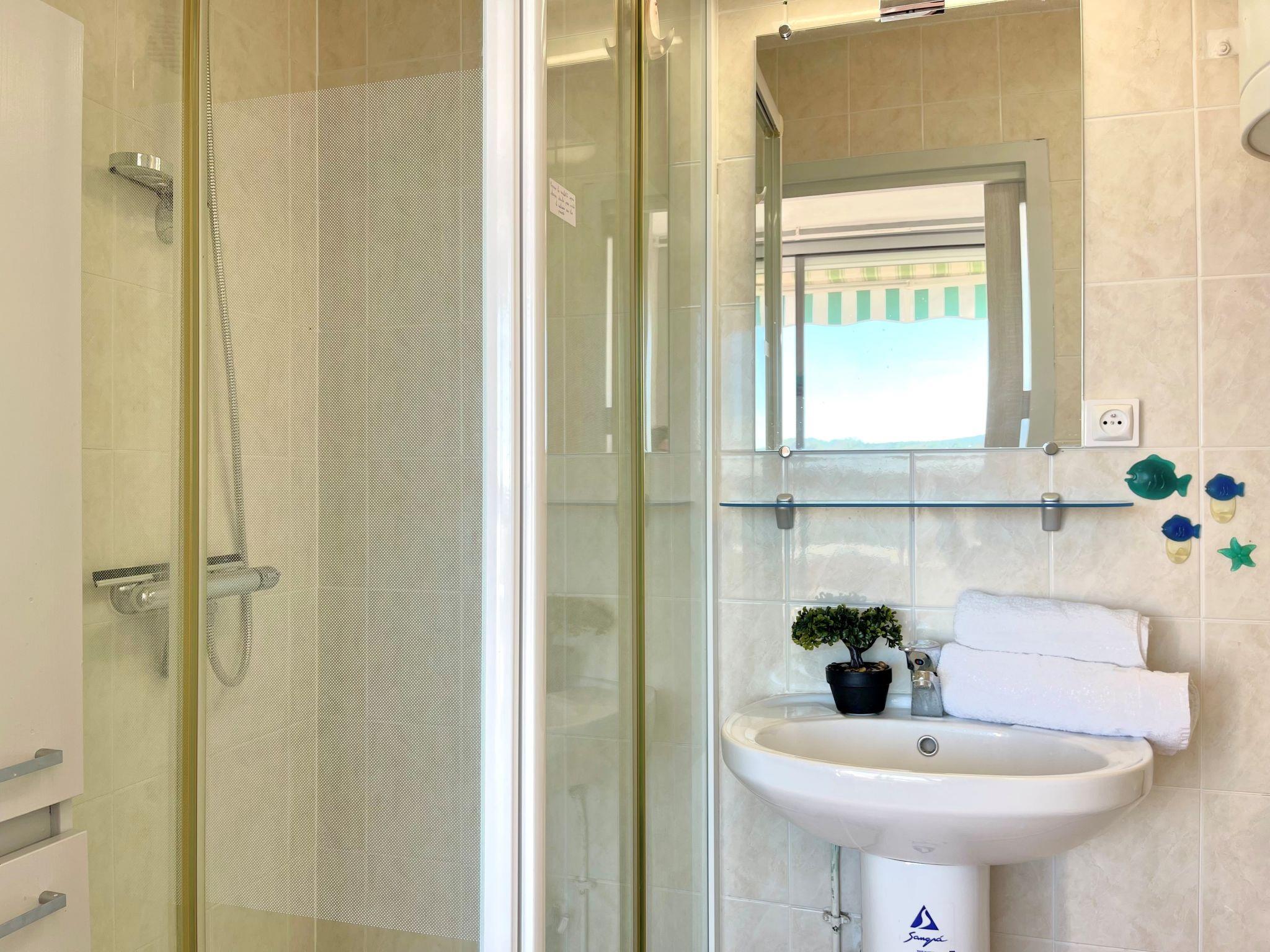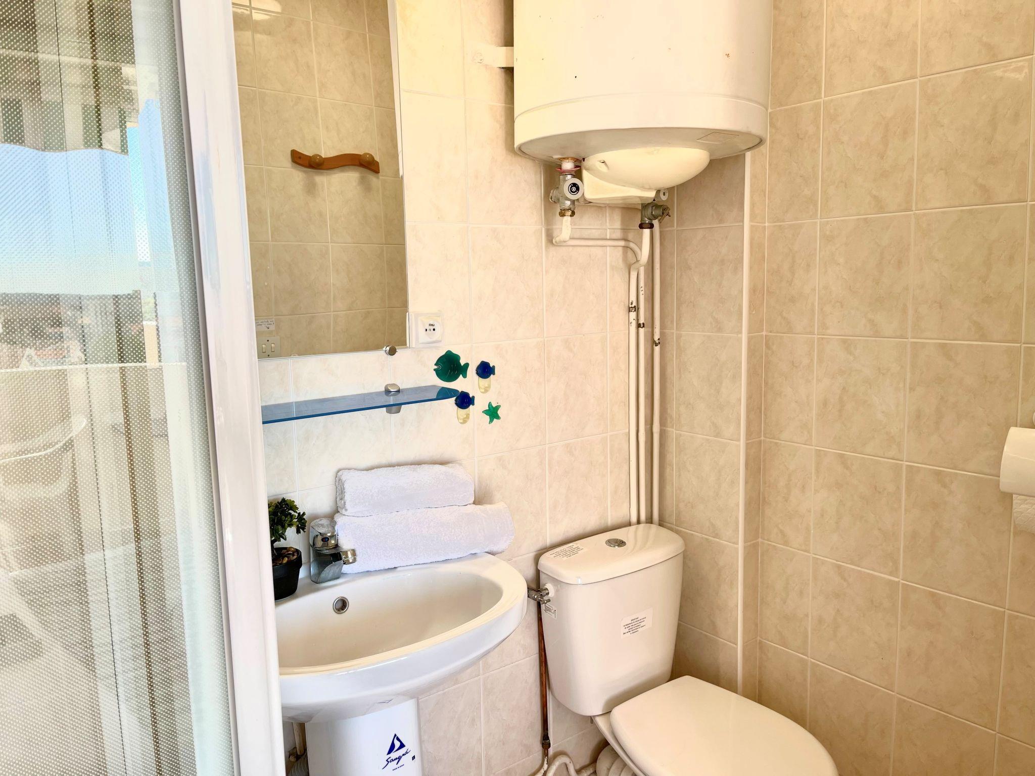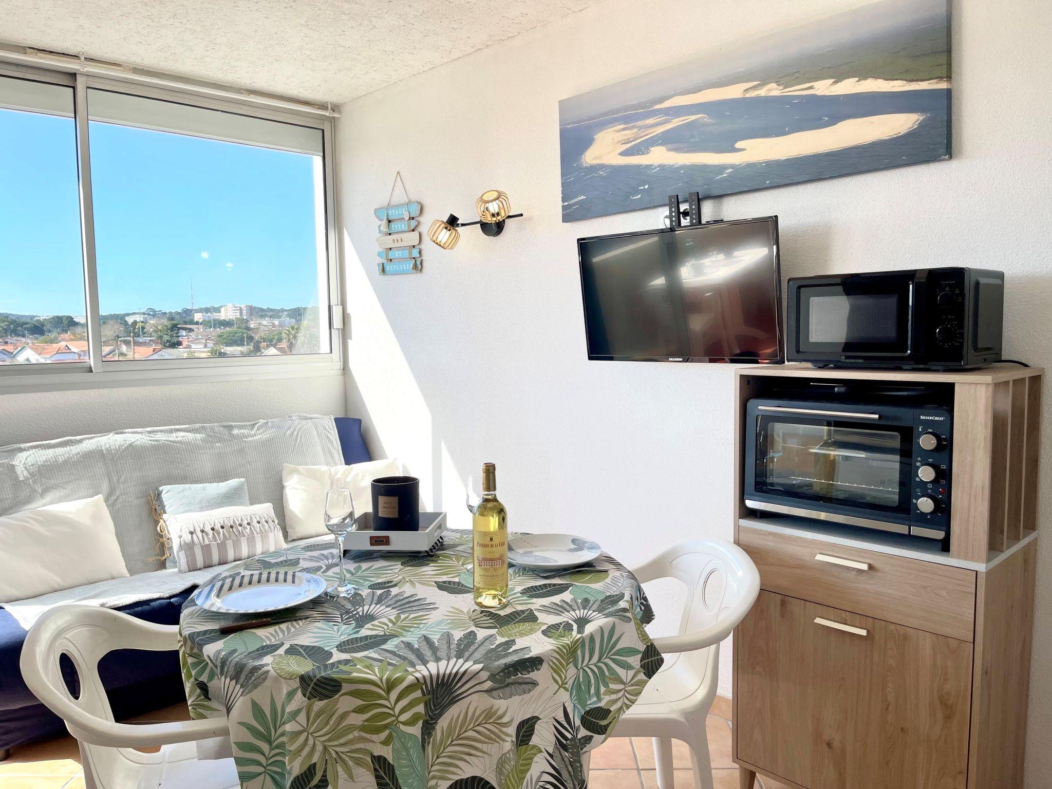 2-room apartment 22 m2 on 3rd floor. Simple and practical furnishings: living/dining room with TV (flat screen). Exit to the balcony. 1 small room with 1 french bed (1 x 140 cm, length 190 cm). Exit to the balcony. Open kitchen (mini-oven, 2 induction hot plates, toaster, kettle, microwave, electric coffee machine, Capsules for coffee machine (Senseo) extra). Shower/WC. Electric heating. Small balcony 5 m2, south facing position. Balcony furniture. Partial view of the sea. Facilities: hair dryer. Internet (WiFi, extra). Parking space n 41 (1 car). Please note: non-smokers only. Smoke alarm. Offer by a private individual according to Art. 155, IV of CGI. 33009002937CA