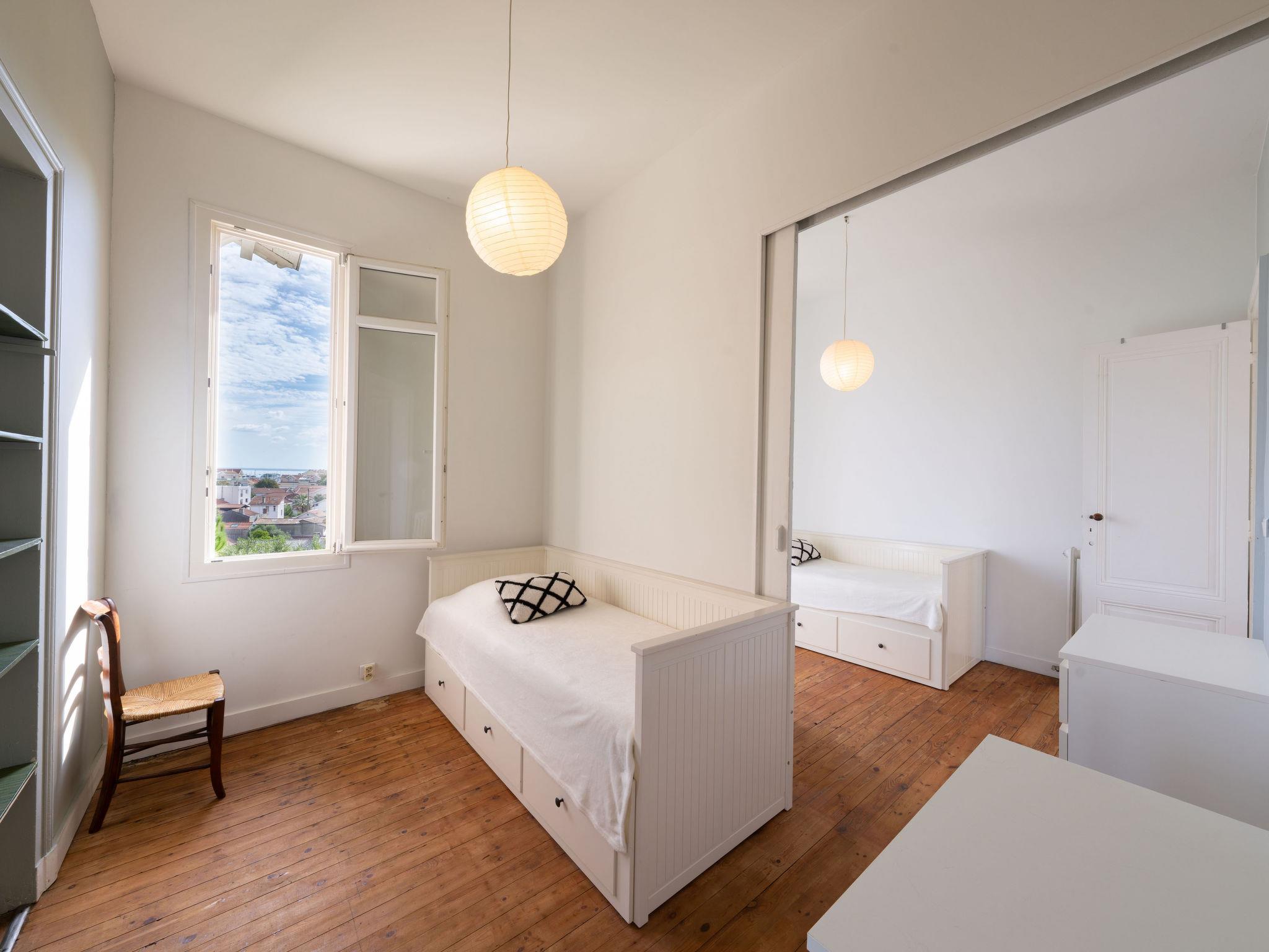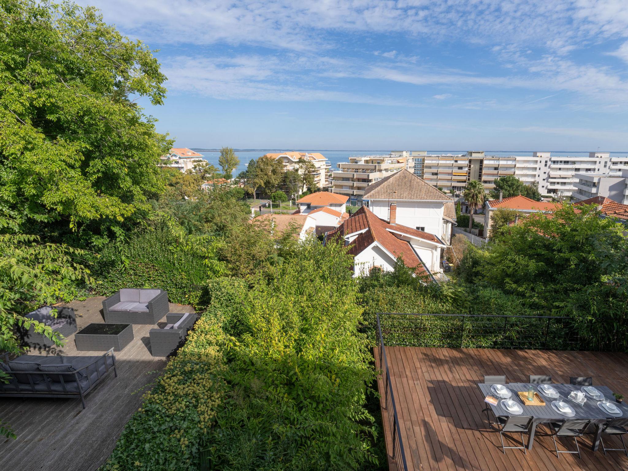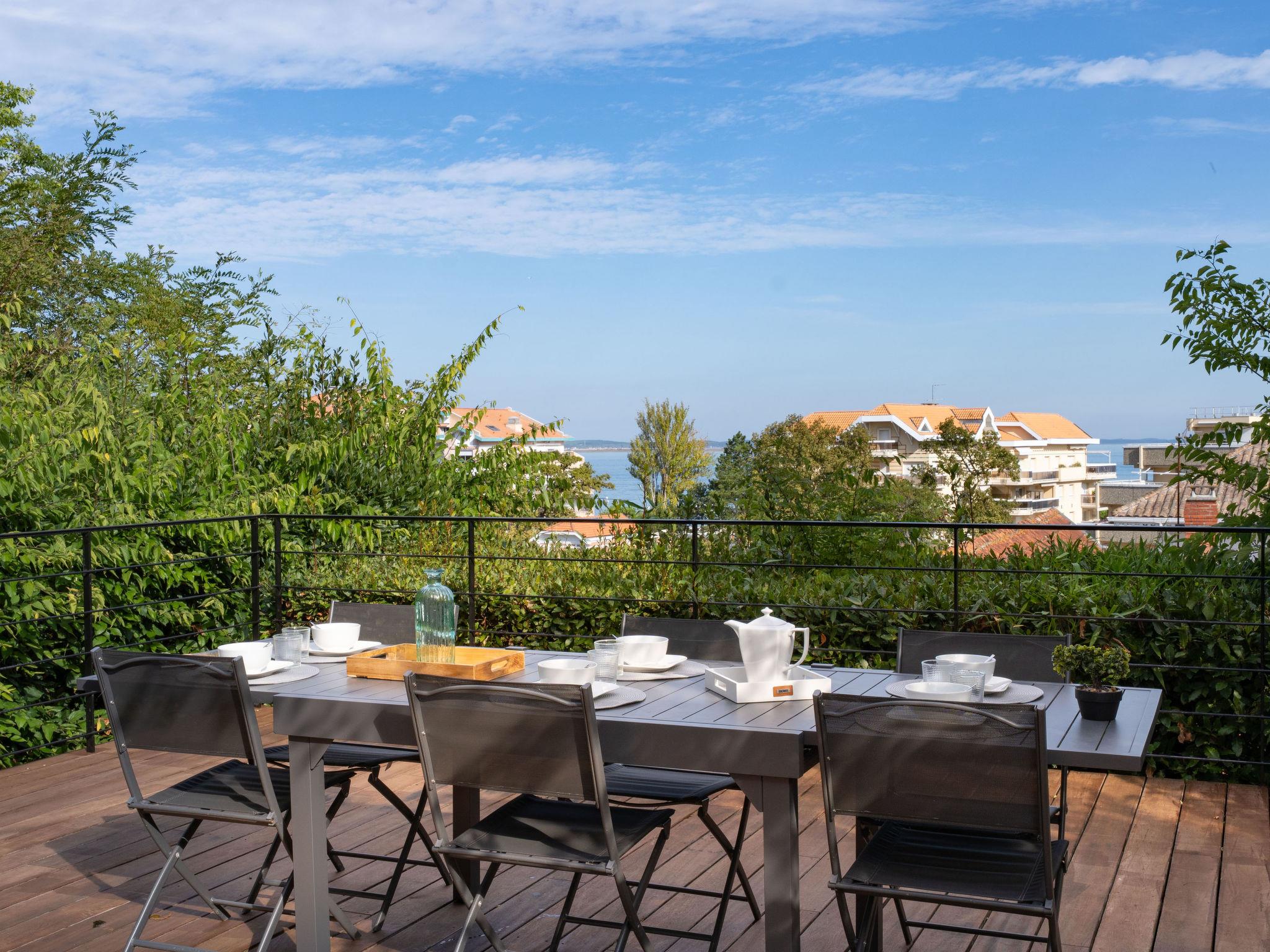 Arcachon: Large single-family house "Miarka", built in 1900. In an elevated position, 230 m from the sea, 230 m from the beach. Parking (for 2 cars). Shop 1.8 km, grocery, supermarket 750 m, shopping centre 3.9 km, restaurant 160 m, bar 750 m, bakery 210 m, café 600 m, bicycle rental 800 m, bus stop "Plage d'Eyrac" 170 m, railway station "Arcachon" 1 km, sandy beach "Plage d'Eyrac" 230 m, park "Mauresque" 1.9 km, diving center 1.5 km, thermal baths "Thalazur" 4.2 km. Sports harbour 2.6 km, golf course (18 hole) 4.8 km. Nearby attractions: Dune du Pyla 11.5 km, Eratopia 9.1 km, Navette Maritime pour le Cap Ferret 2.2 km, Casino 650 m, Marché Municipal 1.1 km, Observatoire Sainte Cécile 2.8 km. Well-known lakes can easily be reached: Lac de la Magdeleine 10.6 km, Lac de Cazaux 18.9 km. The owner does not accept any youth groups. Please note: the keys‘ handover takes place by the agency Interhome in Arcachon, 2 km. The owner lives on the same property. Neighbourhood highly sensitive to noise. Quietness and good behaviour expected.