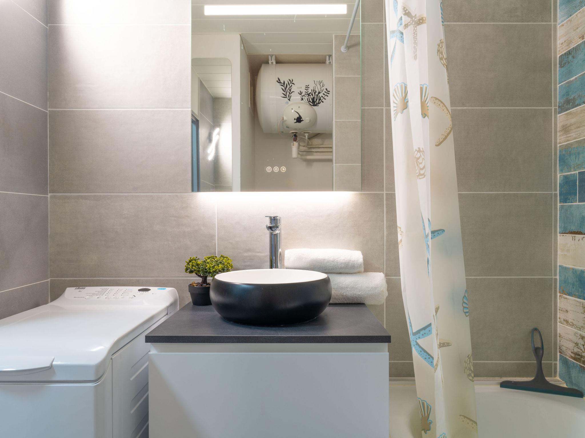 1-room studio 20 m2 on 1st floor. Beautiful and tasteful furnishings: living/dining room with 1 double wall-trunk bed (1 x 140 cm, length 190 cm), TV (flat screen). Exit to the balcony. Open kitchen (2 induction hot plates, toaster, kettle, electric coffee machine). Bath/WC. Electric heating. Balcony 5 m2, north facing position and west facing position. Balcony furniture. Facilities: washing machine, hair dryer. Internet (WiFi, free). Parking space n 1579 (fenced 1 car). Please note: smoke alarm. Offer by a private individual according to Art. 155, IV of CGI. 3300900249409