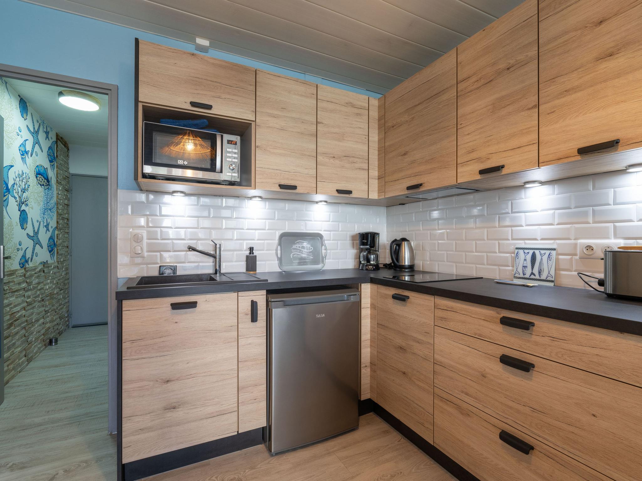 Arcachon: Large residence "Port Arcachon". In the district of d'Aiguillon, 600 m from the sea, 600 m from the beach. For shared use: swimming pool (20 x 9 m, depth 60 - 200 cm, seasonal availability: 15.Jun. - 15.Sep. pool opening hours: 10:30-21:00). In the complex: lift, storage room for bicycles. Shop 1 km, supermarket 900 m, shopping centre 7.3 km, restaurant 100 m, bar 1.8 km, bakery 130 m, café 100 m, bus stop "Aiguillon" 50 m, railway station "Arcachon" 1.9 km, sandy beach "Aiguillon" 600 m, park "Mauresque" 2.7 km, diving center 250 m. Sports harbour 1.6 km, golf course (18 hole) 4.8 km, sailing school 250 m, cycle lane 5 m. Nearby attractions: Eratopia 8.5 km, Arca Jet Marine 250 m, Dune du Pyla 11.6 km, Navette maritime pour le Cap Ferret 1.7 km, Casino 1.7 km, Observatoire Sainte Cécile 2.7 km. Well-known lakes can easily be reached: Lac de la Magdeleine 9.2 km, Lac de Cazaux 17.1 km. Please note: the keys‘ handover takes place by the agency Interhome in Arcachon, 2 km. Additional accommodations can be booked.