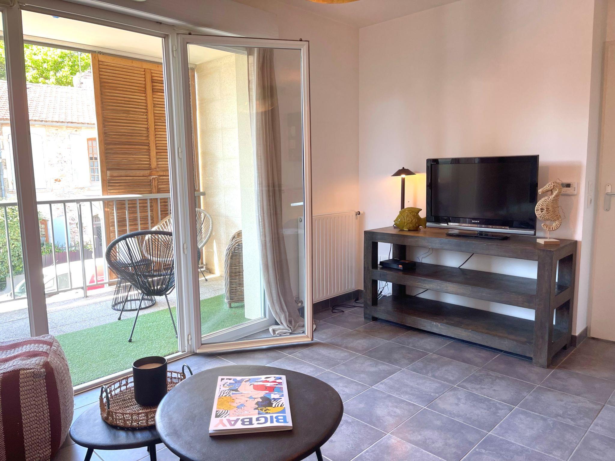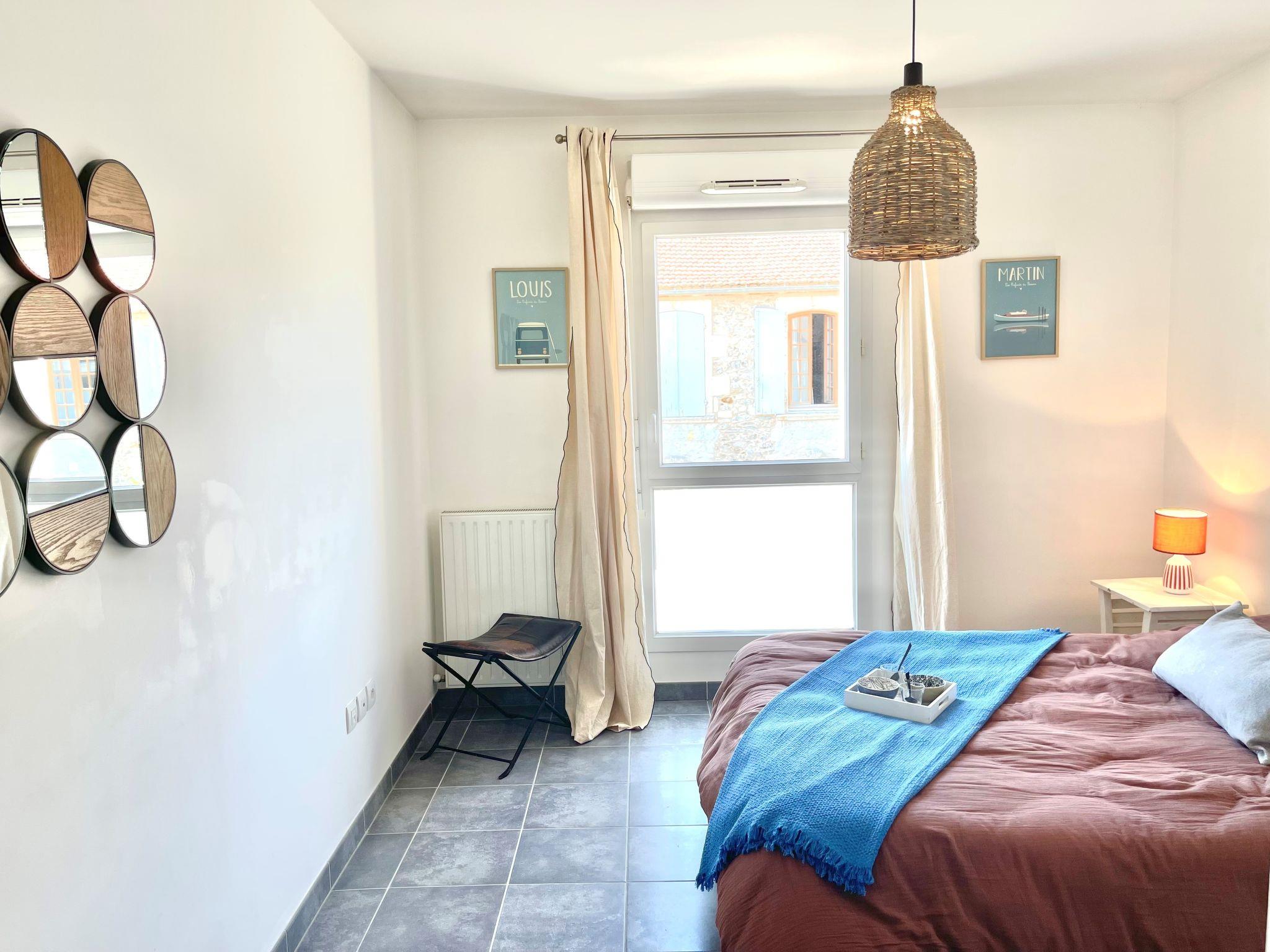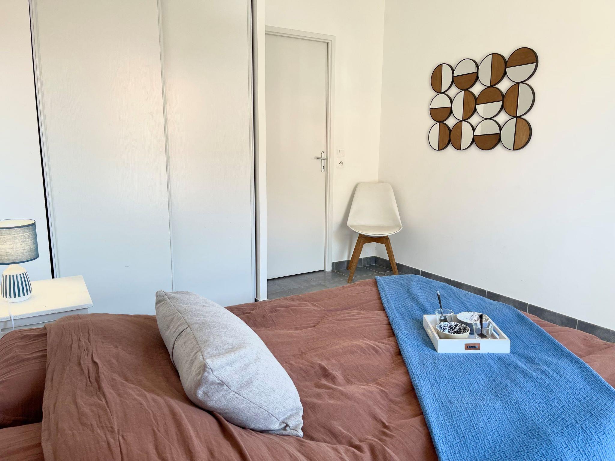 2-room apartment 48 m2 on 1st floor. Beautiful and tasteful furnishings: living/dining room with 1 double sofabed (1 x 140 cm, length 190 cm), TV (flat screen). Exit to the terrace. 1 room with 1 french bed (1 x 140 cm, length 190 cm). Open kitchen (oven, dishwasher, 4 induction hot plates, toaster, kettle, microwave, freezer, electric coffee machine). Shower/WC. Gas heating. Terrace 10 m2, north facing position and west facing position. Terrace furniture. Facilities: washing machine, iron, hair dryer. Internet (WiFi, free). Parking space n 74 (fenced 1 car). Please note: smoke alarm. Offer by a private individual according to Art. 155, IV of CGI. 33529001997F3