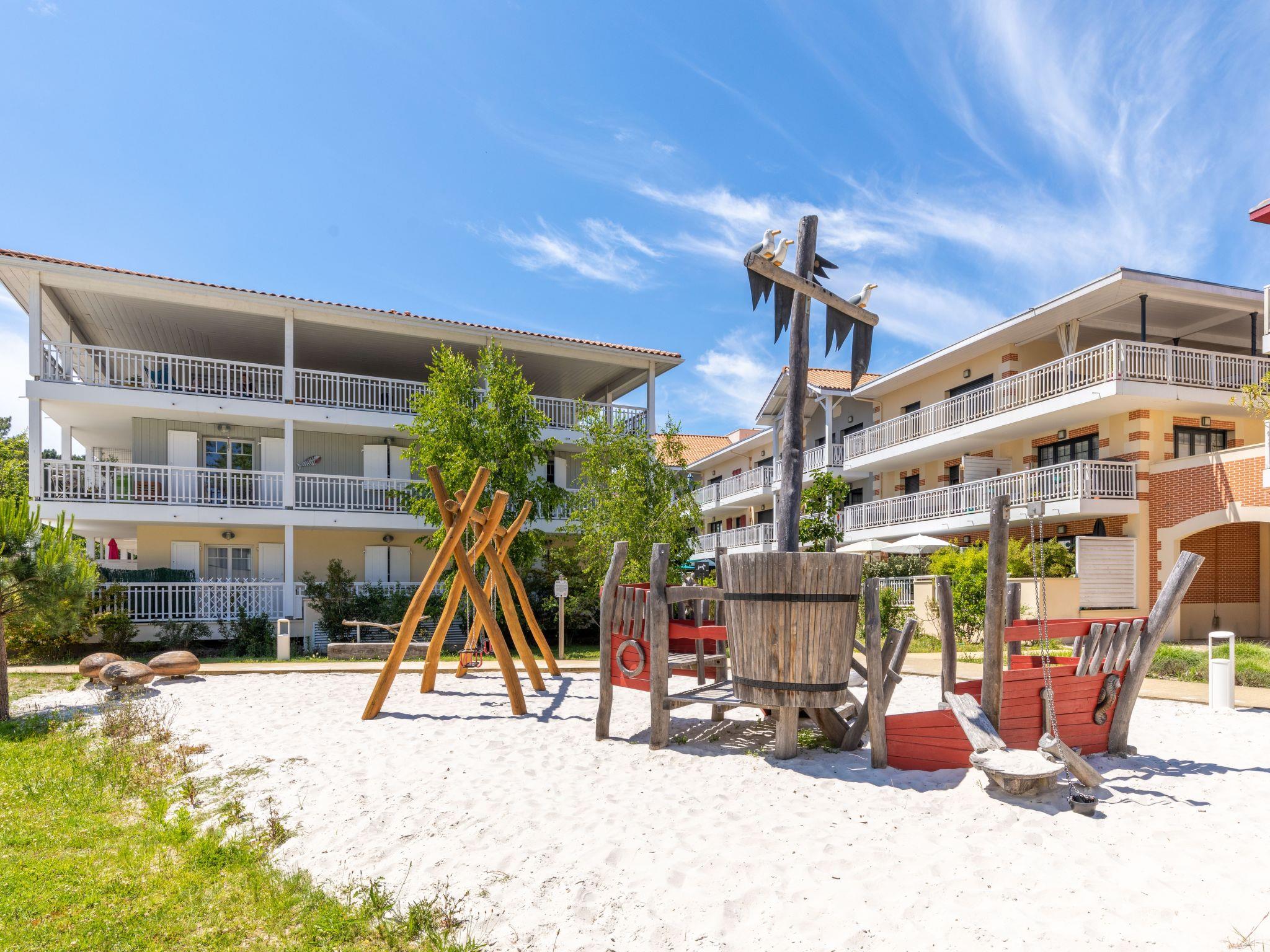 La Teste de Buch 4 km from Arcachon: Beautiful residence "Les Portes de Pyla". 4 km from the sea, 4 km from the beach, in the countryside. For shared use: swimming pool (28 x 8 m, depth 2 - 50 cm, seasonal availability: 01.Jun. - 30.Sep. pool opening hours: 10:00-19:00). Boccia, beach volleyball, children's playground. In the complex: lift, storage room for bicycles. Shop 1.9 km, grocery 200 m, supermarket 2.4 km, shopping centre 1.9 km, restaurant 300 m, bar 4.1 km, bakery 1.9 km, bus stop "Boulevard du Pyla" 600 m, railway station "La Teste de Buch" 2.9 km, sandy beach "Plage du Moulleau" 4 km, park "Mauresque" 3.9 km, thermal baths "Thalazur" 4.2 km. Sports harbour 4.8 km, golf course (18 hole) 1.4 km, surf school 4.5 km, cycle lane 800 m. Nearby attractions: Dune du Pyla 7.1 km, Eratopia 6.8 km, Marché Municipal 2 km, Casino 4.6 km, Navette Maritime pour le Cap Ferret 4.2 km, Réserve Ornithologique du Teich 13.3 km. Well-known lakes can easily be reached: Lac de la Magdeleine 7.5 km, Lac de Cazaux 14 km. The keys‘ handover takes place by the agency Interhome in Arcachon, 4 km. Neighbourhood highly sensitive to noise. Quietness and good behaviour expected.