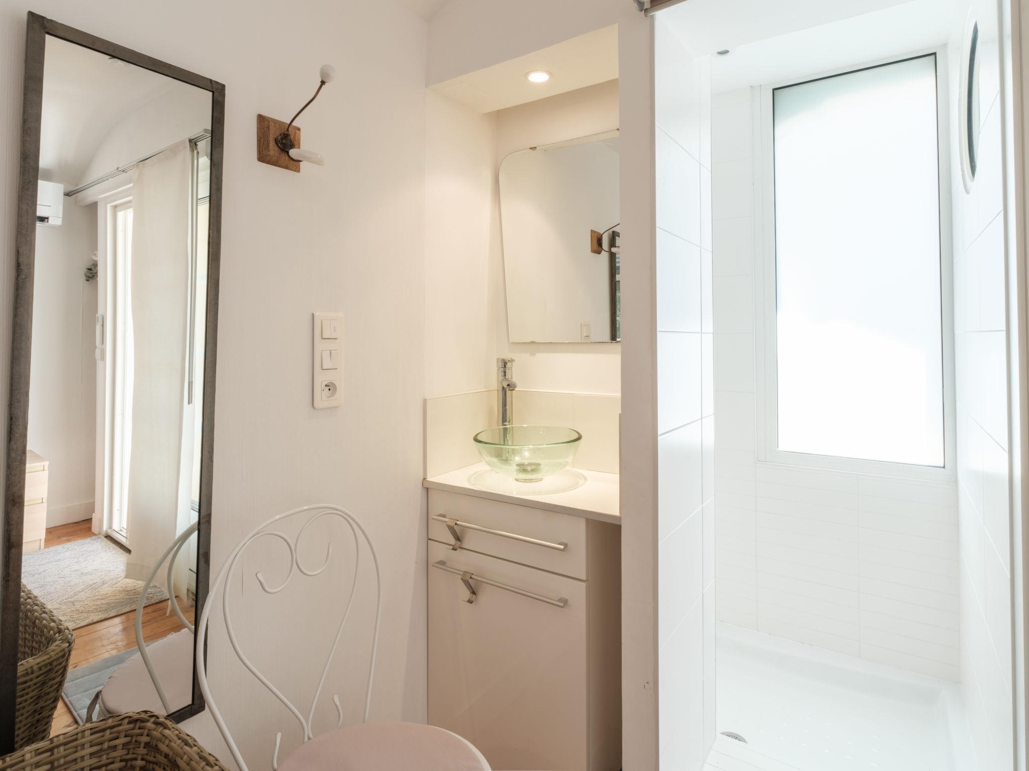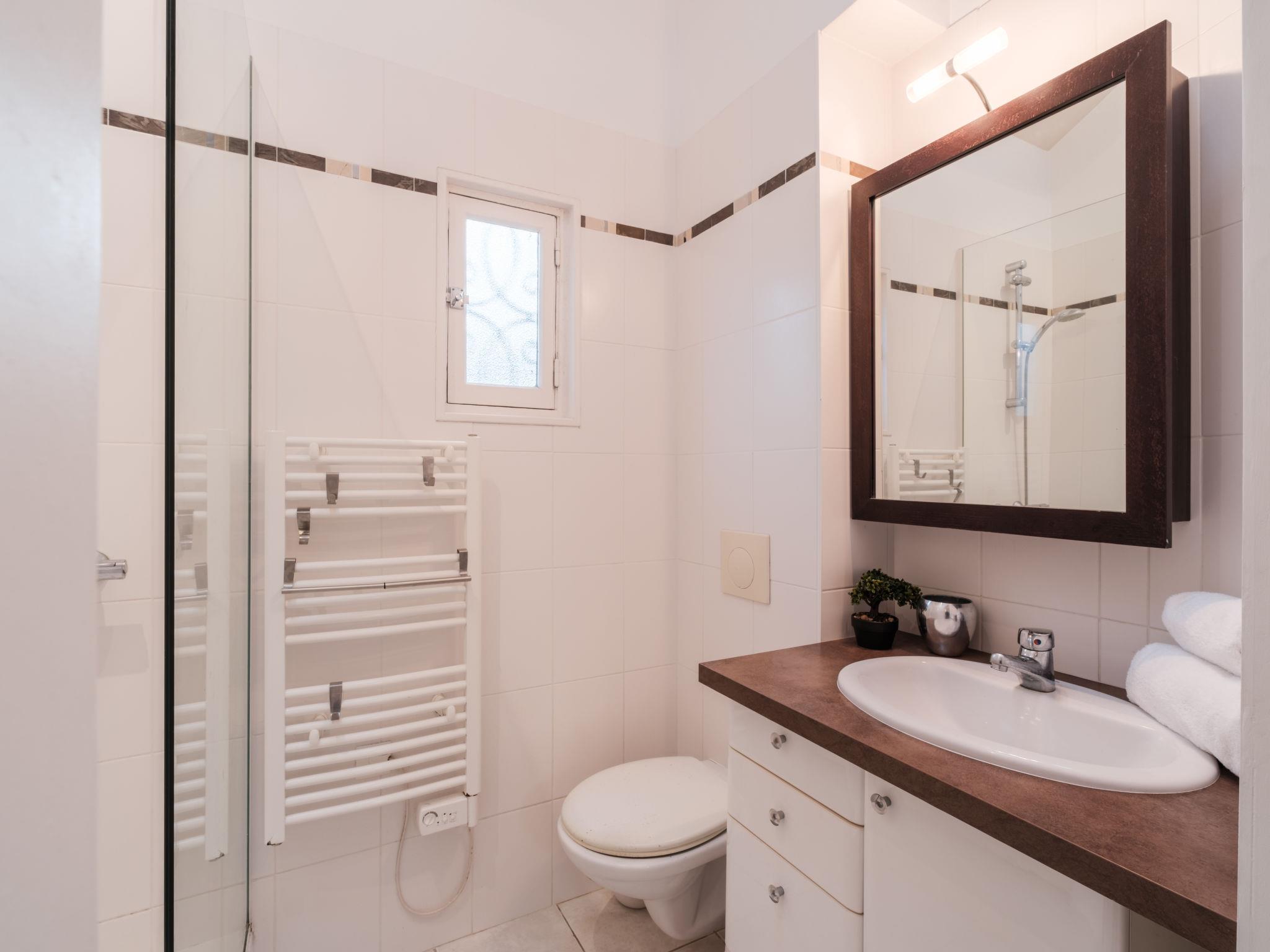3-room house 62 m2 on 2 levels. Comfortable and beautiful furnishings: living/dining room with TV (flat screen), radio and air conditioning. Exit to the terrace. 1 room with 1 french bed (1 x 180 cm). Open kitchen (oven, dishwasher, 4 ceramic glass hob hotplates, toaster, kettle, microwave, freezer, electric coffee machine, Capsules for coffee machine (Nespresso) extra) with bar. Shower/WC. Upper floor: (spiral staircase), 1 room with 2 beds (90 cm, length 190 cm), shower and air conditioning. Exit to the balcony. Electric heating. Terrace 20 m2, south facing position. Terrace furniture, barbecue, deck chairs (1). Facilities: washing machine, iron, baby cot, hair dryer. Internet (WiFi, free). Please note: smoke alarm. Offer by a private individual according to Art. 155, IV of CGI. 33009002282B6