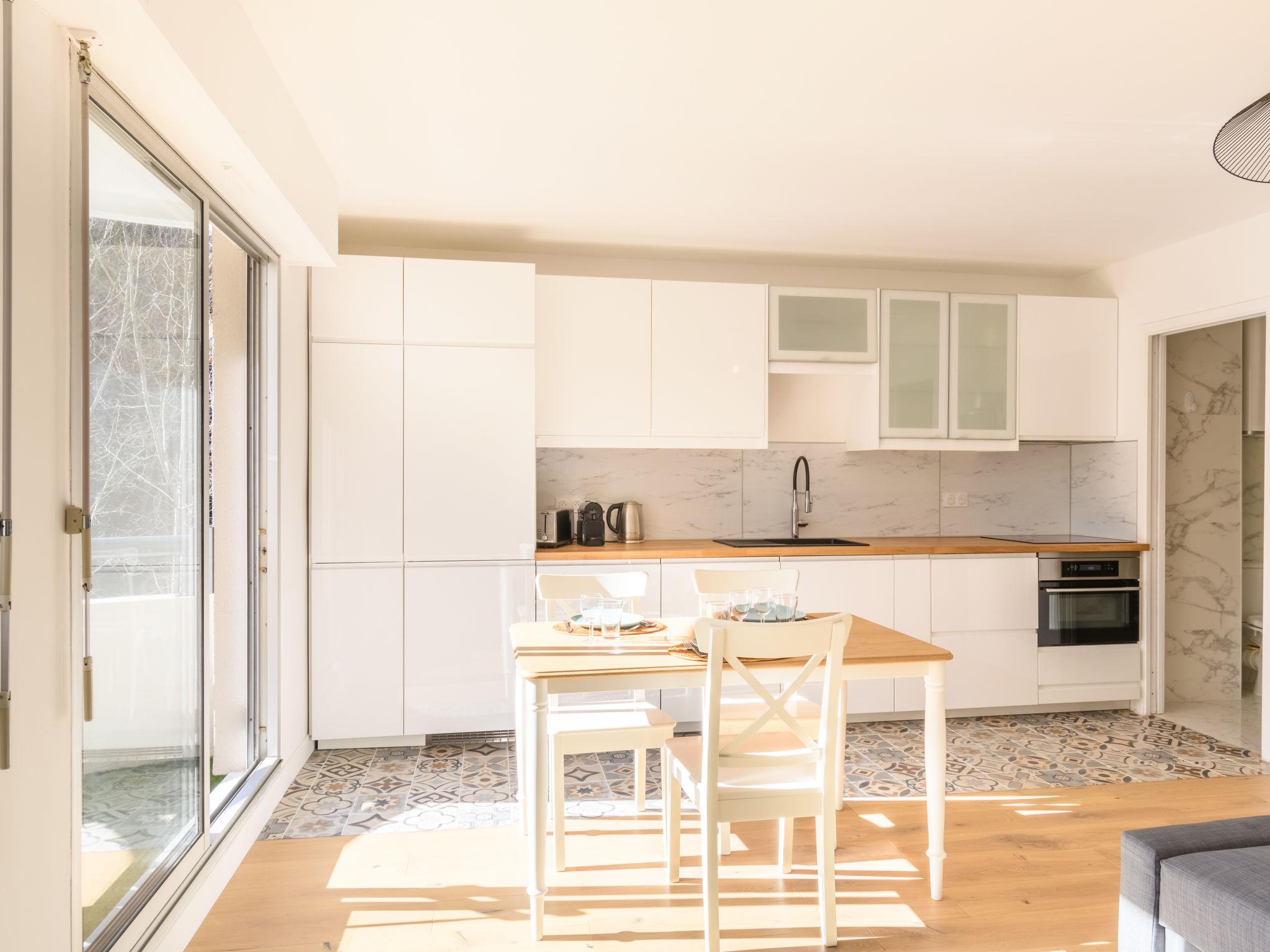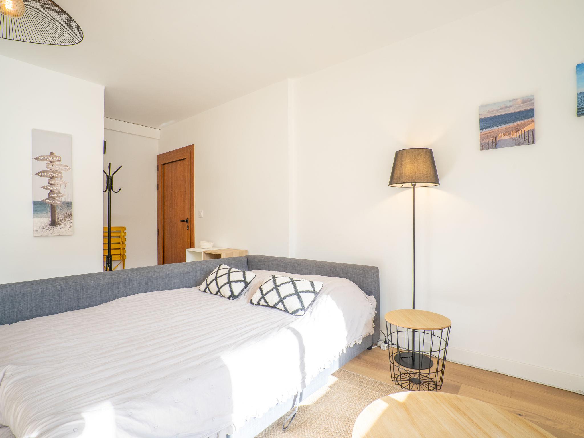 2-room apartment 36 m2 on 4th floor. Beautiful and tasteful furnishings: living/dining room with 1 double sofabed (1 x 140 cm, length 200 cm), TV (flat screen). Exit to the balcony. 1 room with 1 french bed (1 x 140 cm, length 200 cm). Open kitchen (dishwasher, 4 induction hot plates, toaster, kettle, freezer, electric coffee machine, Capsules for coffee machine (Nespresso) extra, combination microwave). Shower/WC. Electric heating. Terrace 6 m2, south facing position. Terrace furniture. Facilities: washing machine, iron, hair dryer. Internet (WiFi, free). Please note: smoke alarm. Offer by a private individual according to Art. 155, IV of CGI. 330090002363D