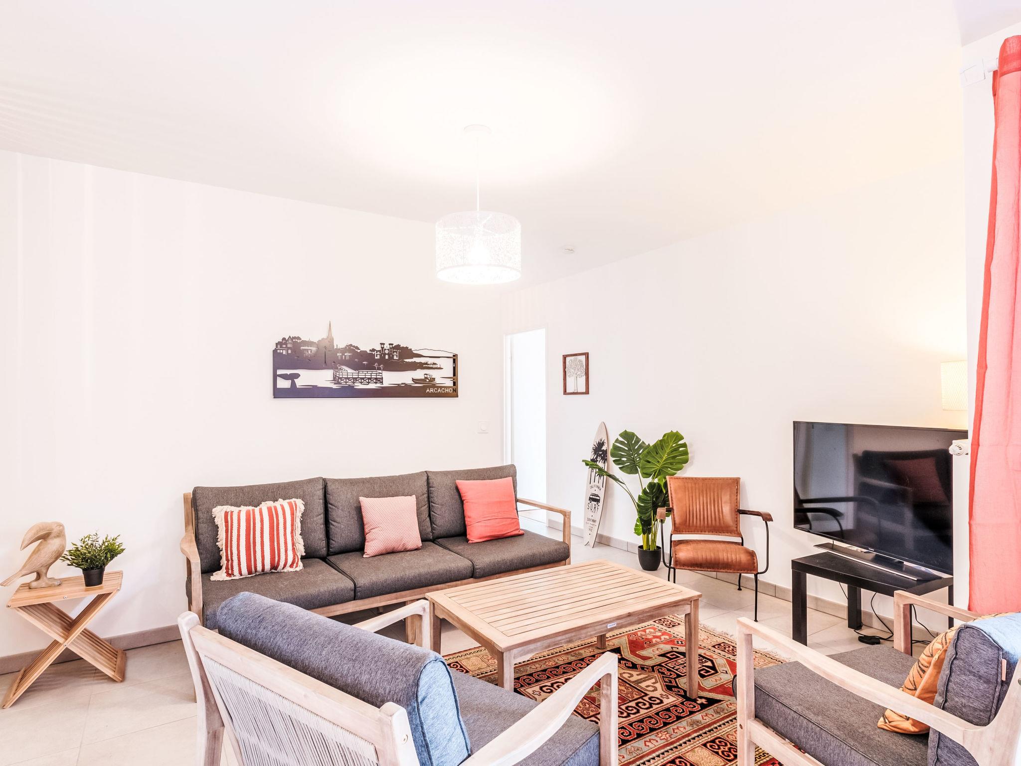 Arcachon: Beautiful residence "Villa Anna", built in 2023. Excellent location: right in the centre but still quiet, from the sea, 240 m from the beach. In the complex: lift. Shop 100 m, grocery, supermarket 150 m, shopping centre 4.4 km, restaurant 100 m, bar 200 m, bakery 150 m, café 100 m, bicycle rental 300 m, bus stop "Centre-ville" 150 m, railway station "Arcachon" 850 m, sandy beach "Thiers" 240 m, park "Mauresque" 600 m, thermal baths "Thalazur" 2.5 km. Sports harbour 4.4 km, golf course (18 hole) 4.4 km. Nearby attractions: Dune du Pyla 11.4 km, Eratopia 10.1 km, Observatoire Sainte Cécile 650 m, Marché Municipal 280 m, Navette Maritime pour le Cap Ferret 500 m, Casino 750 m. Well-known lakes can easily be reached: Lac de la Magdeleine 11.4 km, Lac de Cazaux 18.1 km. The keys‘ handover takes place by the agency Interhome in Arcachon.