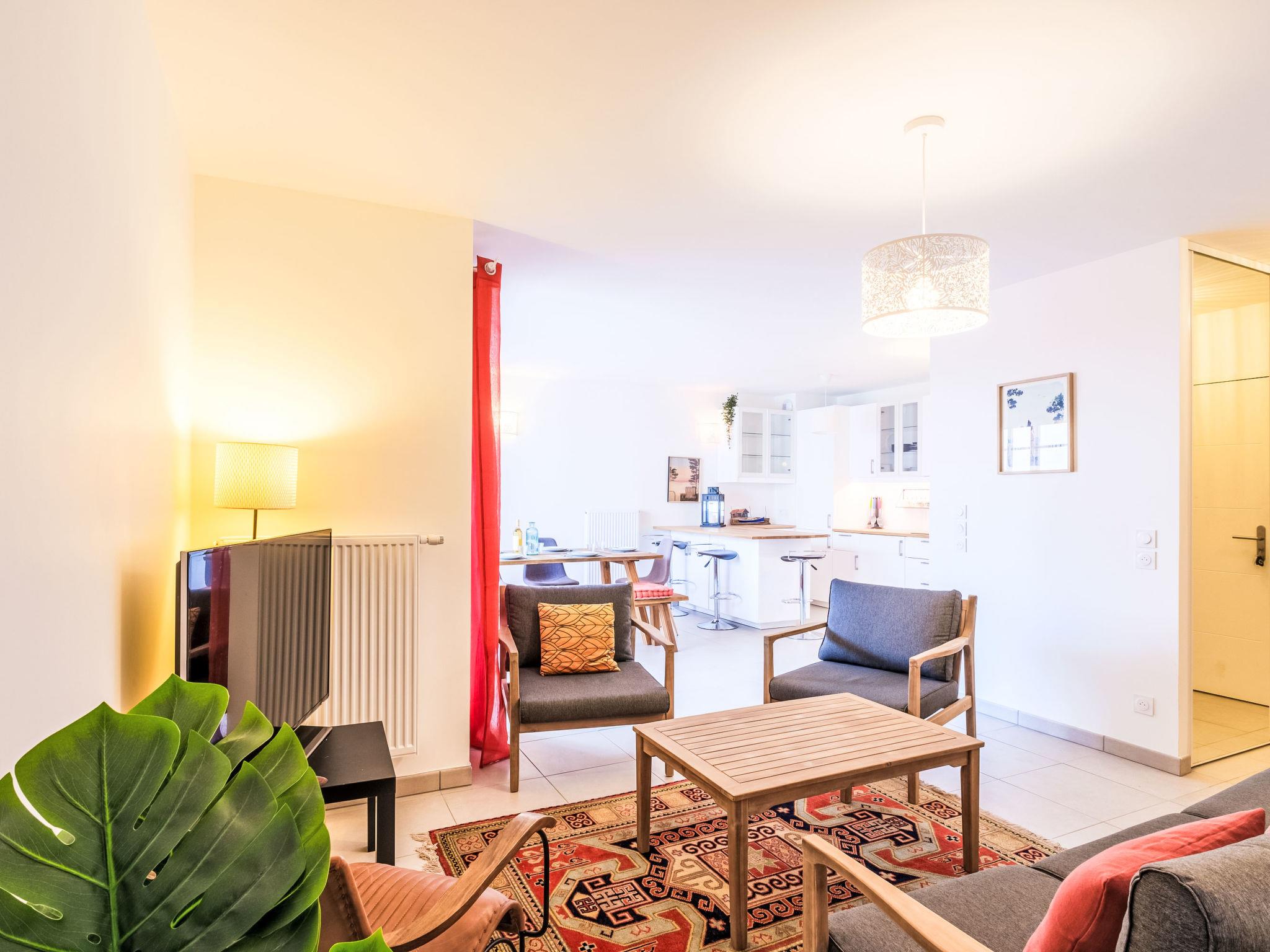 3-room apartment 70 m2 on 1st floor. Beautiful and tasteful furnishings: living/dining room with TV (flat screen). Exit to the terrace. 1 room with 1 french bed (1 x 160 cm, length 190 cm). 1 room with 1 bed (80 cm, length 190 cm), 1 french bed (1 x 140 cm, length 190 cm). Open kitchen (oven, dishwasher, 4 induction hot plates, toaster, kettle, microwave, electric coffee machine, Capsules for coffee machine (Dolce Gusto) extra). Shower, sep. WC, double hand-basin. Gas heating. Terrace 8 m2, north facing position. Terrace furniture. Facilities: washing machine, dryer, hair dryer. Internet (WiFi, free). Parking space n 1 (roofed, fenced 1 car). Please note: smoke alarm. Offer by a private individual according to Art. 155, IV of CGI. 330090022623E