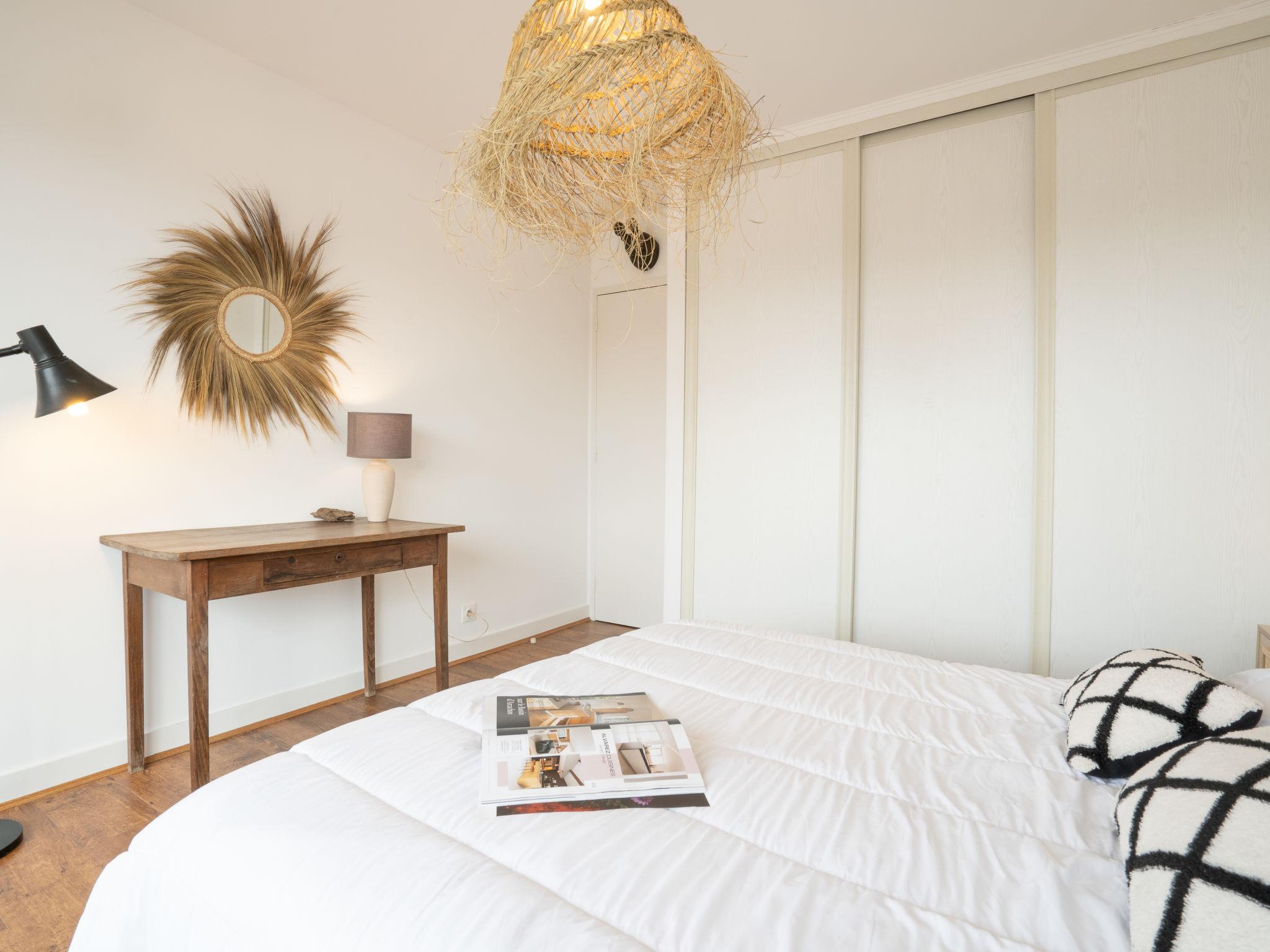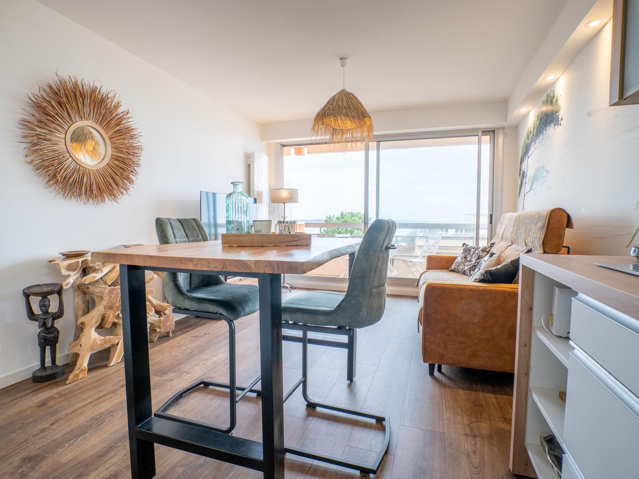 2-room apartment 45 m2 on 2 levels on 6th floor. Renovated in 2023, beautiful and tasteful furnishings: living/dining room with 1 double sofabed (1 x 140 cm, length 190 cm), TV (flat screen). Exit to the balcony, north facing position. Open kitchen (oven, 3 induction hot plates, toaster, kettle, microwave, electric coffee machine, Capsules for coffee machine (Senseo) extra). Upper floor: 1 room with 1 french bed (1 x 160 cm, length 200 cm). Exit to the balcony, south facing position. Shower/WC. Electric heating. Small balcony 5 m2, north facing position, small balcony 5 m2, south facing position. Balcony furniture. Very beautiful view of the sea. Facilities: washing machine, iron, hair dryer. Internet (WiFi, free). Parking space n 48 (1 car). Please note: smoke alarm. Offer by a private individual according to Art. 155, IV of CGI. 3300900086404