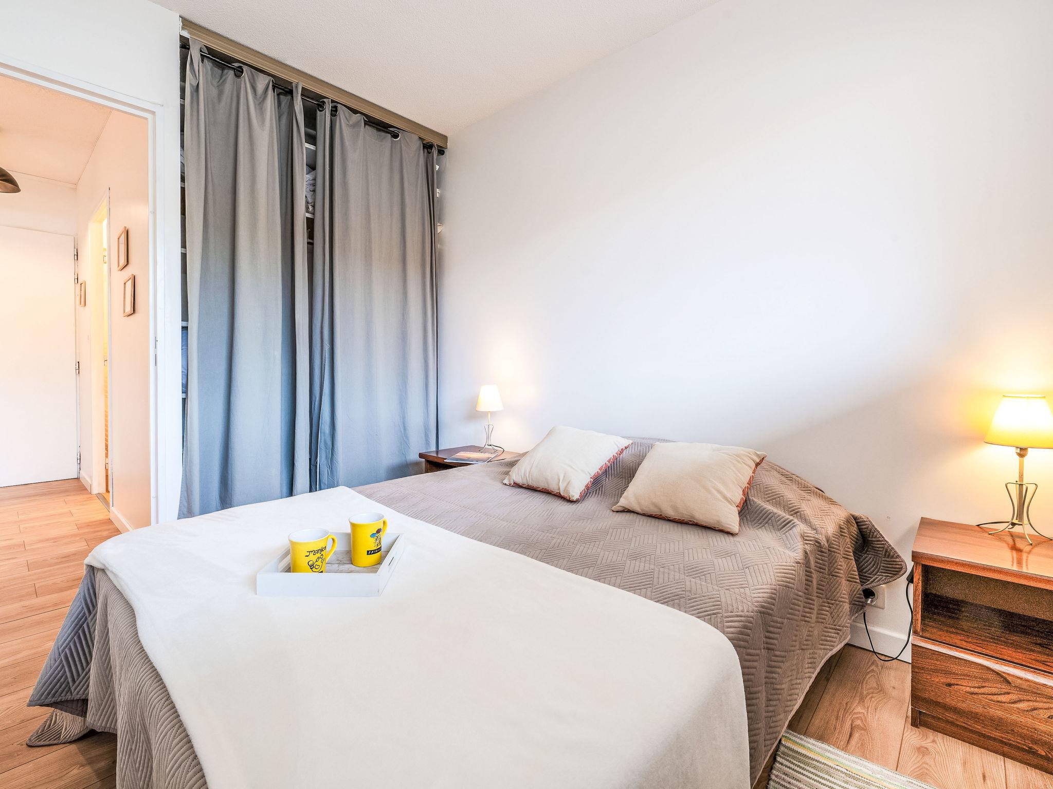 Arcachon: Residence "Plein Soleil". In a central, busy position, 300 m from the sea, from the beach. In the complex: lift. Shop 600 m, grocery 200 m, shopping centre 9.4 km, bar, bakery, café, pedestrian zone 600 m, 10 minute walk to the centre, bus stop "Rue Baleste Guilhem" 90 m, railway station "Arcachon" 950 m, sandy beach "Jetée des Marins" 300 m, park "Mauresque" 1.2 km. Sports harbour 4.6 km, golf course (18 hole) 4 km, surf school 3.3 km, cycle lane 150 m. Nearby attractions: Eratopia 10 km, ArcaJetMarine 3.5 km, Dune du Pyla 9 km, Navette maritime pour le Cap Ferret 1.1 km, Casino 1.7 km, Observatoire Sainte Cécile 1 km. Well-known lakes can easily be reached: Lac de la Magdeleine 11.5 km, Lac de Cazaux 19.2 km. Please note: the keys‘ handover takes place by the agency Interhome in Arcachon. Additional accommodations can be booked.
