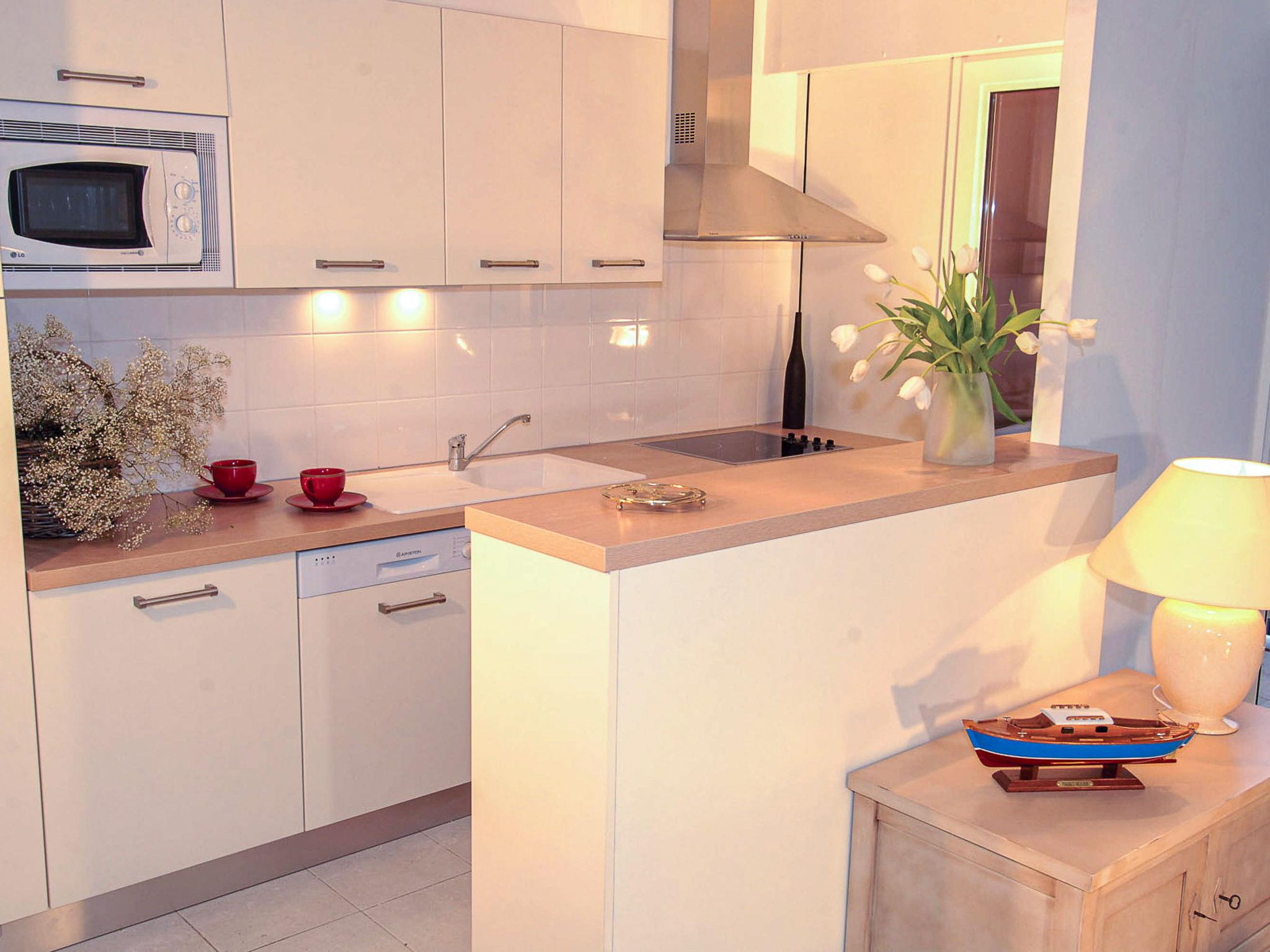 "Villa d'Este 224", 2-room apartment 48 to 62 m2. Beautiful and cosy furnishings: living/sleeping room with 1 double sofabed, dining table and TV. Exit to the balcony. 1 room with 1 french bed. Kitchenette (oven, dishwasher, 4 ceramic glass hob hotplates, toaster, kettle, microwave, freezer, electric coffee machine). Bathroom, sep. WC. Electric heating. Balcony. Balcony furniture, box-room. Facilities: washing machine, dryer, children's high chair, baby cot (extra). Internet (WiFi, extra). Parking (1 car). Please note: non-smokers only. Maximum 2 pets/ dogs allowed. Smoke alarm, fire extinguisher.