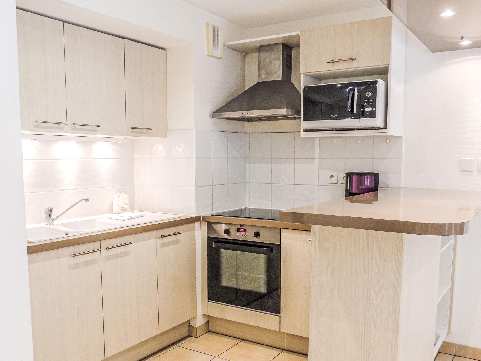 Beautiful residence "Le Jardin Mauresque". 13 apartments in the residence. 200 m from the centre of Arcachon, 5 km from the centre of La Teste-de-Buch, 70 km from the centre of Bordeaux, in a central position, 500 m from the sea. In the complex: reception, WiFi, lift. Roofed, parking (extra). Shop 200 m, supermarket 300 m, restaurant, café, pedestrian zone 200 m, bus stop "Ligne 3" 550 m, sandy beach "Bassin d'Arcachon" 500 m. Golf course (18 hole) 5 km. The photo is just an example. The holiday properties may differ in living space, floorplan, equipment and furnishing.