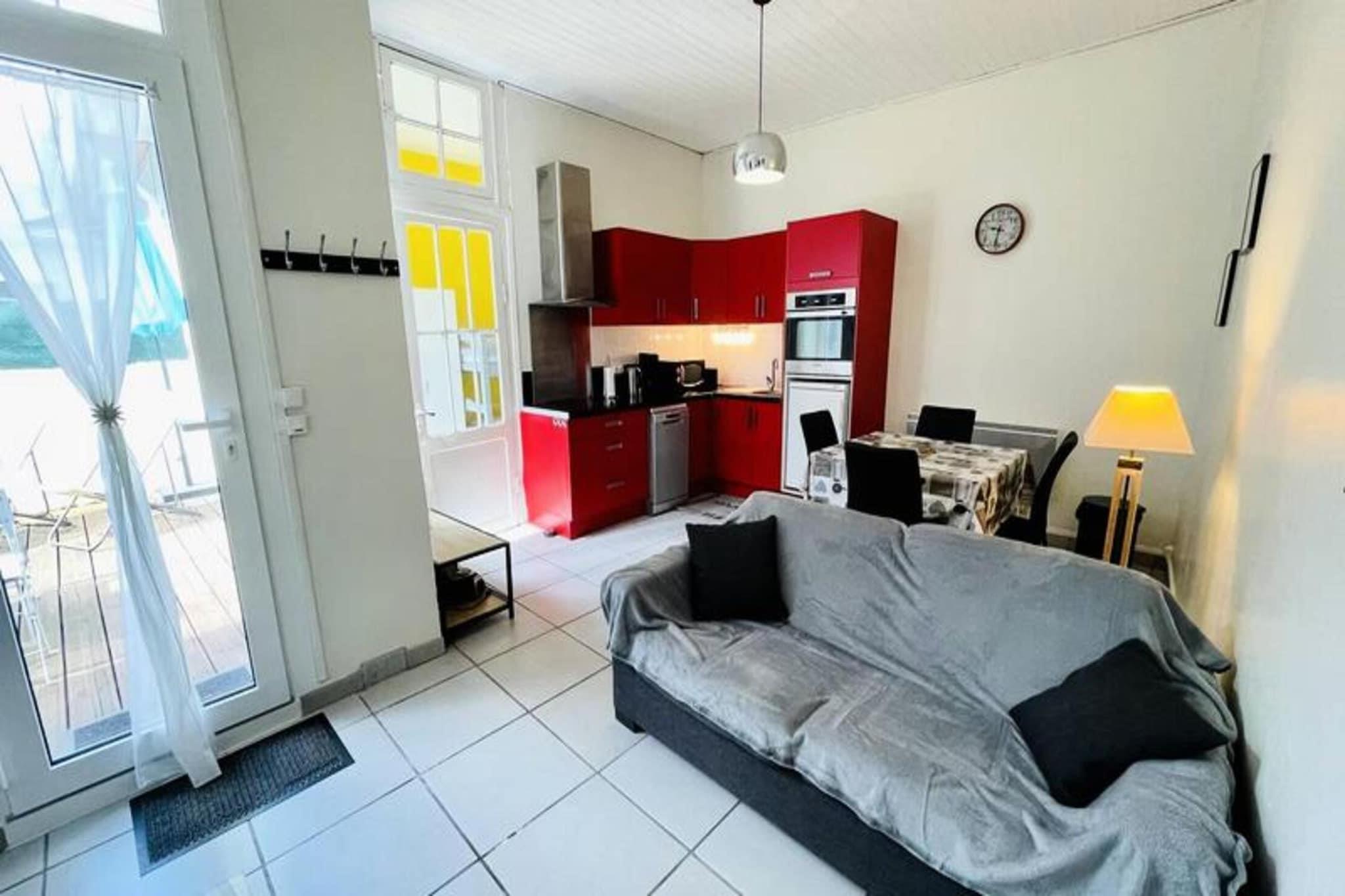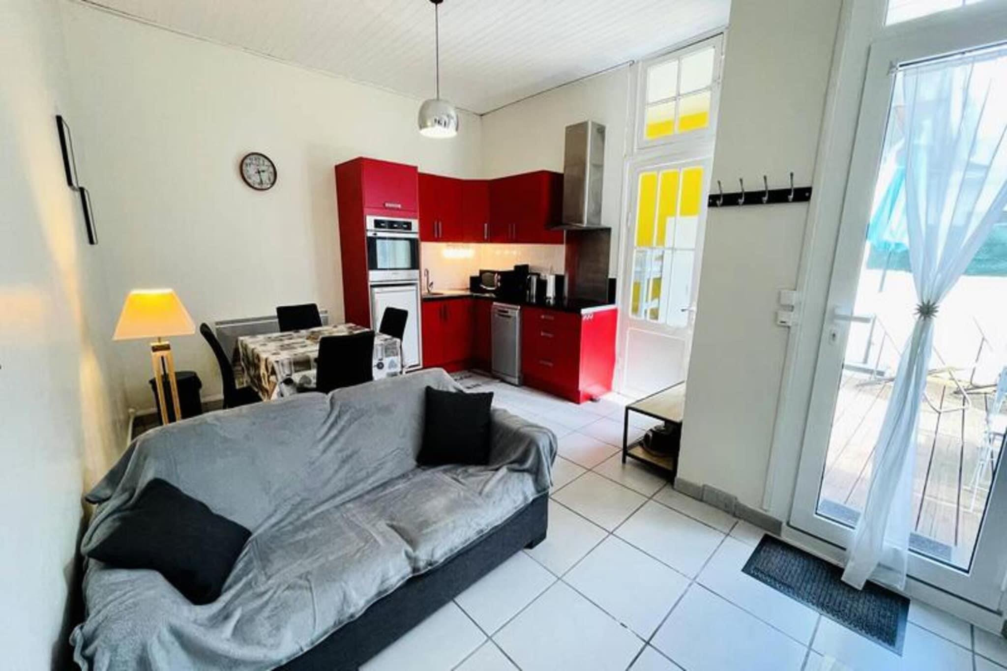 Beliggende kun 230 meter fra stranden og 400 meter fra den fantastiske Notre-Dame-basilika, tilbyder dette charmerende hus på 42 m² et hyggeligt tilflugtssted for op til 5 gæster. Gemt væk bag en traditionel bygning, har den to små soveværelser, en indbydende stue med en 140 cm sovesofa og tv samt en fuldt udstyret spisestue og køkken. Køkkenet indeholder et køleskab med fryser, traditionel ovn, mikroovn, opvaskemaskine, vitro kogeplader og emhætte, der giver alt det nødvendige for komfortabel selvforplejning. Det første soveværelse, der er adgang fra terrassen og vender mod syd, byder på to 90 cm køjesenge og en vaskemaskine. Det andet soveværelse, med en 140 cm seng, vender mod øst og er bekvemt placeret ved siden af ??badeværelset med toilet. Træd udenfor for at nyde en 18 m² stor terrasse med havemøbler og en grill, perfekt til at slappe af og spise udendørs. Huset har også et mobilt klimaanlæg og fiberoptisk Wi-Fi, hvilket sikrer komfort og forbindelse under dit ophold. Gratis parkering på gaden er tilgængelig, og ejendommen ligger kun en kort gåtur fra vigtige faciliteter: en Monoprix-butik ligger 260 meter derfra, et kommunalt marked er 600 meter væk, og SNCF-togstationen ligger 10 minutters gang (1 km). Nærliggende attraktioner omfatter den maleriske Arcachon-strand, den ikoniske Notre-Dame-basilika og byens travle markedsområder. Nyd det bedste af Arcachon med dette centralt beliggende og veludstyrede hjem.