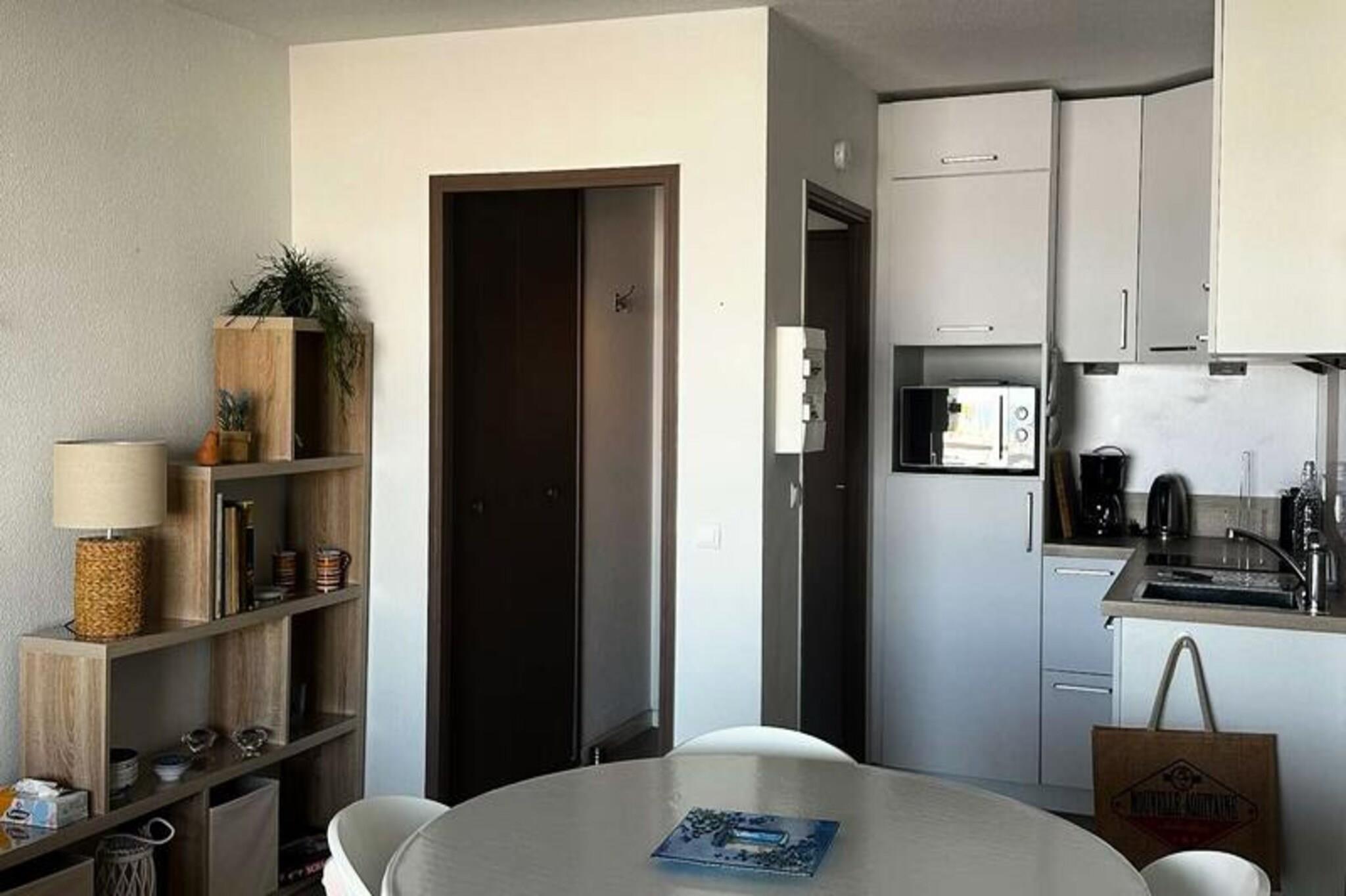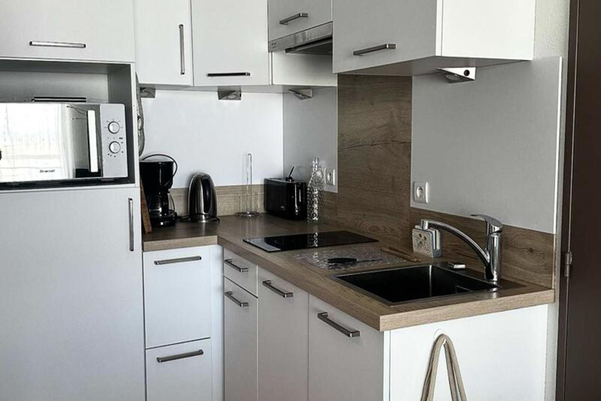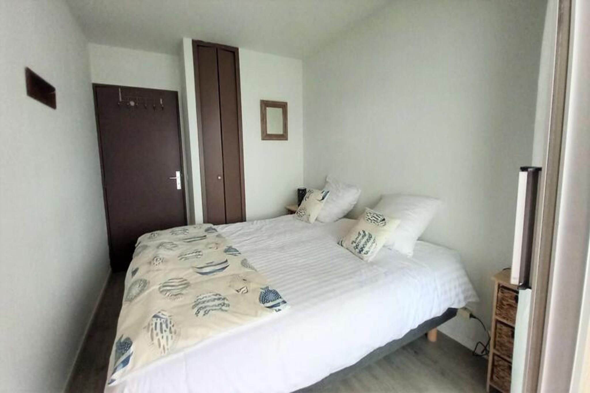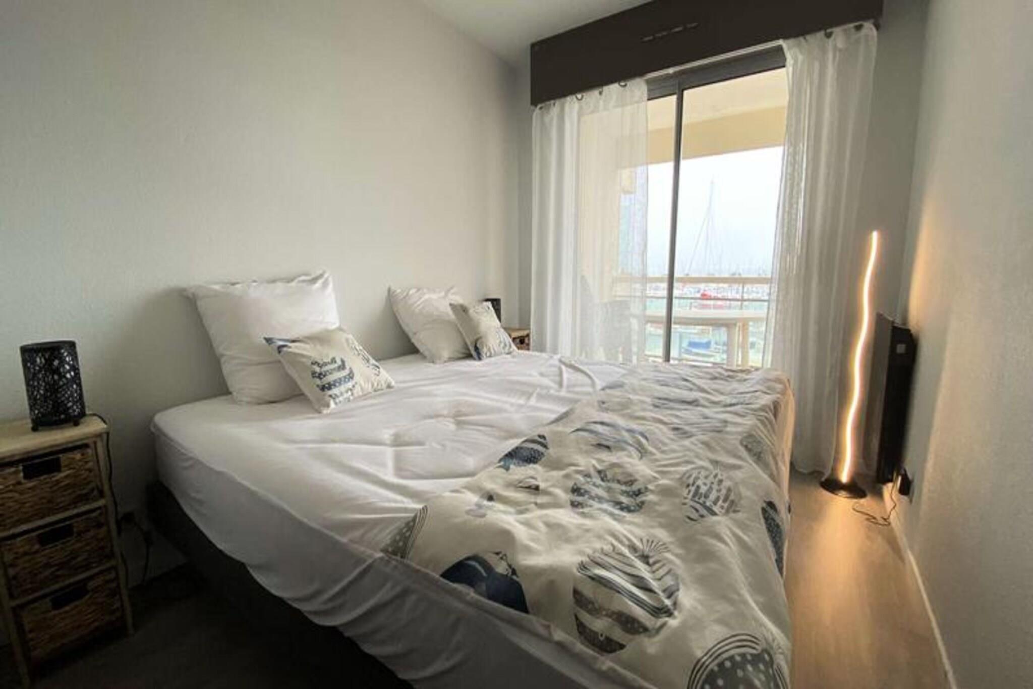 Med en fantastisk udsigt over bugten tilbyder denne charmerende lejlighed med et soveværelse en rolig oase for op til fire gæster. Beliggende på anden sal i en sikker bolig med elevatoradgang, kombinerer den komfort og bekvemmelighed kun få skridt fra stranden og marinaen. Forestil dig at vågne op til den blide lyd af bølger og nyde en morgenkaffe på balkonen, mens havbrisen fylder luften - en perfekt start på din dag ved kysten. \n\nLejligheden er 38 m² stor og har en indbydende entré med rigelig opbevaringsplads. Den lyse og rummelige stue er udstyret med en komfortabel 140 cm sovesofa, fladskærms-tv, Wi-Fi og et spisebord til fire. Det åbne køkken er fuldt udstyret med moderne apparater, herunder køleskab/fryser, keramisk kogeplade, mikrobølgeovn/ovn, opvaskemaskine og mere, hvilket gør det nemt at tilberede måltider efter en dag med udforskning. Soveværelset tilbyder fleksible sovearrangementer med to 90 cm senge, der kan sættes sammen til en 180 cm dobbeltseng, sammen med et klædeskab til dine ejendele. Badeværelset er udstyret med bruseniche, håndvask, håndklædetørrer, vaskemaskine og toilet.\n\nTræd udenfor for at opleve det smukke omkringliggende område. Den nærliggende cykelsti løber langs havet og inviterer dig til at tage afslappende ture, mens du nyder kystlandskabet. Lejlighedens beliggenhed er ideel for dem, der søger både afslapning og eventyr, med stranden og lystbådehavnen kun en kort gåtur væk. Uanset om du dyrker vandsport, spiser på restauranter ved havet eller udforsker lokale butikker, er alt hvad du behøver inden for rækkevidde.\n\nDenne lejlighed er perfekt til par eller små familier og tilbyder en blanding af moderne komfort og kystcharme, hvilket sikrer et mindeværdigt ophold ved bugten. Book din ferie i dag og oplev roen ved livet ved havet.