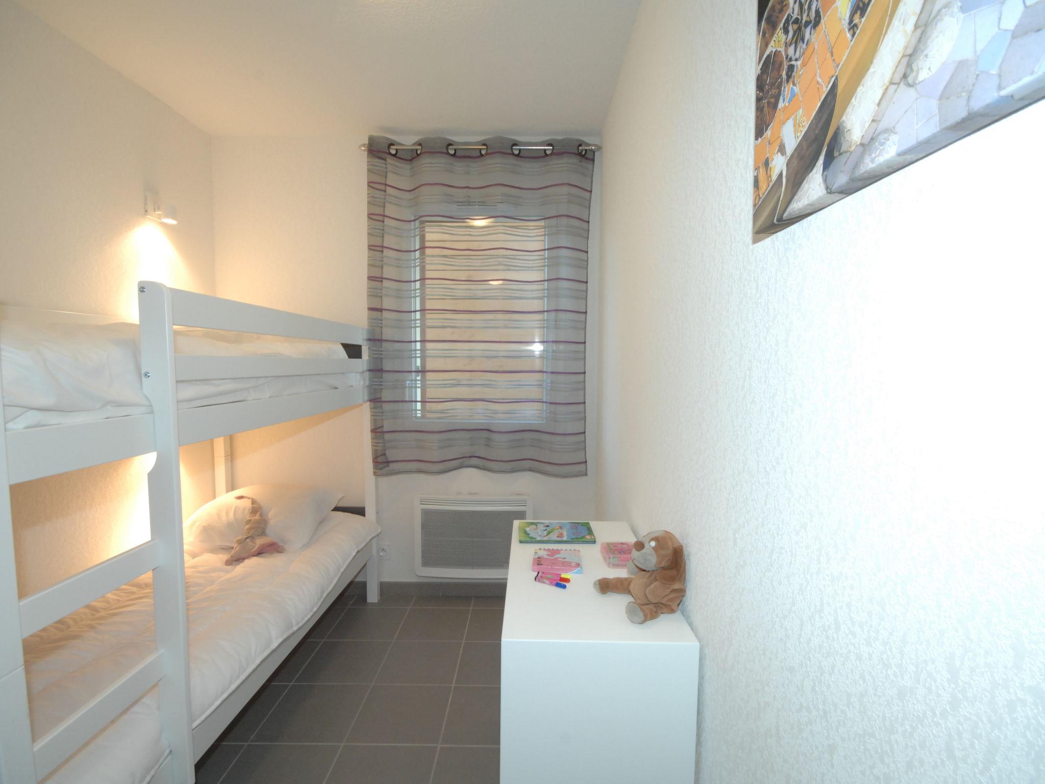 "Demeures de la Massane", 2-room terraced house 40 m2 on 2 levels. Bright, modern furnishings: living/sleeping room with 1 double sofabeds, dining table and TV. Kitchenette (dishwasher, 2 ceramic glass hob hotplates, toaster, kettle, microwave, electric coffee machine). Upper floor: 1 room with 1 double bed. Alcove with 1 x 2 bunk beds. Bath or shower/WC. Electric heating. Terrace. Terrace furniture. Facilities: Internet (WiFi). Please note: maximum 1 pet/ dog allowed. Smoke alarm, fire extinguisher. Instead of an enclosed bedroom, some sleeping areas are located in an open-plan area (gallery, alcove, etc.).