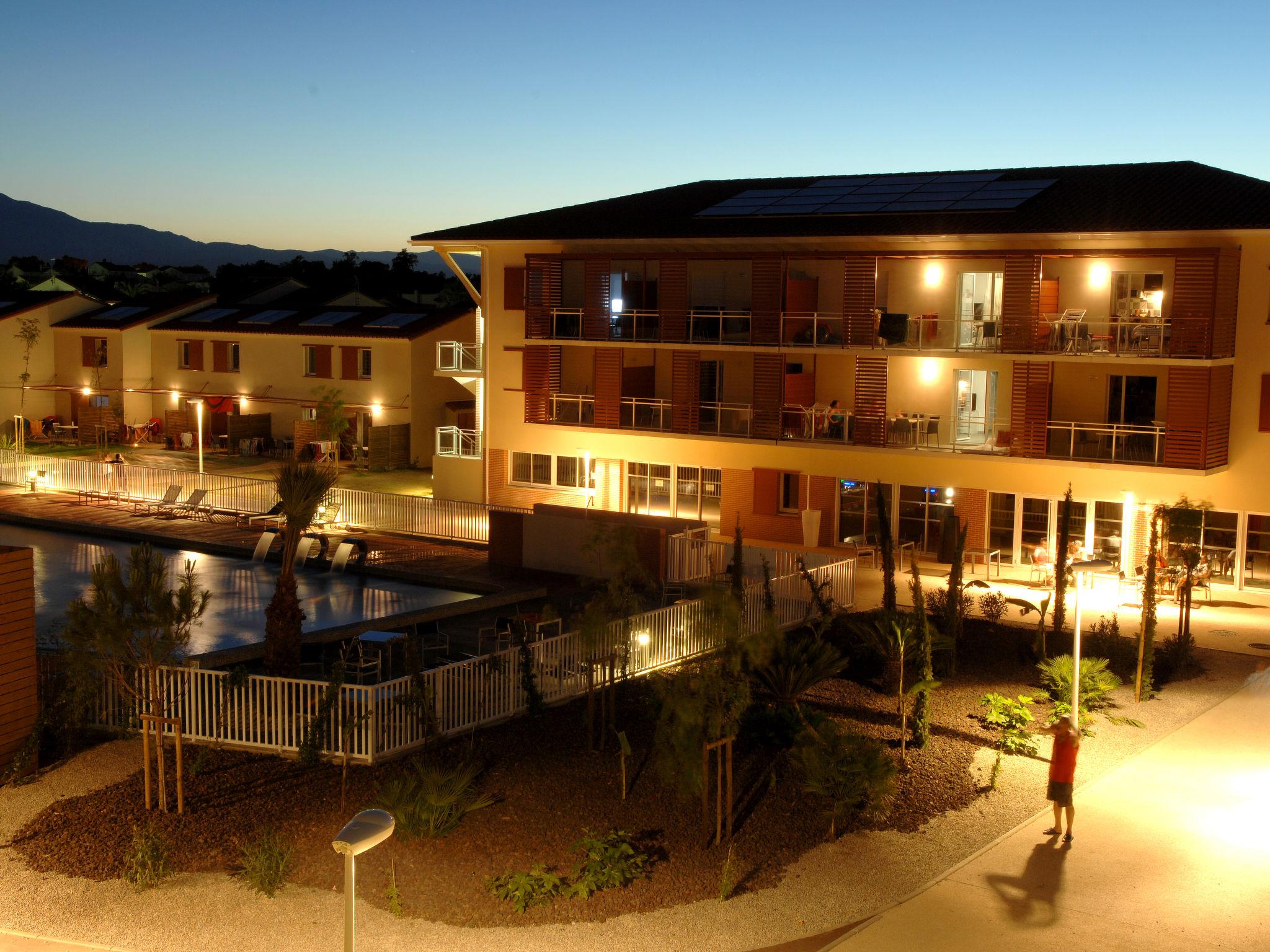 Resort "Les Demeures de la Massane", 3 storeys. 190 apartments in the residence. On the outskirts, 1.5 km from the centre of Argelès-sur-Mer, 2.4 km from the centre of Argelès-Plage, 2.4 km from the sea. For shared use: property (fenced), garden, swimming pool fenced (500 m2, seasonal availability: 12.Apr. - 30.Sep.) with internal staircase. Children's pool, boccia. In the complex: reception, WiFi, sauna (extra). Fitness room, washing machine (for shared use, extra). Bread roll service (extra). Central parking spaces. Shop 1.5 km, bus stop 1 km, sandy beach 2.4 km. Nearby attractions: Perpginan 22 km. Please note: car-free holiday complex. Entertainment in the season. Residence with electric gates. The photograph shows a typical example. The holiday properties may differ in living space, floorplan, equipment and furnishing.