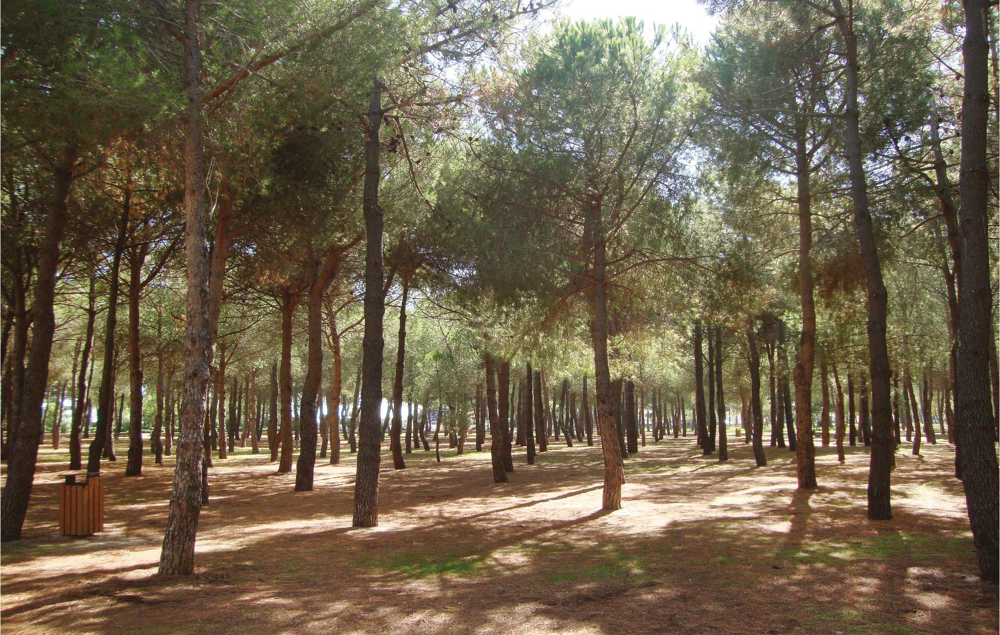 Tilbring afslappende dage i denne enkle ferielejlighed med altan i udkanten af en pinjeskov.
