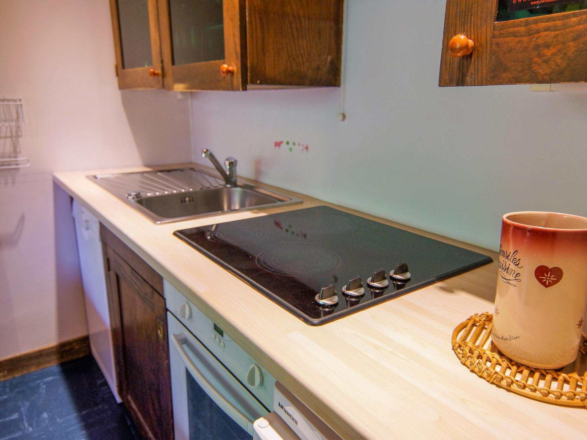 2-room apartment 35 m2 on 2 levels on 2nd floor. Living/dining room with TV. Exit to the balcony. Kitchenette (oven, dishwasher, 4 ceramic glass hob hotplates, kettle, microwave, electric coffee machine). Sep. WC. Upper floor: 1 room with 1 french bed (140 cm, length 190 cm). Alcove with 1 x 2 bunk beds (90 cm, length 190 cm). Bathroom. Electric heating. Balcony, west facing position. Beautiful view of the mountains. Facilities: Internet (WiFi, extra). Please note: TV only FR. Smoke alarm. Instead of an enclosed bedroom, some sleeping areas are located in an open-plan area (gallery, alcove, etc.). 0306330748045