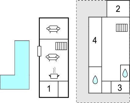 Soveværelse 14m2 (nr. 4) - 1 Soveplads. (Enkeltseng(e)). 2 Sovepladser. (Dobbeltseng(e)).