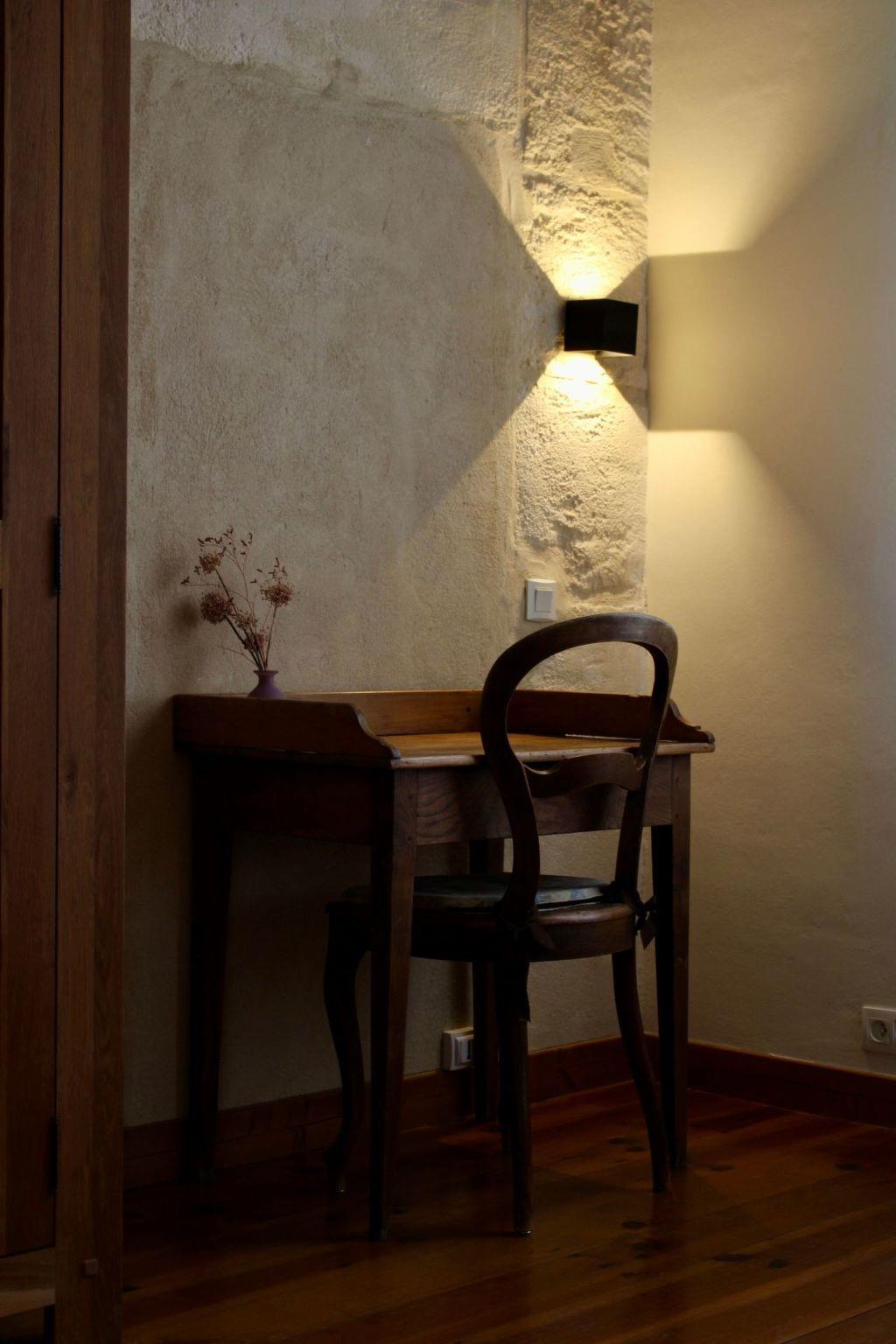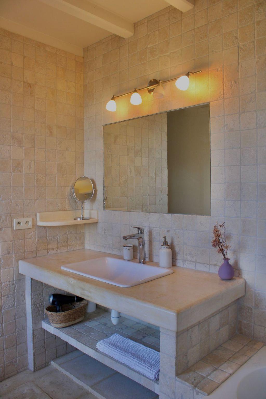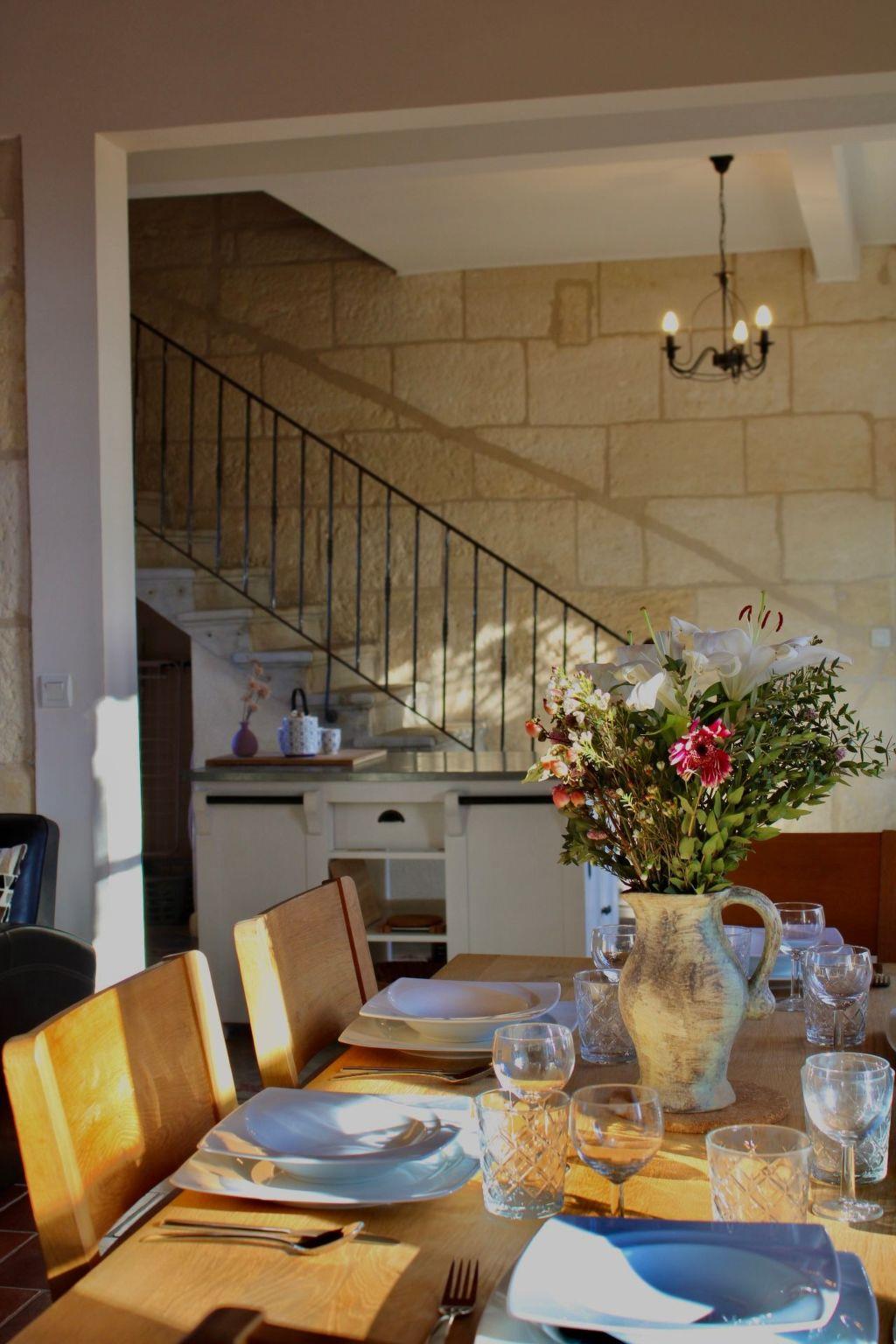 Holiday flat Provence Through your private entrance you enter 105 square metres of living space, where you will immediately feel at home. The ground floor consists of a large sitting and dining area, next to which is the fully equipped kitchen (oven, hob, microwave, fridge, dishwasher and washing machine). Two spacious bedrooms welcome you on the upper floor. A double bed (160 cm wide) in one room and two single beds (90 x 190 cm) in the other. The bathroom is located in the hallway and offers the best view of the Alpilles and you can enjoy your own private terrace and experience unforgettable moments in the southern sun or under a clear starry sky.