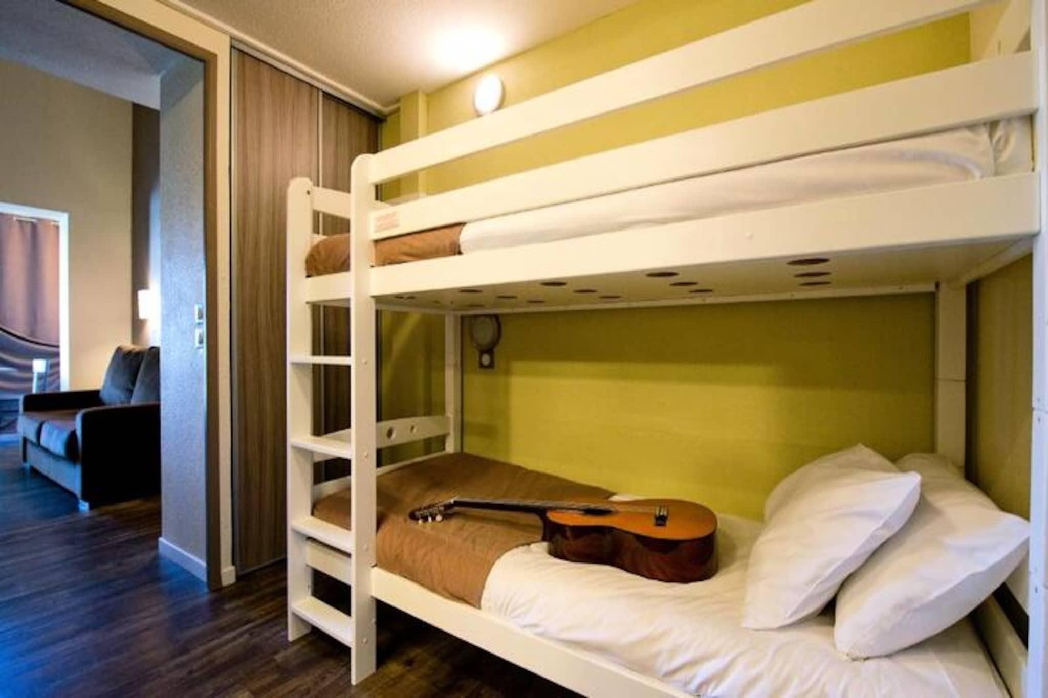 Ubicado en el corazón de una finca de 35 hectáreas, SOWELL Family Les Amandiers****, situado a sólo 4 km de Arles, es el lugar imprescindible para su estancia en la Camarga. Es en un entorno excepcional donde podrá disfrutar en familia o con amigos de las numerosas instalaciones y actividades que se ofrecen: piscinas, piscina infantil, tenis, petanca, sauna, hammam y muchas otras actividades de ocio serán posibles allí para darle vida a sus vacaciones. ;También se ofrecen cursos de tenis con un coste adicional. ¡Un verdadero pueblo de vacaciones donde toda la familia puede encontrar la felicidad! ¿Por qué elegir la Camarga como destino de vacaciones? Por sus paisajes únicos, su clima mediterráneo y temperaturas suaves, sus amplios espacios abiertos, su cultura cargada de historia, su tradición ancestral, sin olvidar su fauna y flora excepcionalmente protegidas, su patrimonio y monumentos históricos, sus tesoros arquitectónicos. Tantos puntos fuertes que le harán caer rápidamente bajo el hechizo de esta extraordinaria región. Solo, en familia o con amigos, ¡La Camargue le garantizará un cambio de aires extraordinario! Habitación 4/6 Personas. Cama de matrimonio, 2 camas individuales y 2 literas. Cuarto de baño o ducha y WC. Acceso Wifi - gratuito en los apartamentos. Se admiten mascotas - gratis - sólo un animal por alojamiento - prohibidos perros de categoría 1 y 2 Depósito (adicional) - 300 Kit para bebé - 19EURO / semana - gratis para estancias de 1 a 6 noches (cama + baño + silla) Ropa de cama - incluida Toallas - proporcionadas Cuna - gratuita - bajo petición al hacer la reserva - sujeta a disponibilidad Limpieza final de estancia - 55EURO a 75EURO dependiendo del tipo de apartamento: 10€ / noche para estancias de 1 a 6 noches Piscina - piscina exterior del hotel y piscina exterior de las residencias (mediados de junio - mediados de septiembre) - acceso gratuito Sauna - extra - precios y pago en el sitio Tasa turística (cargo adicional): a pagar en el sitio según la tarifa vigente Televisión - incluida