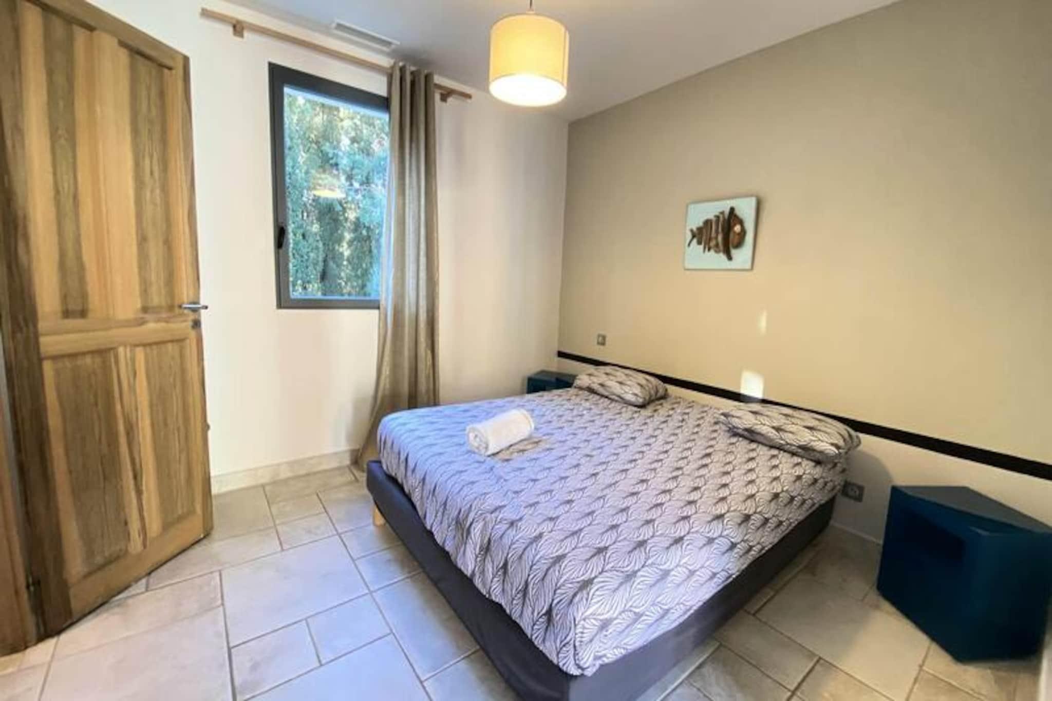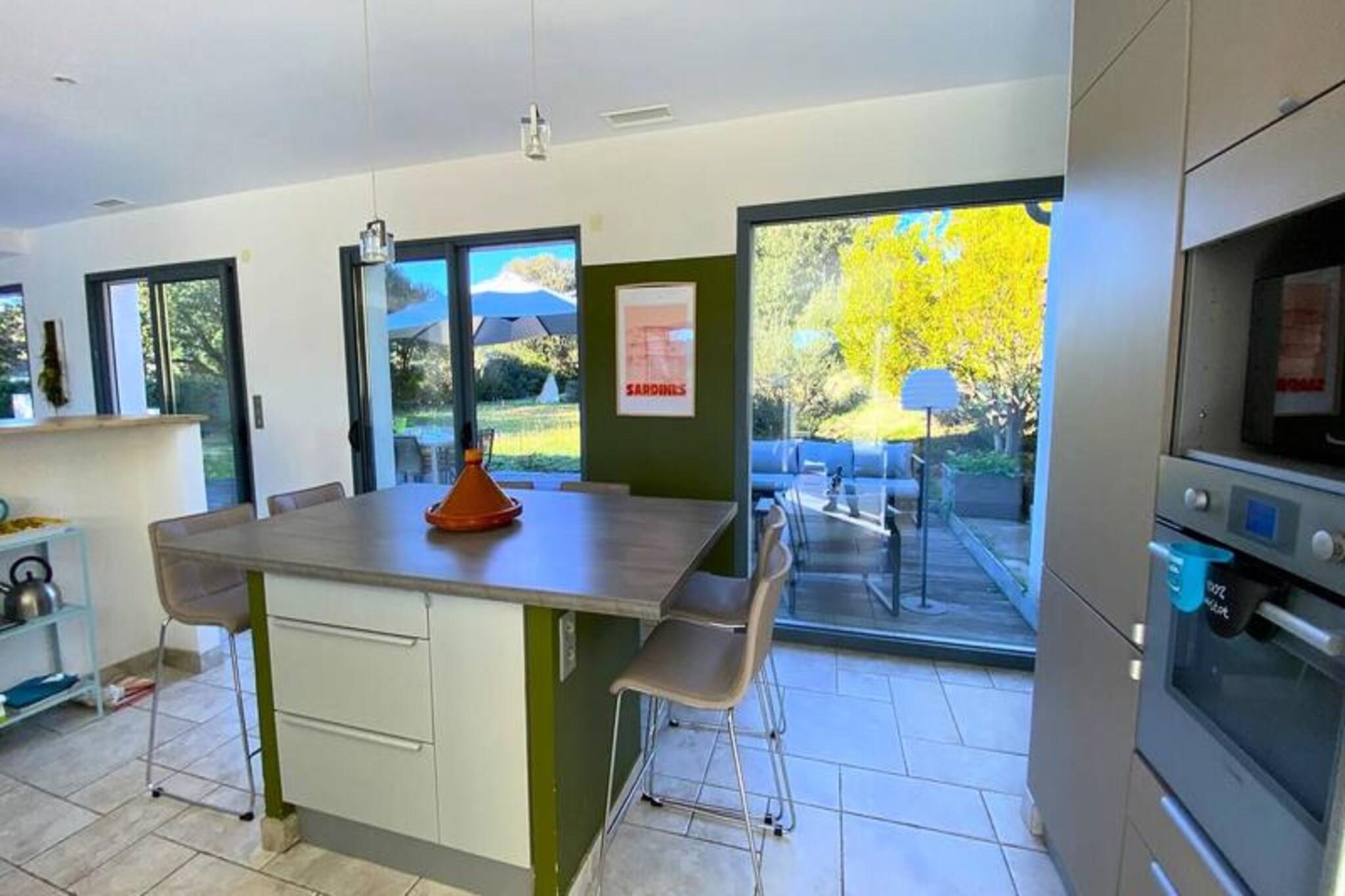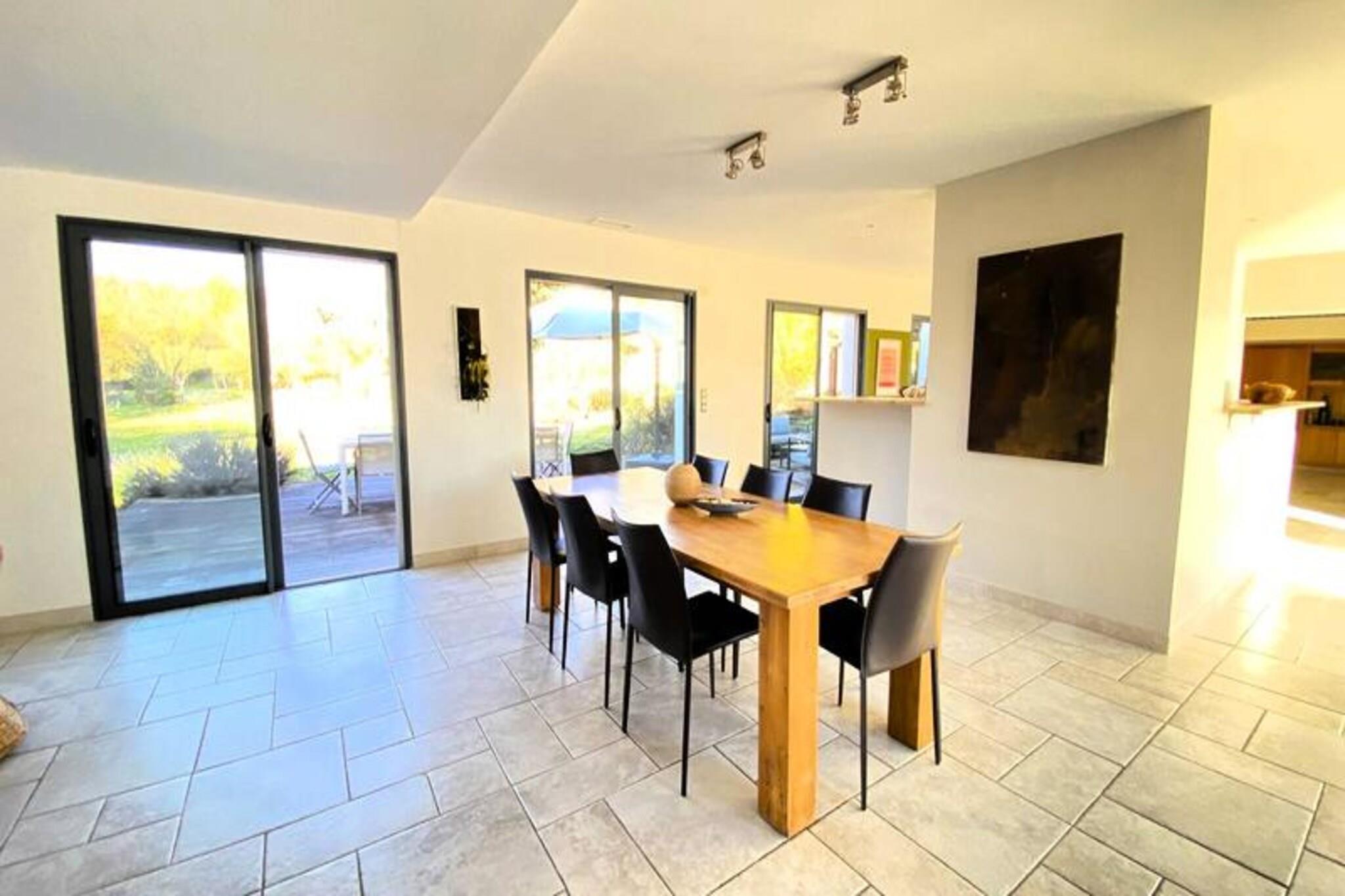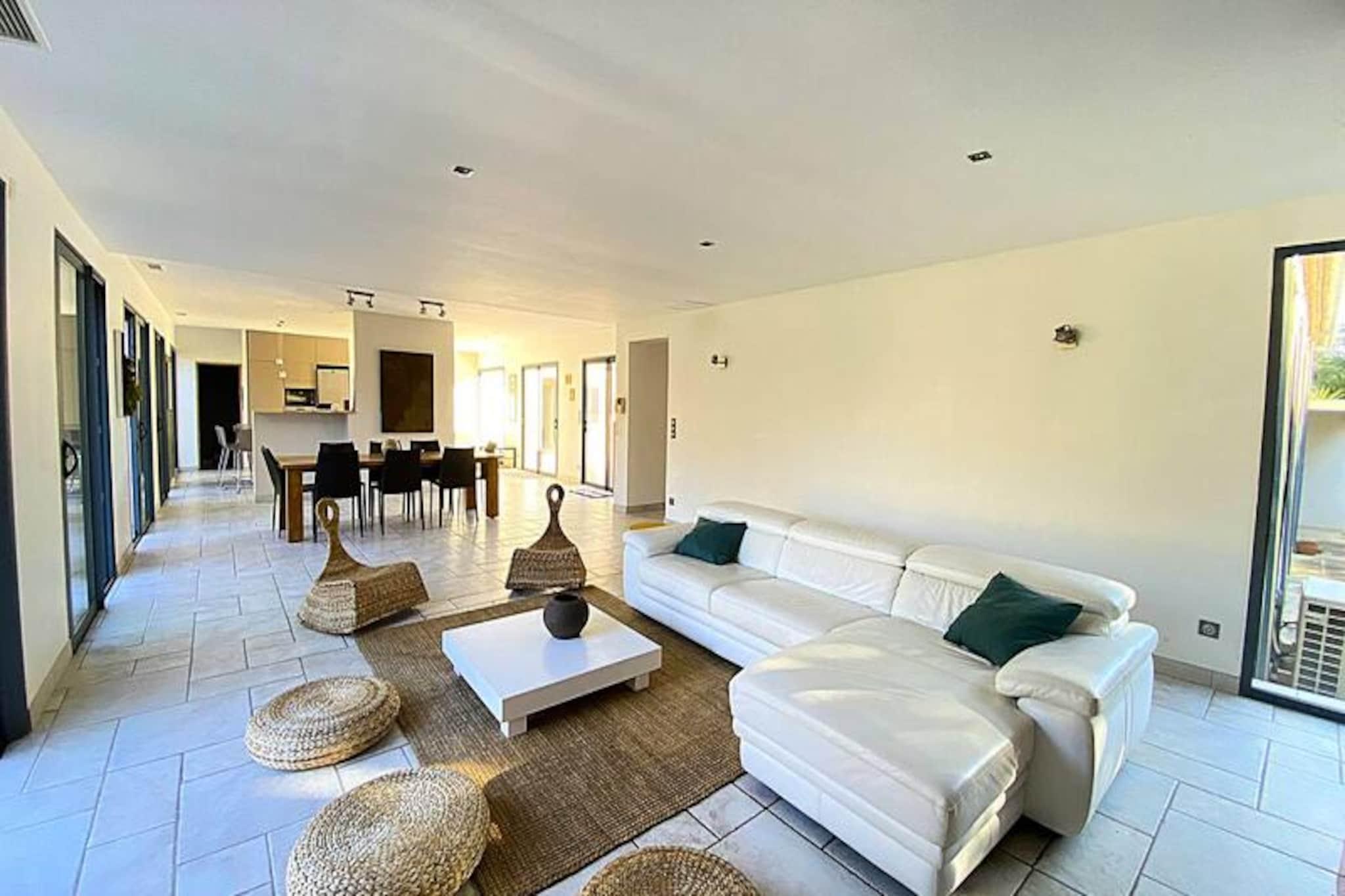 I den maleriske landsby Armissan, beliggende i La Clapes betagende naturlandskab, tilbyder denne arkitekttegnede villa et roligt tilflugtssted for dem, der søger fred og moderne komfort. Omgivet af vinmarker og kun 15 minutters kørsel fra Middelhavets gyldne strande, er denne ejendom perfekt beliggende til en afslappende ferie. Den charmerende by Narbonne ligger kun 10 minutter væk og byder på en blanding af kulturel udforskning og bekvemmelighed, mens landsbyens centrum med dens lokale butikker er inden for rækkevidde. \n\nVillaen strækker sig over imponerende 250 m² på en vidtstrakt 1 hektar stor grund og har plads til op til 12 gæster, hvilket gør den ideel til familiesammenkomster eller en rolig ferie med venner. Interiøret kan prale af en rummelig 90 m² stue fyldt med naturligt lys, der åbner ud til to terrasser - en mod nord og en mod syd - perfekt til at nyde udsigten når som helst på dagen. Det fuldt udstyrede køkken inviterer dig til at tilberede og dele måltider i en varm og hyggelig atmosfære. Sovearrangementerne inkluderer en luksuriøs master suite, to dobbeltværelser, et værelse med to enkeltsenge og et familieværelse med en dobbeltseng og to enkeltsenge, hvilket sikrer komfort og privatliv for alle. \n\nTræd udenfor for at opdage din private oase: en 5x10 m swimmingpool til forfriskende dukkerter, en elektrisk grill til udendørs spisning og rigeligt med havemøbler og liggestole til afslapning i solen. Villaen er udstyret med moderne bekvemmeligheder såsom Wi-Fi og aircondition i stuen og to soveværelser, hvilket sikrer et behageligt ophold selv på de varmeste dage. \n\nBeliggende i et roligt og uberørt miljø er denne villa en sand oase af ro. Uanset om du udforsker de nærliggende strande, nyder lokale vine eller blot slapper af ved poolen, lover denne ejendom en uforglemmelig ferieoplevelse i hjertet af det franske landskab.