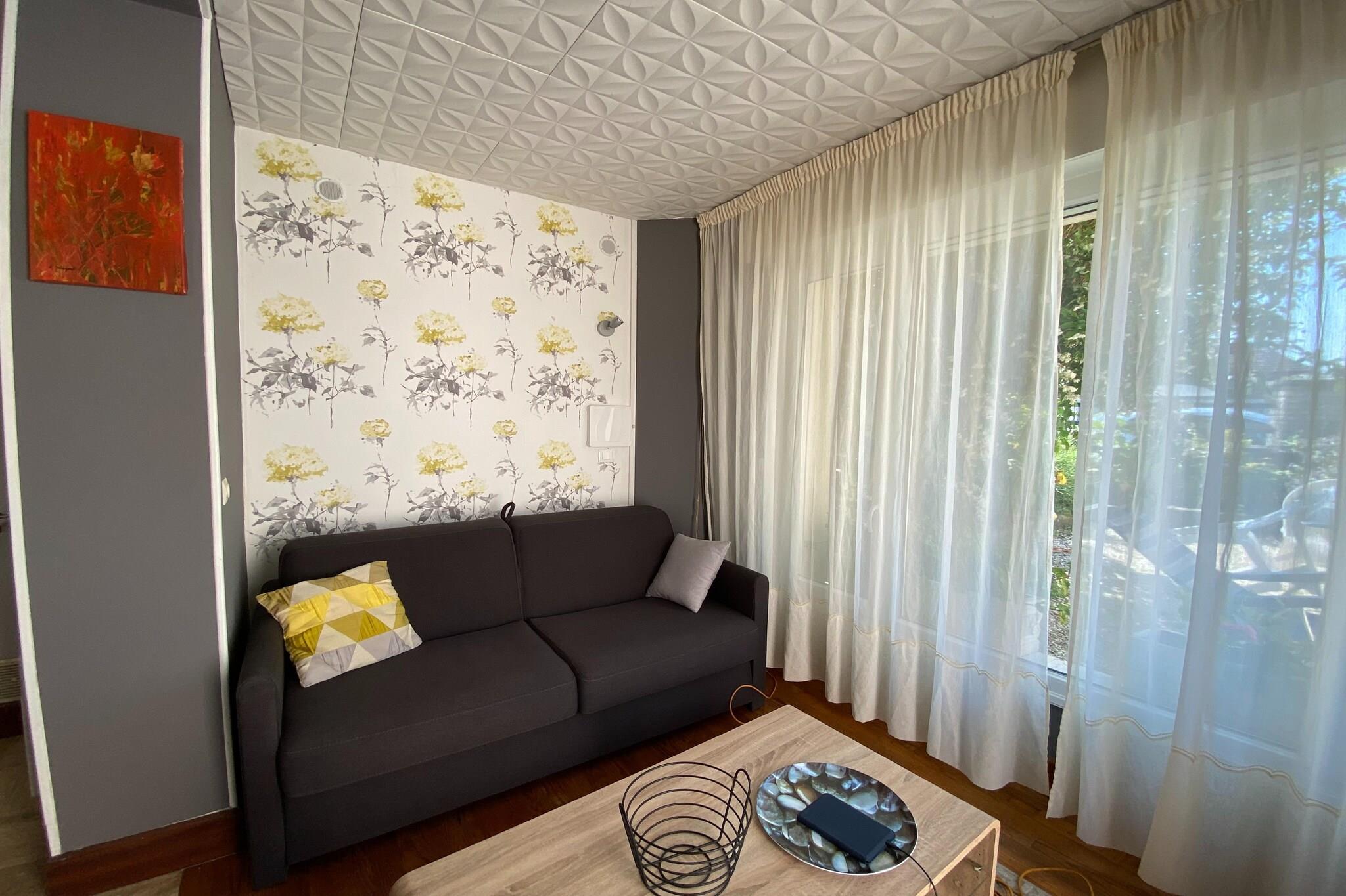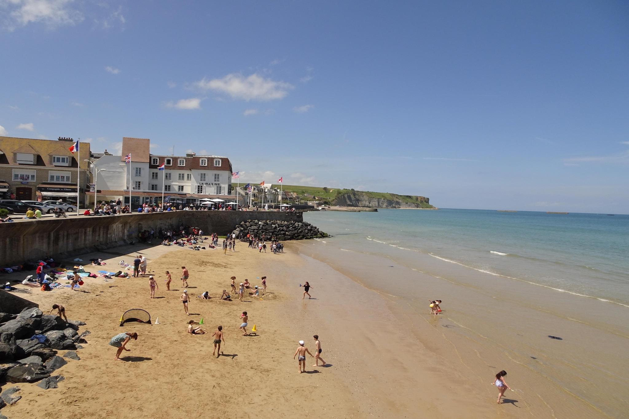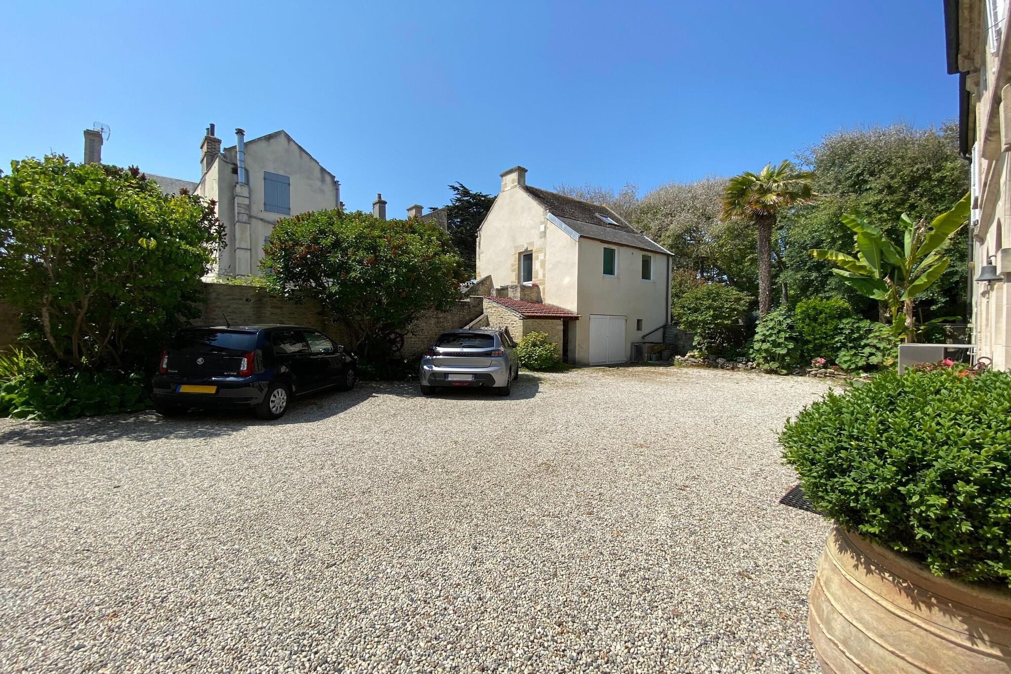Kun få skridt til sandstranden. Pænt indrettet ferielejlighed i sidefløjen af en stilfuld herregård med direkte udgang til strandpromenaden.Den lukkede ejendom, som også tilbyder privat parkering, har sydvendt grusterrasse. Du kan nemt nå bymidten til fods på kortest mulig tid og du skal heller ikke gå lange ture om aftenen. Bare tag en hyggelig spadseretur langs strandpromenaden og stop ved en af specialrestauranterne.Arromanches, med sin omfattende sandstrand, malerisk indrammet af høje klippeklipper, er særligt landskabsmæssigt imponerende. Historisk har dens geografiske placering på Utah Beach og Sword-landingsstrandene gjort den verdensberømt.Nærliggende: Bayeux, berømt for sin katedral, porcelæns- og blondemuseer og meget velbevarede gobeliner. Langs den lille flod l"Aure kan du opdage byen i fodsporene af de håndværkere, der fik Bayeux til at blomstre i middelalderen. Du bør heller ikke gå glip af et besøg på den berømte klosterbakke, Mont St. Michel.