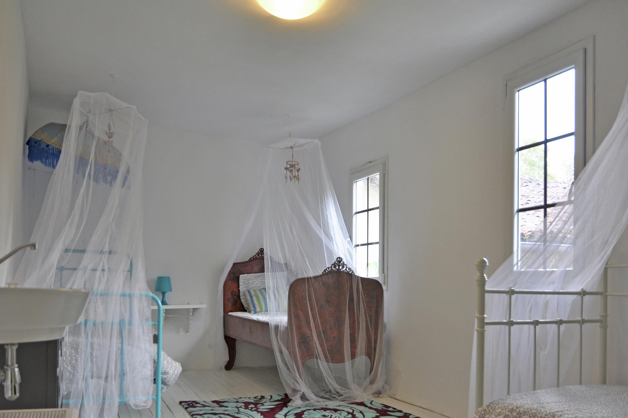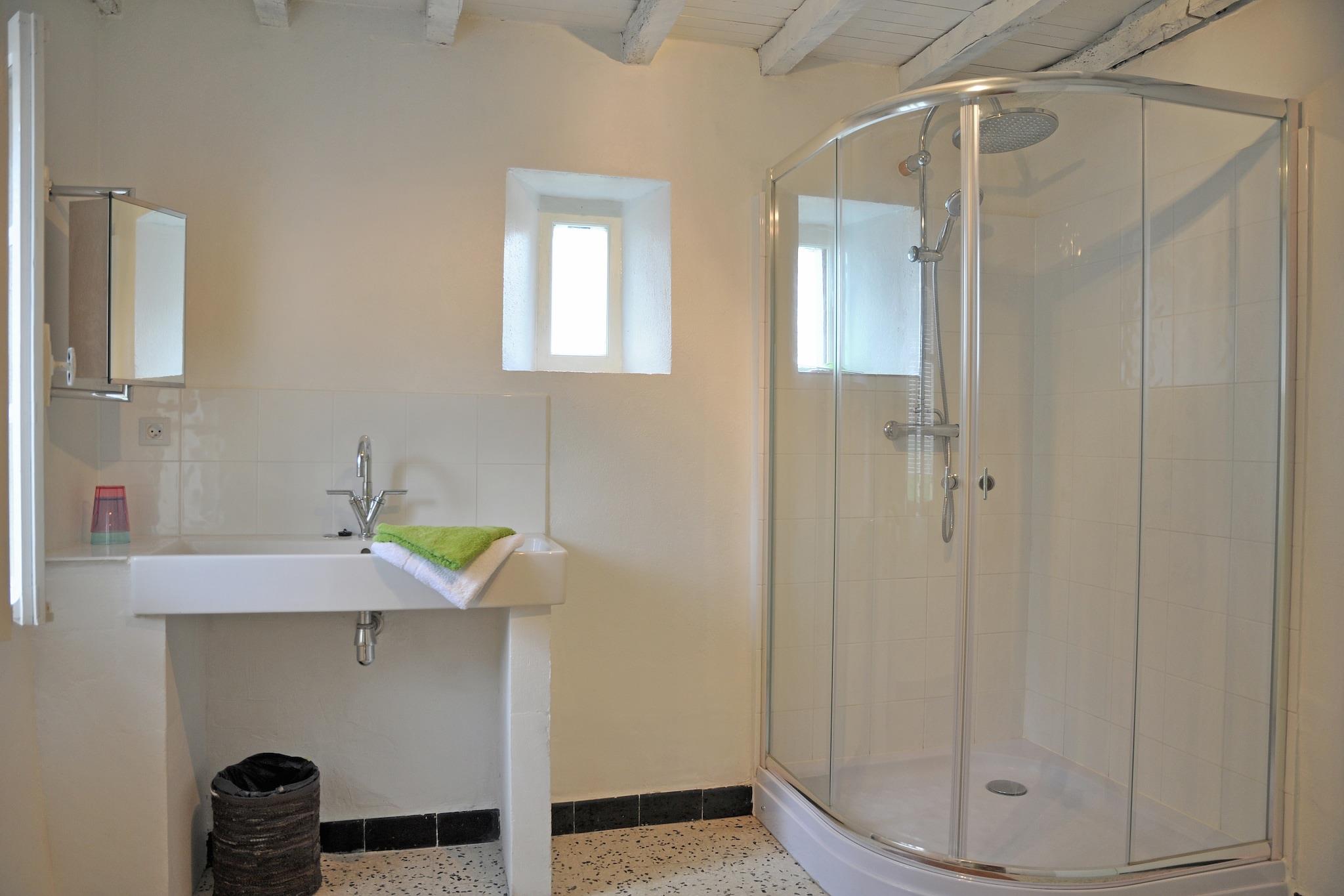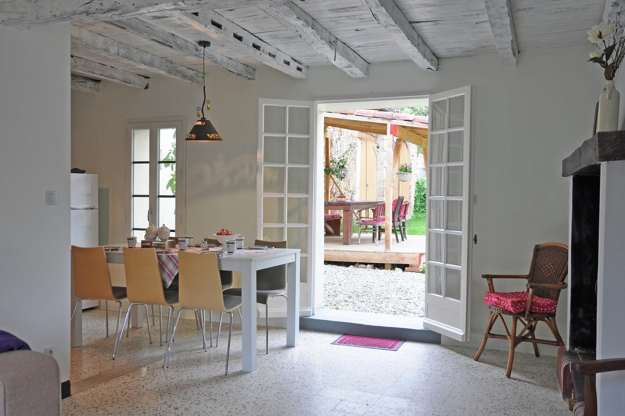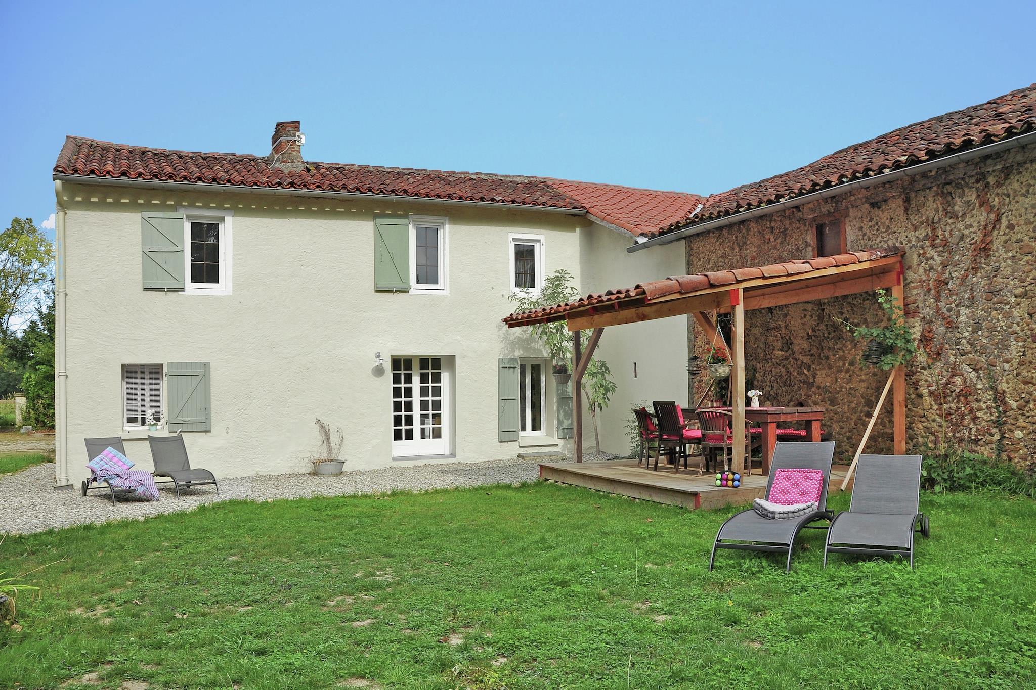 Dette fritliggende sommerhus er smagfuldt renoveret og ligger i en stor park, hvor ejerne også har deres hus. Ejerne lejer på den anden side af den lille skov nogle safari telt. For dig og de andre breve er der en pool. Området er et spektrum af fristelser i form af gamle murede byer, de resterende katedral slotte, store floder, hvor du kan gå på kano. Termiske landsbyer, pister hvor du kan nyde om sommeren også en god tid. Og selvfølgelig smager de regionale produkter på et ugentligt marked. Cyklister og vandrere kan også drage fordel af denne store region, den er så smuk. Foran huset er en stor græsplæne, hvor børn kan lege, og en overdækket træterrasse med spisebord. Her kan du nyde dine måltider fuldt ud i skyggerne. Der er liggestole i haven, hvor du kan nyde solen. Du går ind i stuen med åbent køkken. Et opholdsområde med tv og spisestue ved siden af køkkenet. Frisk, flot og behageligt. Ovenpå finder du tre soveværelser med gode senge og et rummeligt badeværelse. Højt anbefalet.