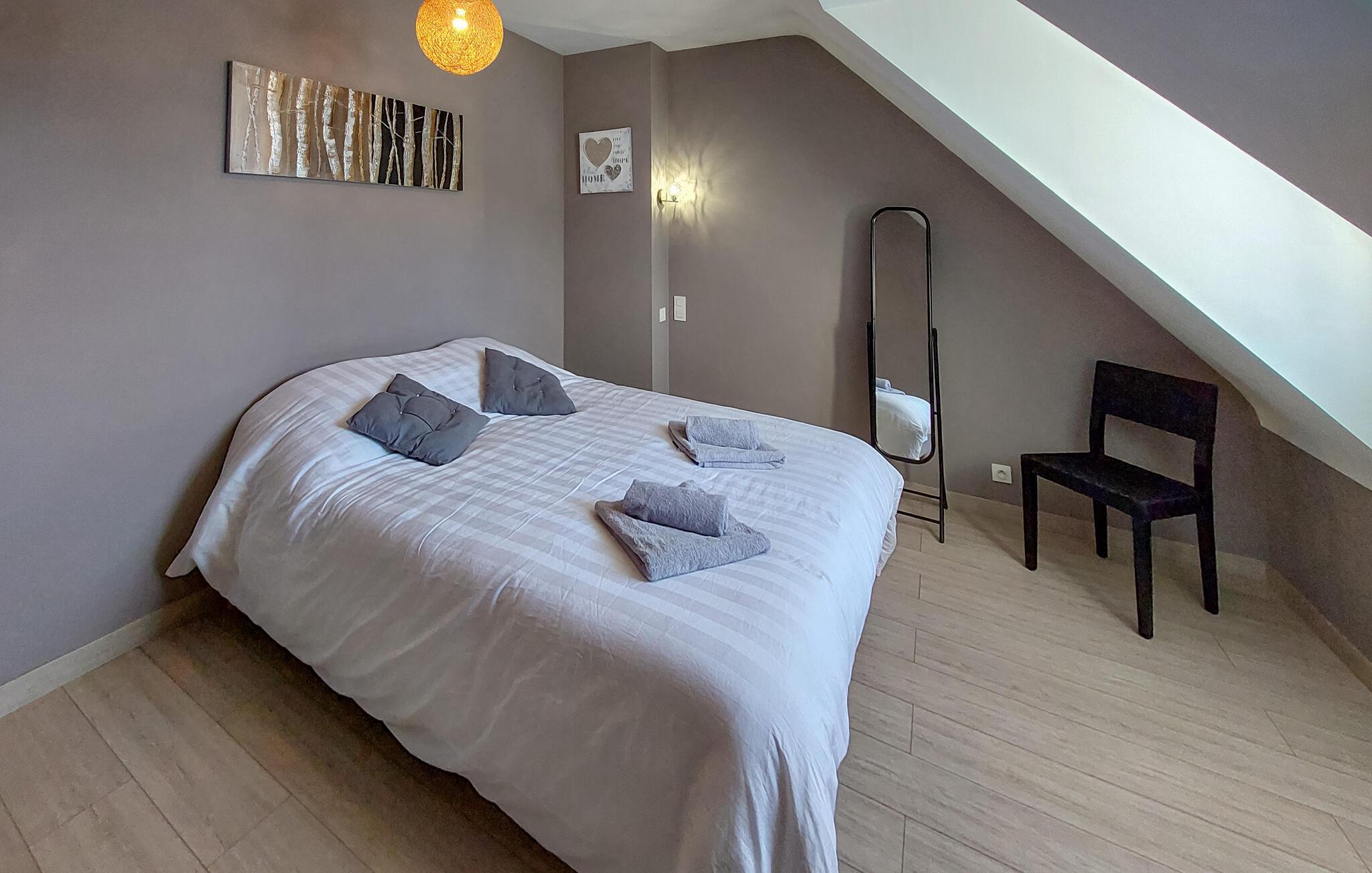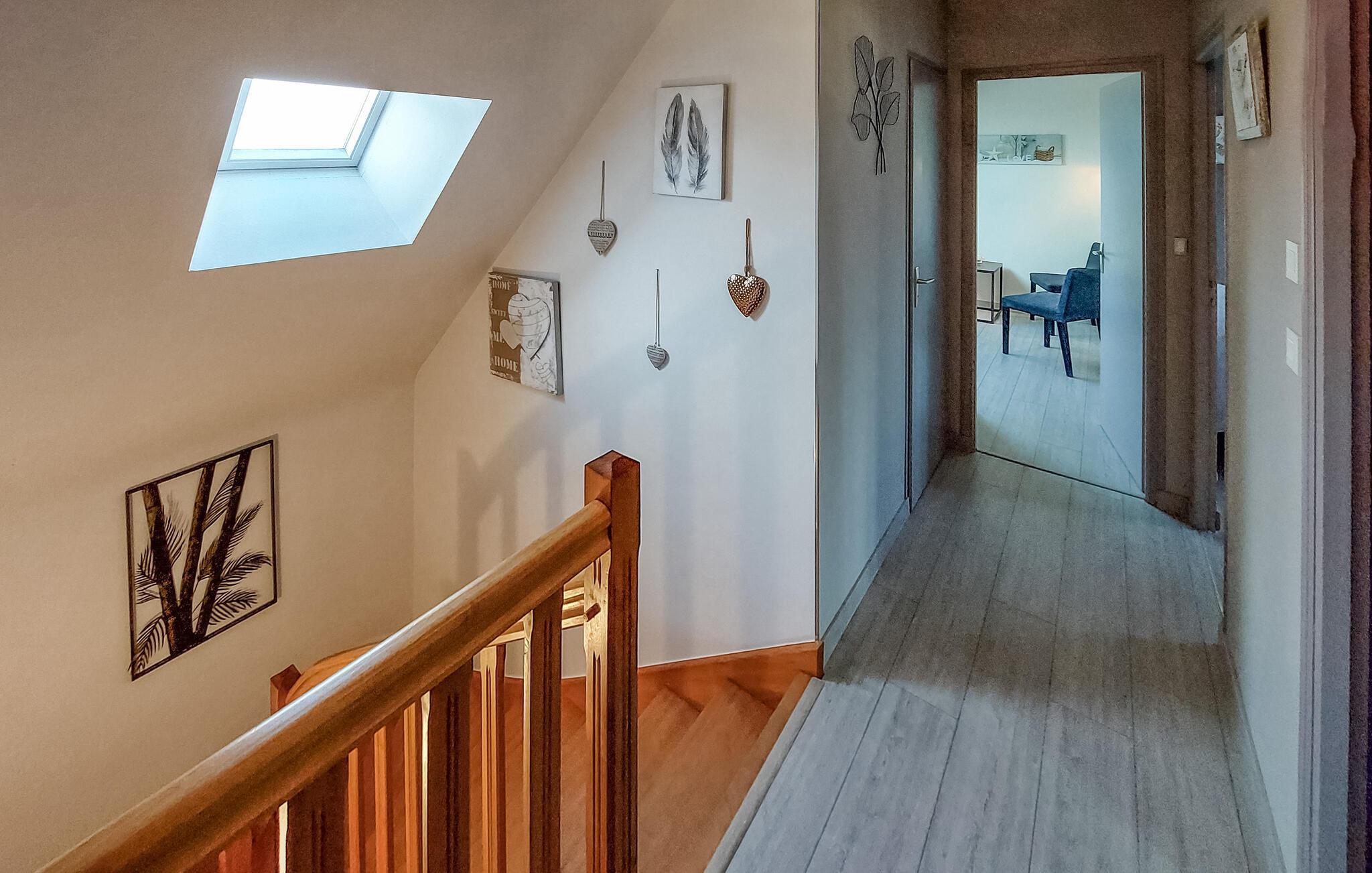 Træd indenfor og føl jer hjemme fra første øjeblik i den behagelige atmosfære i dette charmerende feriehus. Lav kulinariske mesterværker i det moderne, fuldt udstyrede køkken. Tænd op i brændeovnen, og nyd stilfulde måltider i det åbne opholdsområde. Glæd jer til hyggelige aftener på sofaen, en sjov spilleaften eller tid til en god bog, som hverdagen ellers ikke tillader.