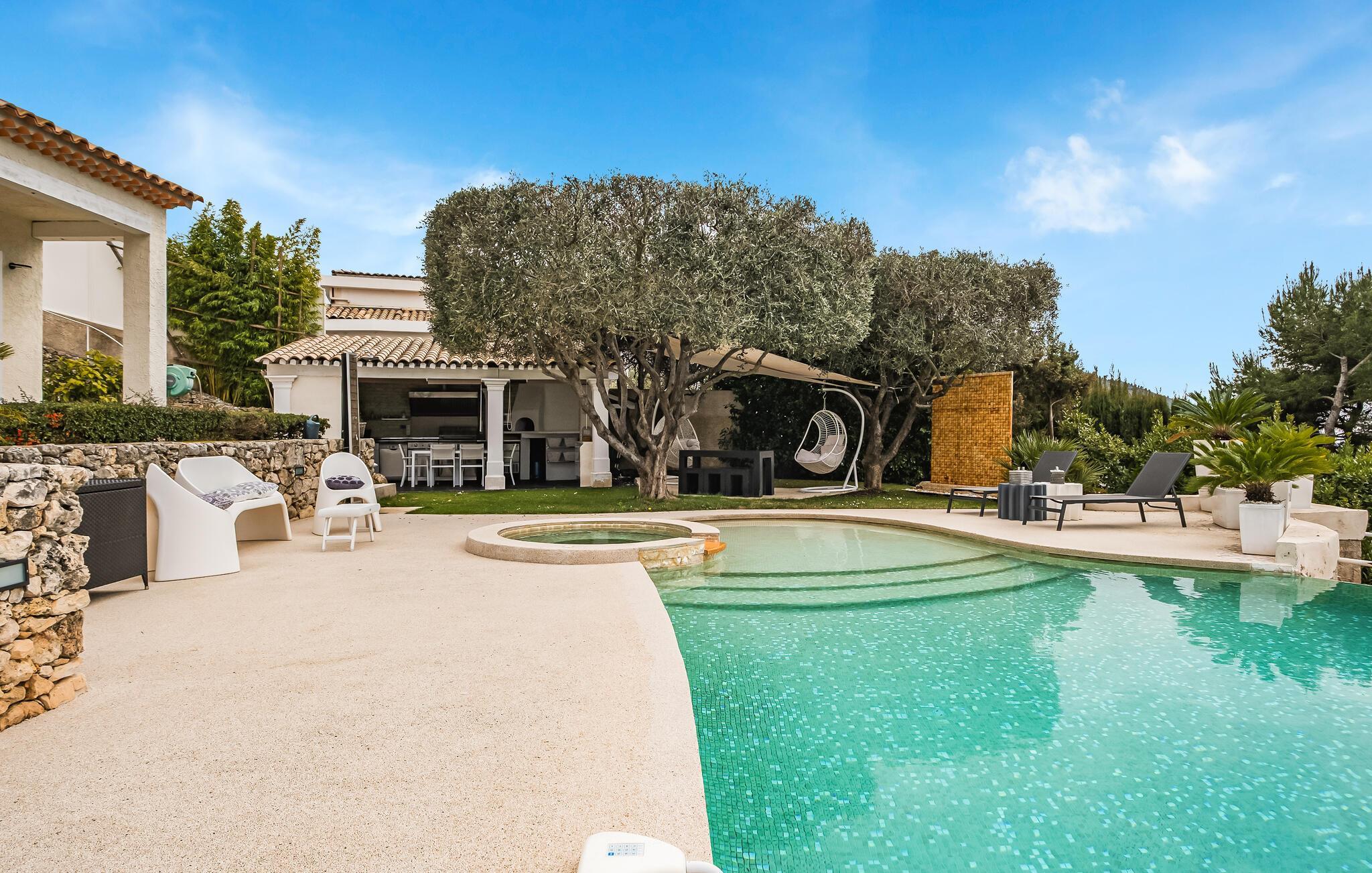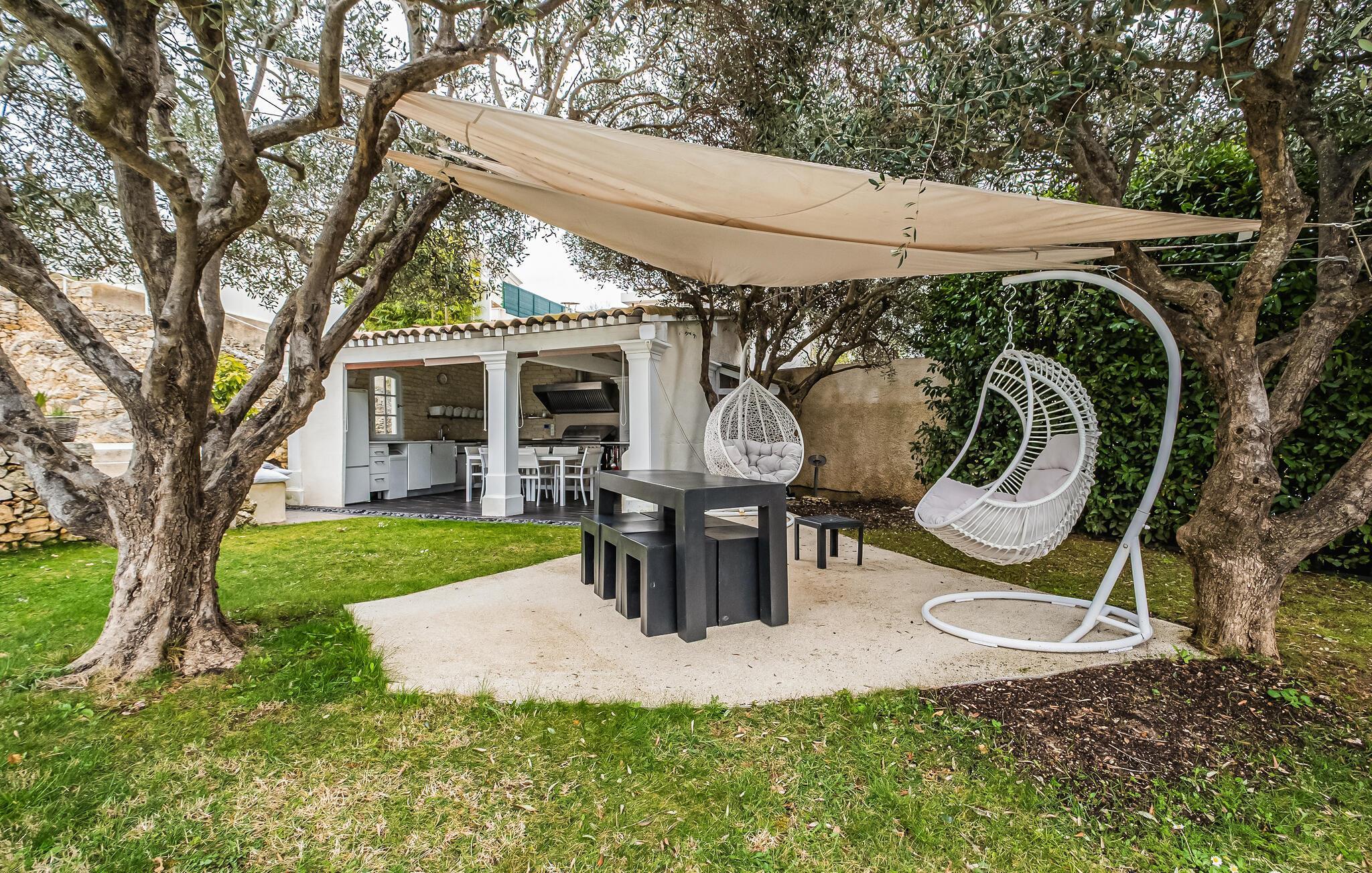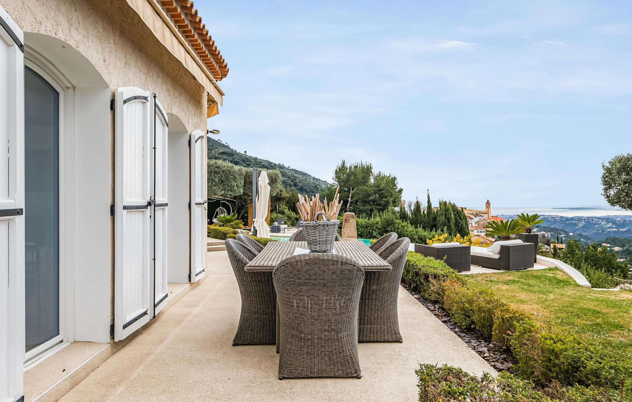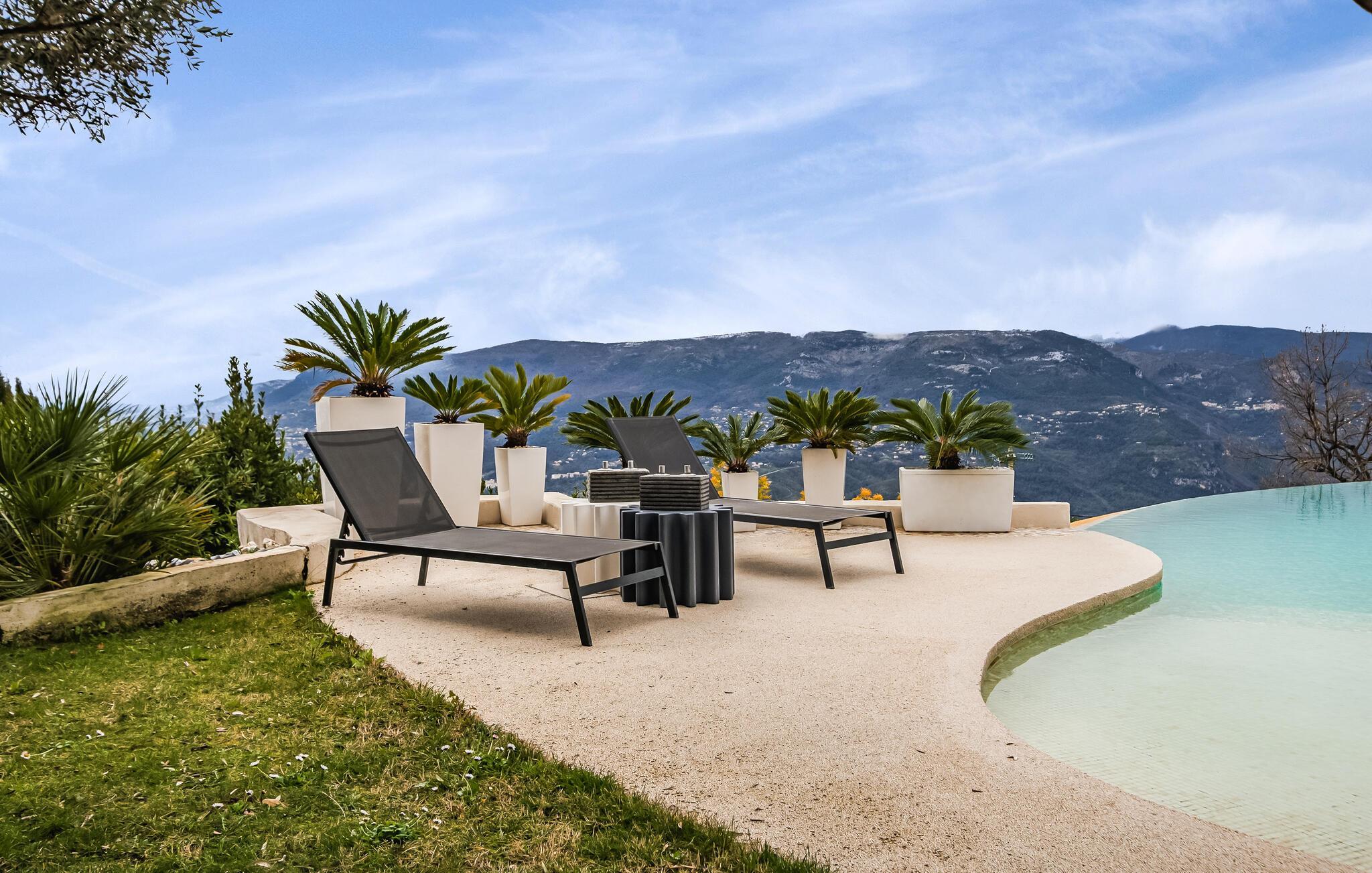Den store grund, dekoreret med middelhavsplanter, tilbyder jer også en forførende panoramaudsigt. Snup en frisk dukkert i infinity-poolen, tag afslappende siestaer i skyggen af ??oliventræerne, tænd grillen og tilbered delikatesser i det overdækkede sommerkøkken.