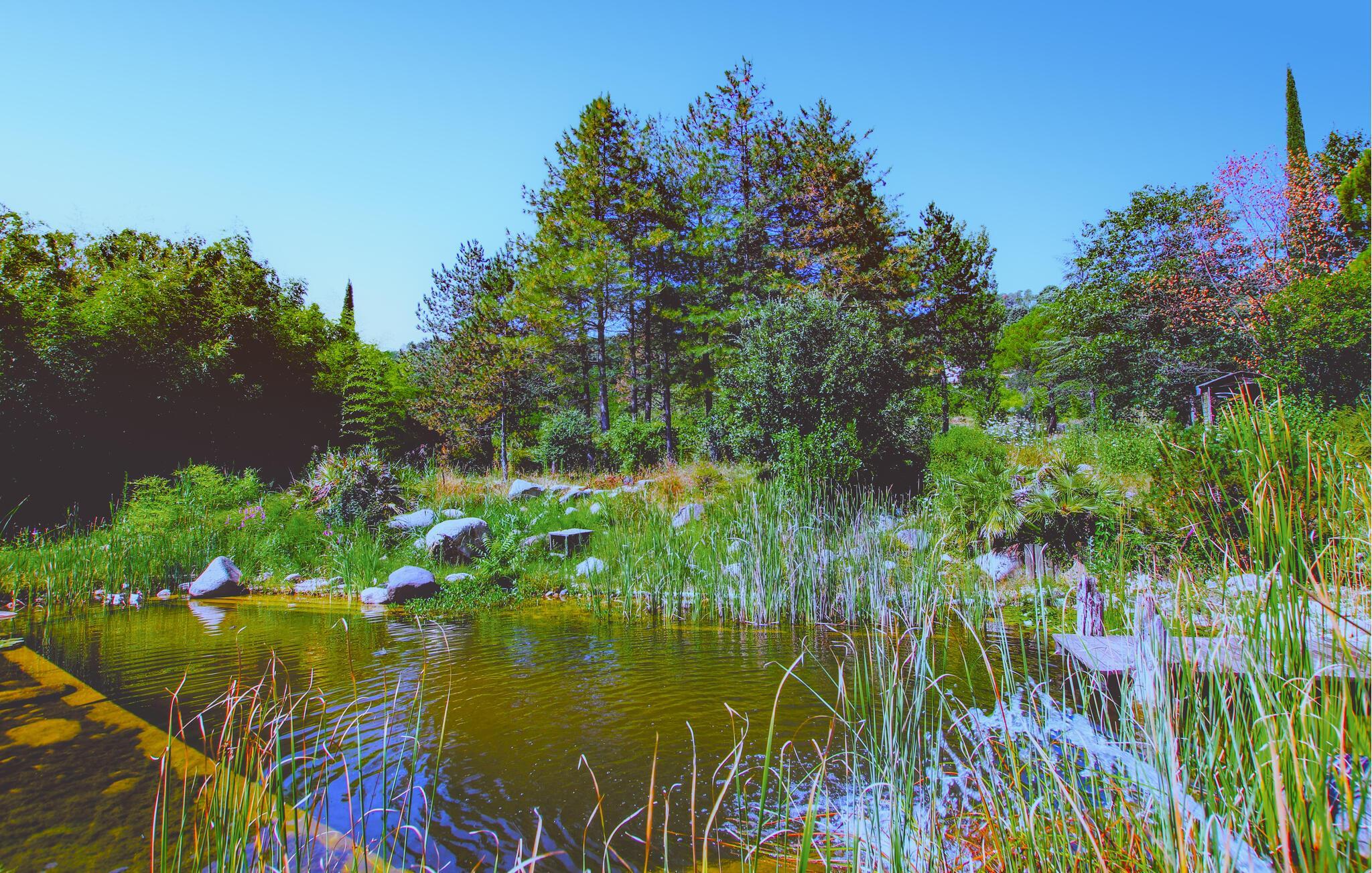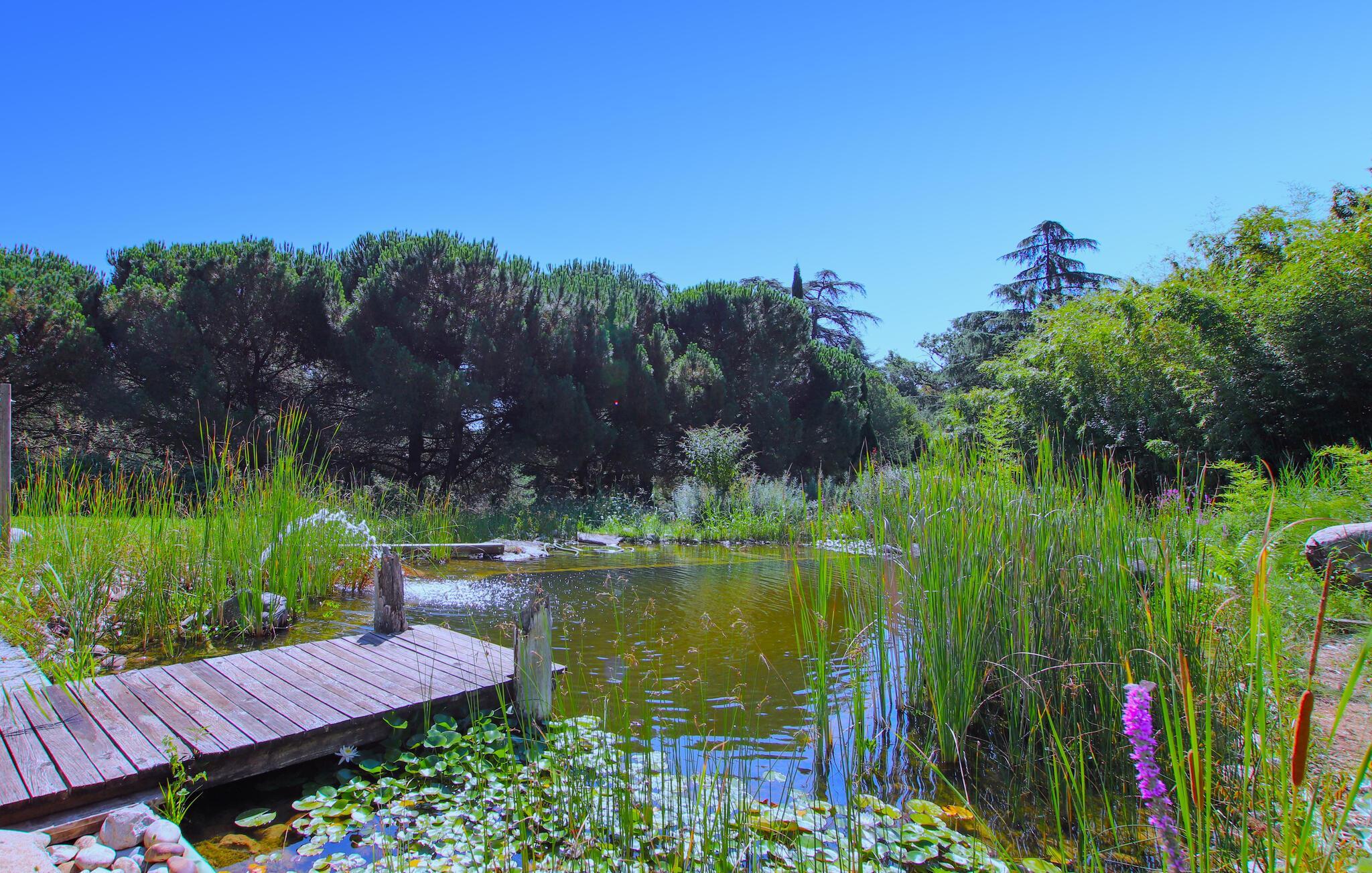 Huset er et fredeligt paradis, der er omgivet af træer, og som byder på en 22 meter lang, naturlig pool med en gangbro af træ. Poolen er et magisk sted, som egner sig til naturlige biologiske badeoplevelser omgivet af vandplanter og guldsmede. På grunden finder I også mange andre spændende faciliteter: En stor solterrasse, en stor romantisk pryddam med fisk, et bordtennisbord og en rigtig petanquebane, så I kan se frem til at kombinere afslapning med hyggelige aktiviteter på ferien. Denne gamle gård er tilmed hjemsted for søde dyr i form af får, ænder og skildpadder.